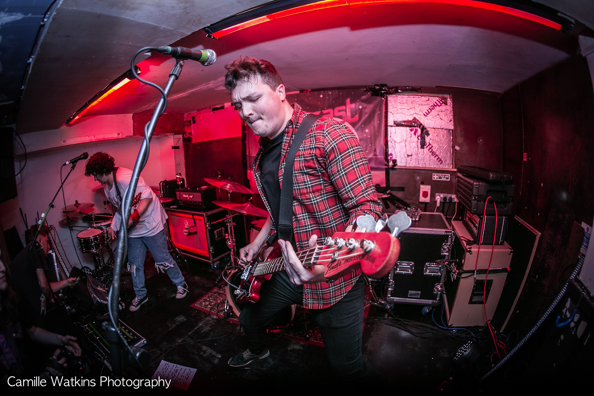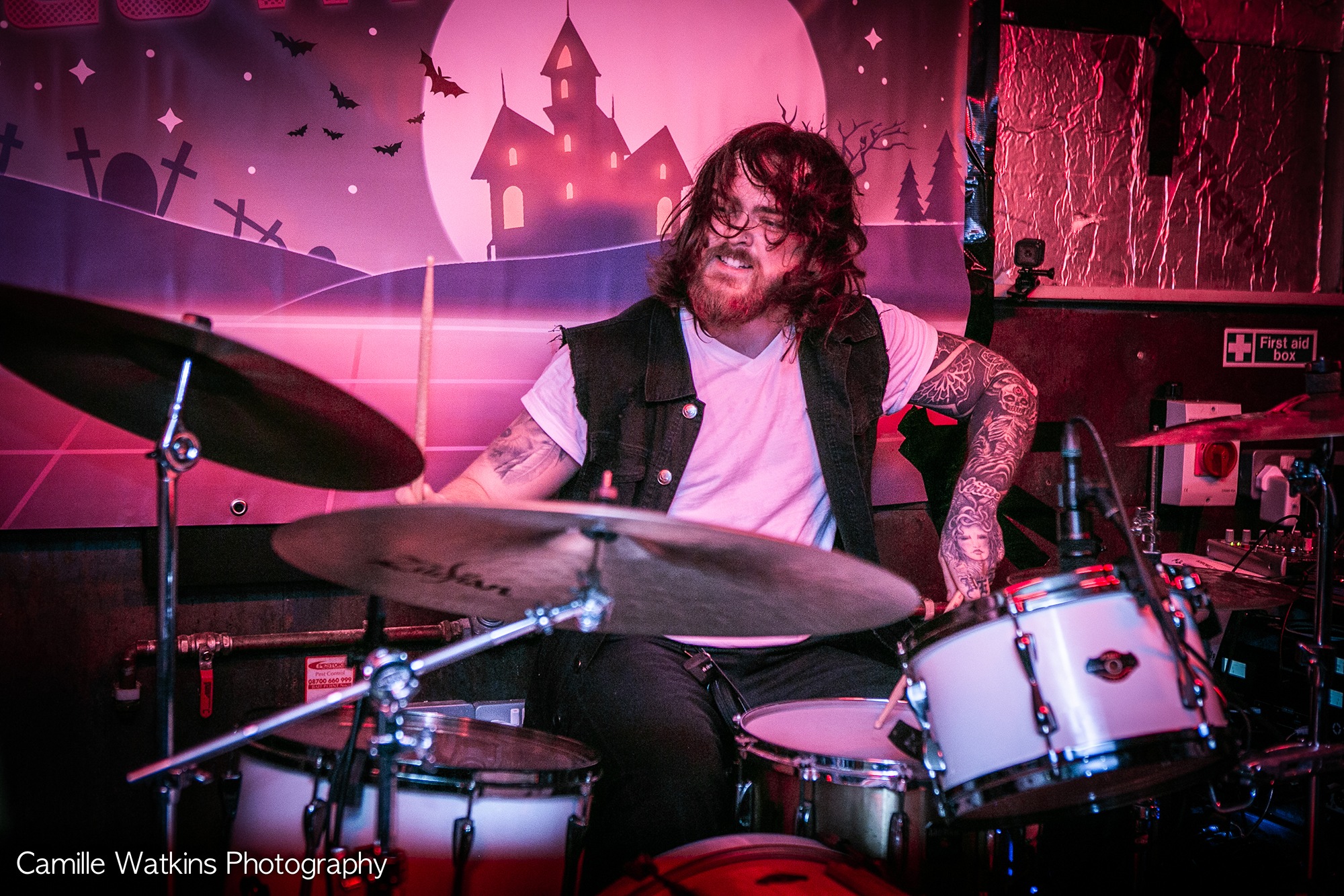Starting things off was support from of HAUNTED BY WOLVES, another Bristol-based trio with their dramatic emo rock performance with inflections of old school KILLSWITCH ENGAGE. Those who occupy the room to watch the first act, rest timidly against walls near the back sipping pints. This doesn’t stop frontman Luke from pulling all the air punches and hair banging. This, however transpires as slightly cringeworthy to an onlooker, and it completely distracts from their very emotive vocals and actually quite good music!