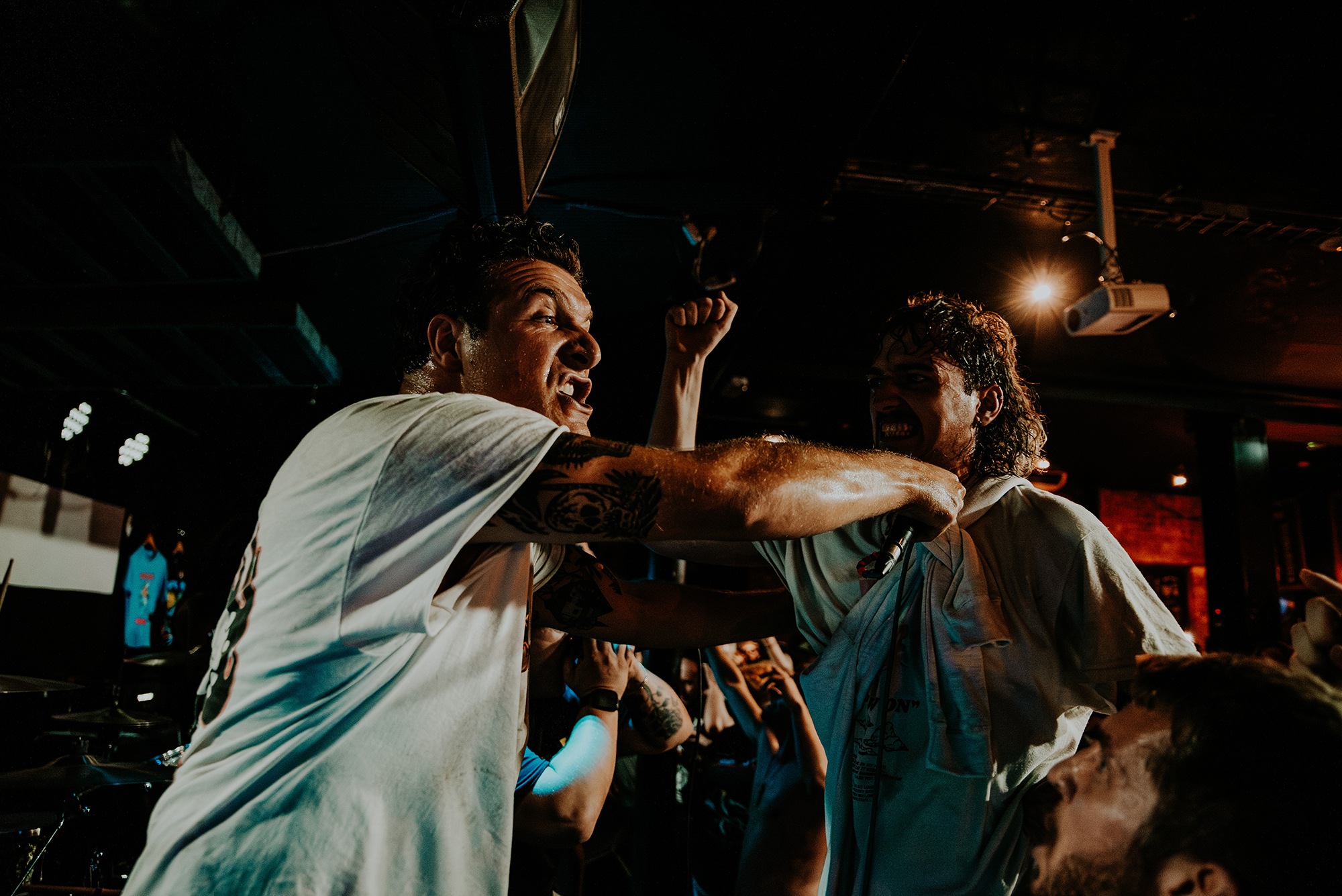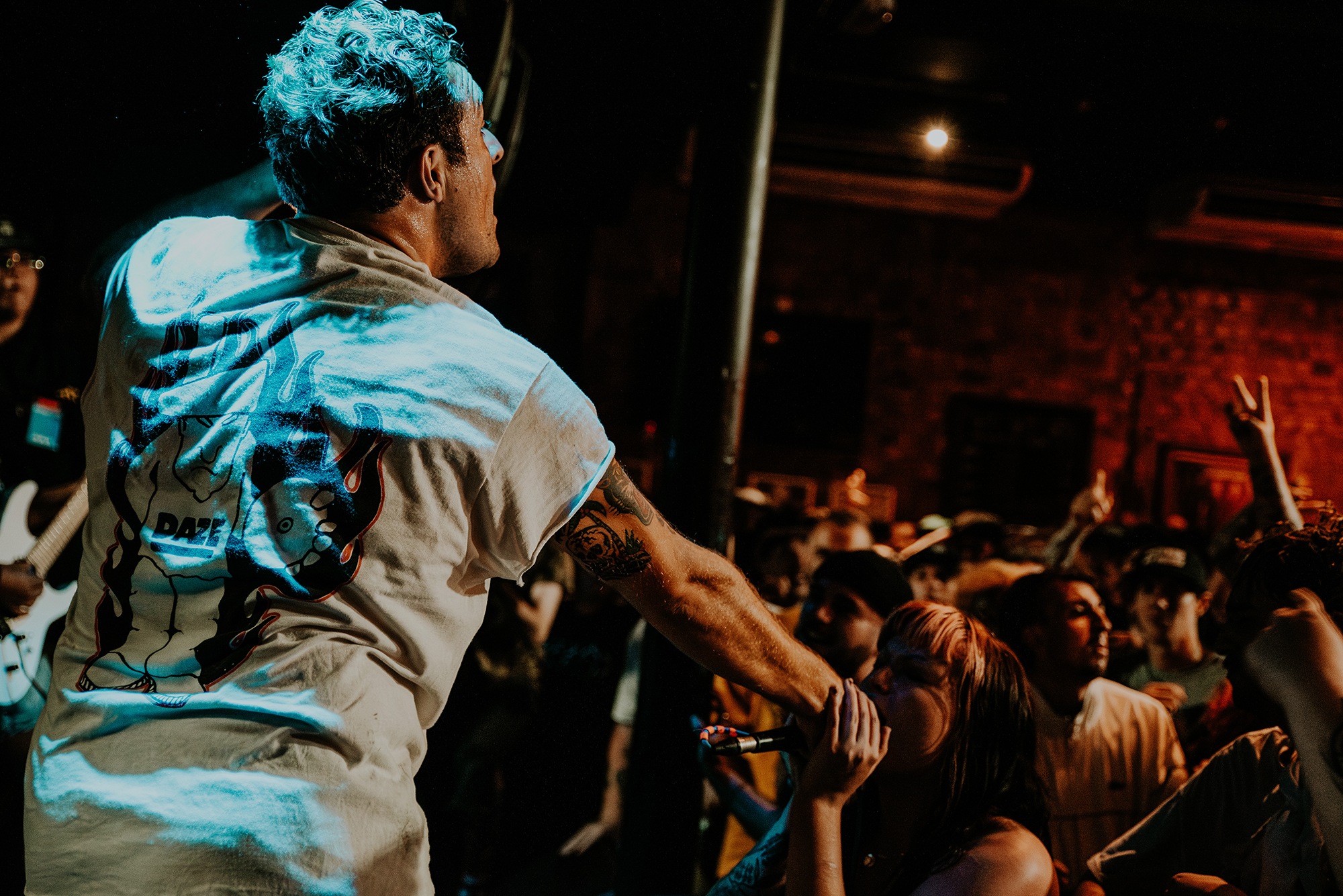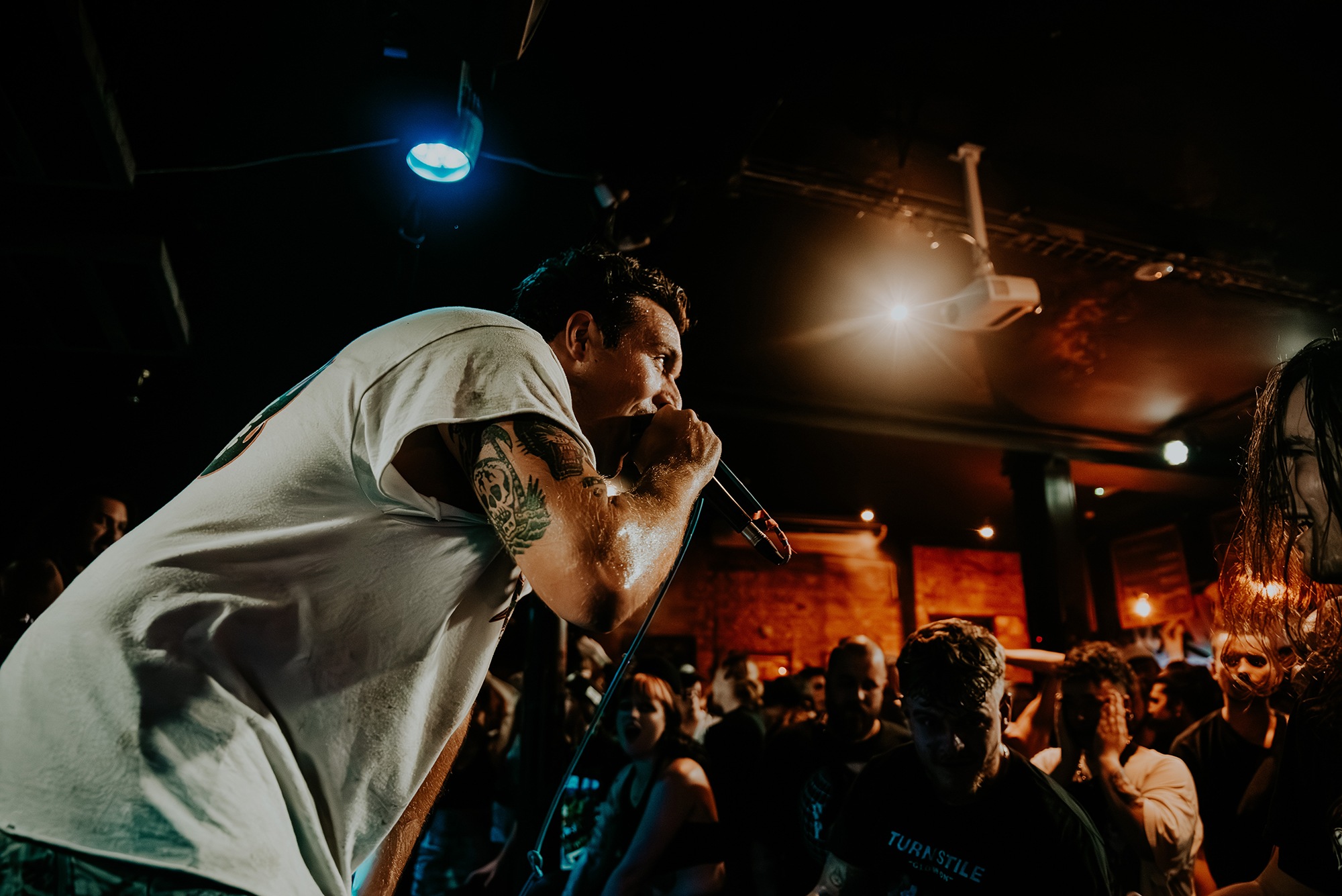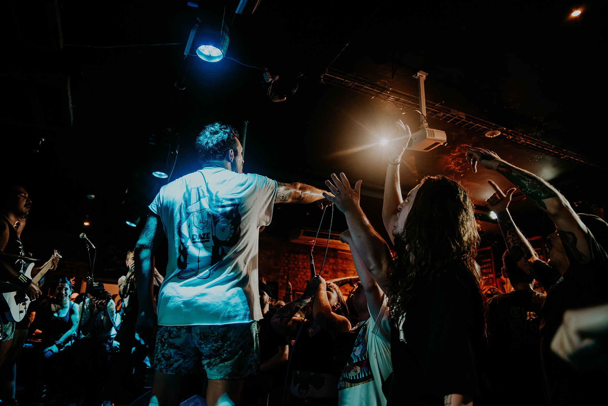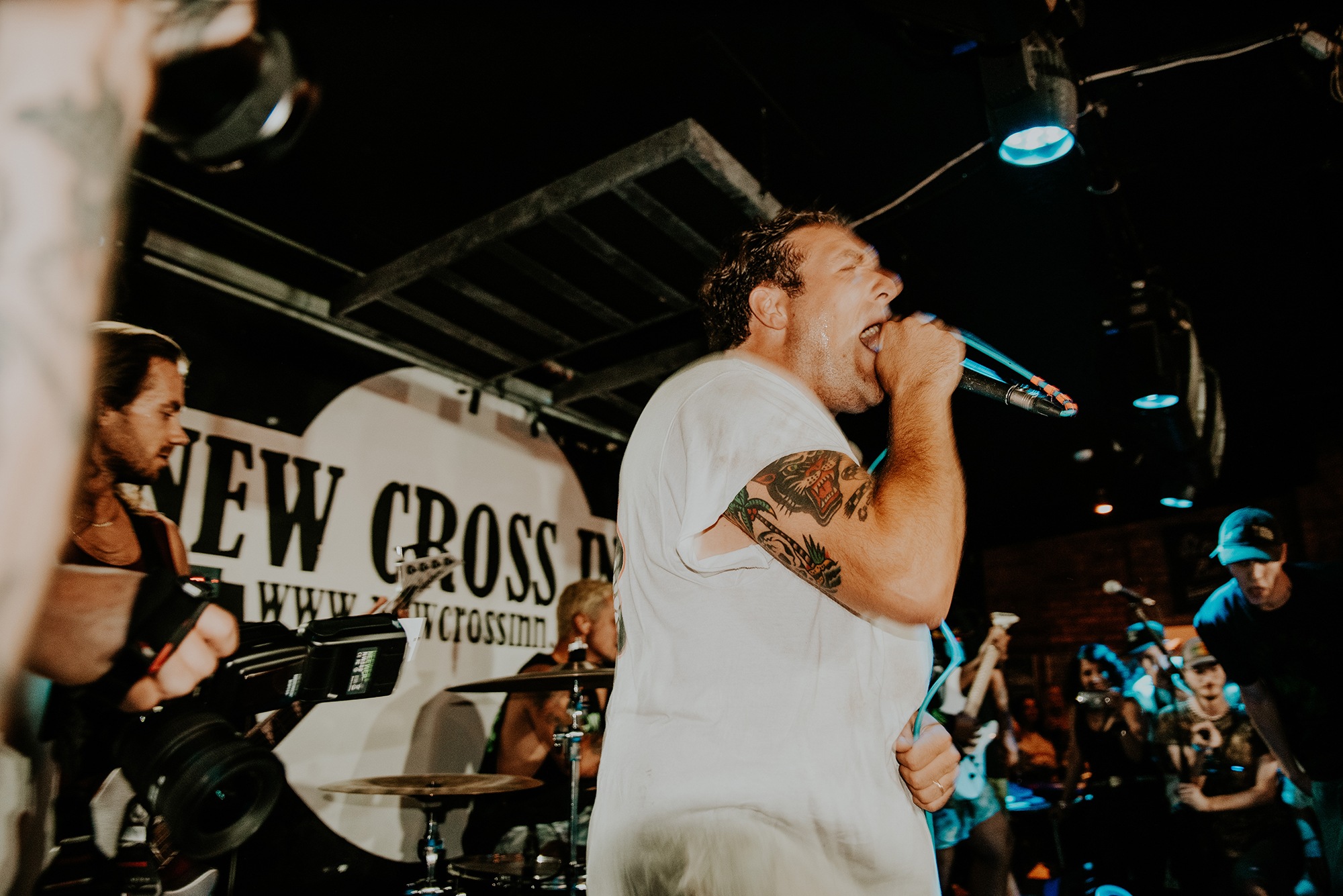 It’s DRAIN‘s first time at the New Cross Inn and vocalist Sammy Ciaramitaro makes it clear that he wants this to be a special one before the band have even launched into Feel The Pressure. The ripping opening track to their 2020 debut full-length California Cursed incites immediate bedlam, with stage divers and mic-grabs galore as a beach ball bounces somewhat neglected around the pit. Watch You Burn goes down similarly, kicking off a run of cuts from the outstanding Living Proof that includes the super bouncy FTS (KYS) and the band’s phenomenal cover of the DESCENDENTS‘ Good Good Things for which it doesn’t seem to matter in the slightest that Ciaramitaro can’t seem to find a working mic.