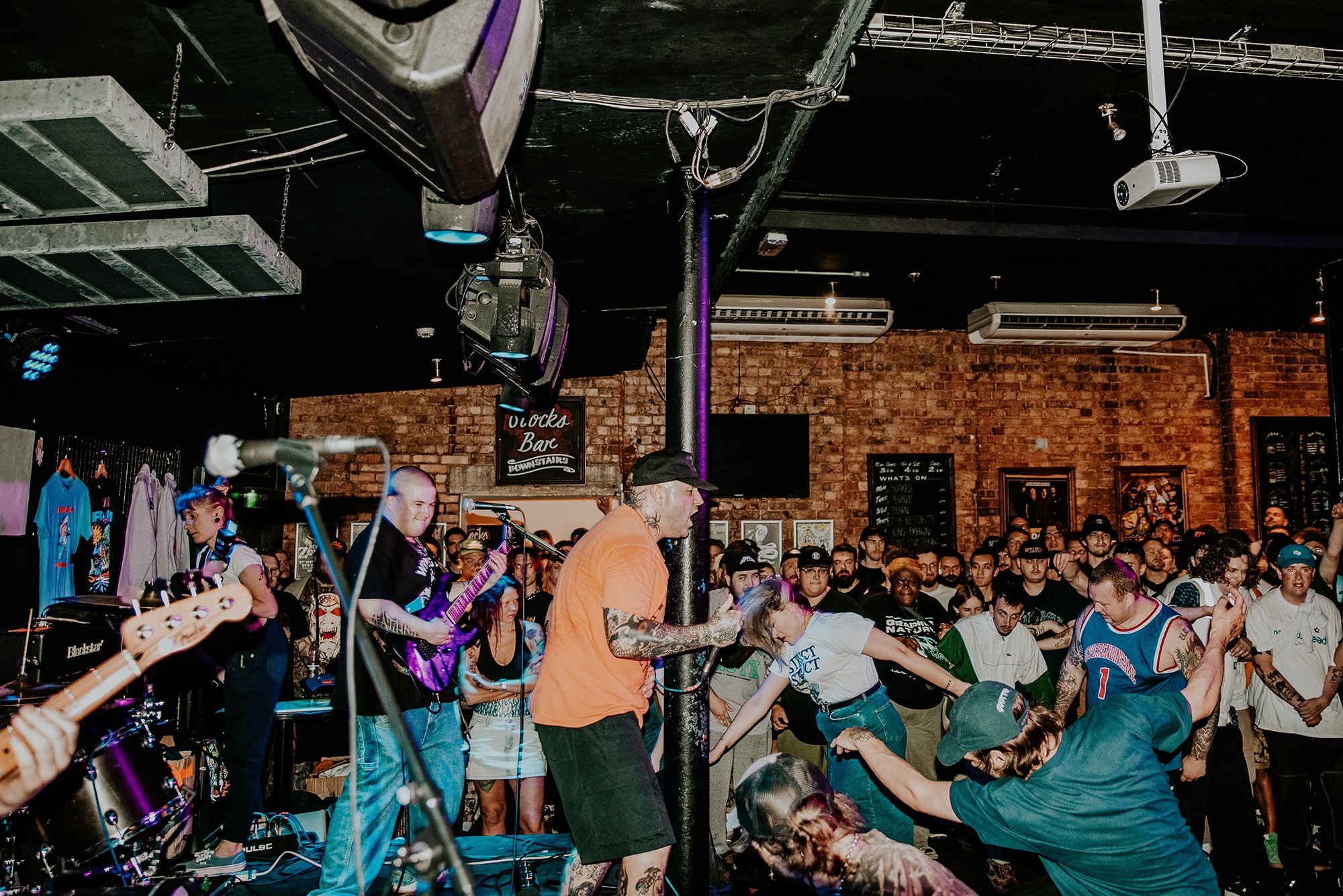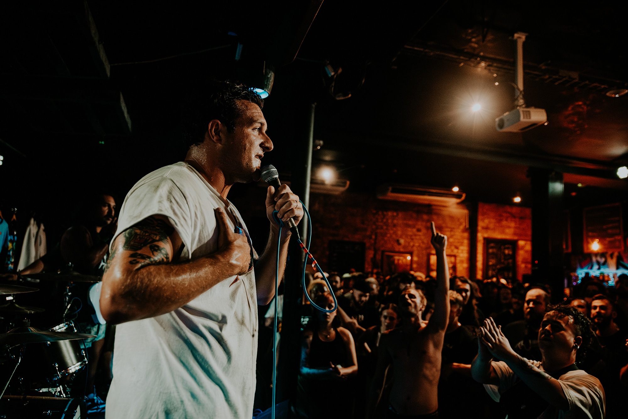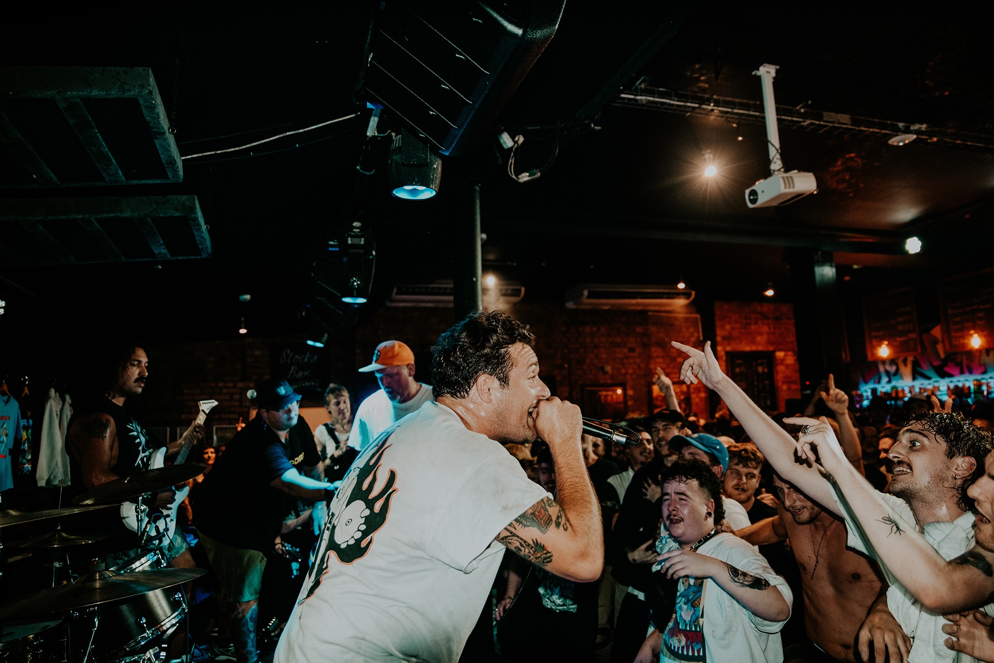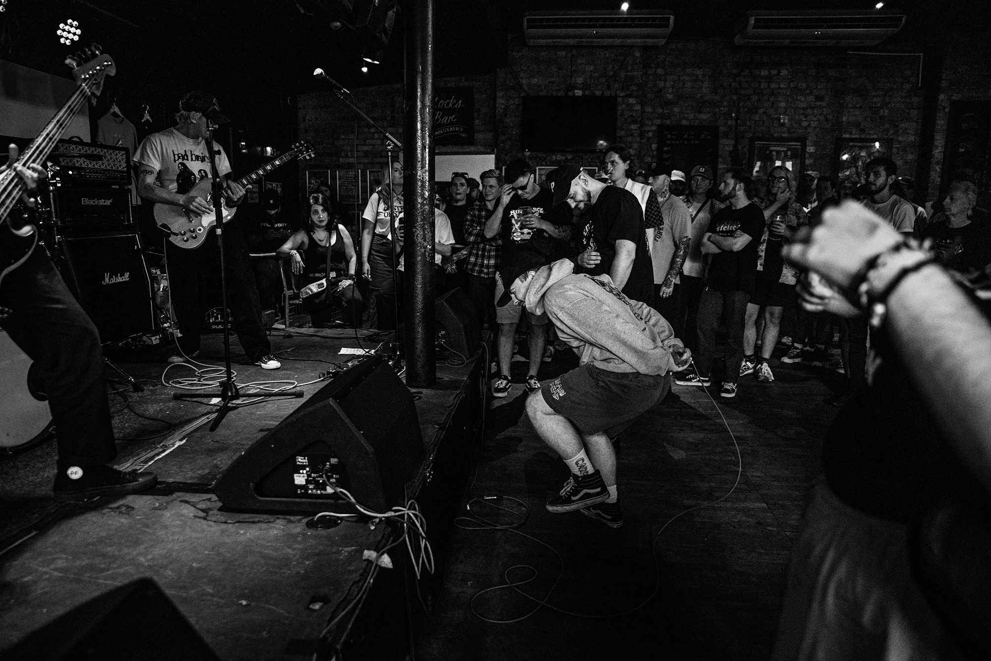 It’s DRAIN‘s first time at the New Cross Inn and vocalist Sammy Ciaramitaro makes it clear that he wants this to be a special one before the band have even launched into Feel The Pressure. The ripping opening track to their 2020 debut full-length California Cursed incites immediate bedlam, with stage divers and mic-grabs galore as a beach ball bounces somewhat neglected around the pit. Watch You Burn goes down similarly, kicking off a run of cuts from the outstanding Living Proof that includes the super bouncy FTS (KYS) and the band’s phenomenal cover of the DESCENDENTS‘ Good Good Things for which it doesn’t seem to matter in the slightest that Ciaramitaro can’t seem to find a working mic.