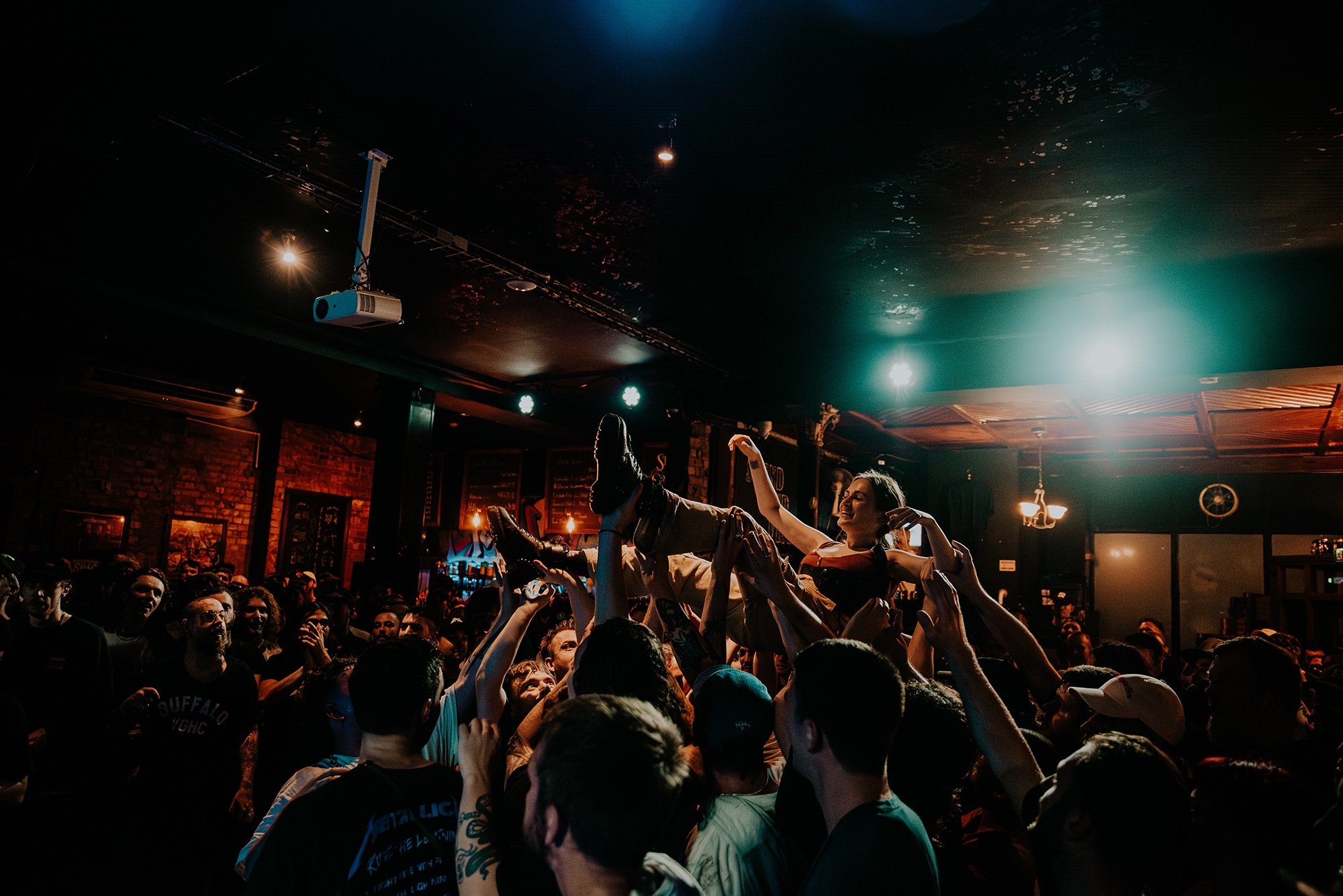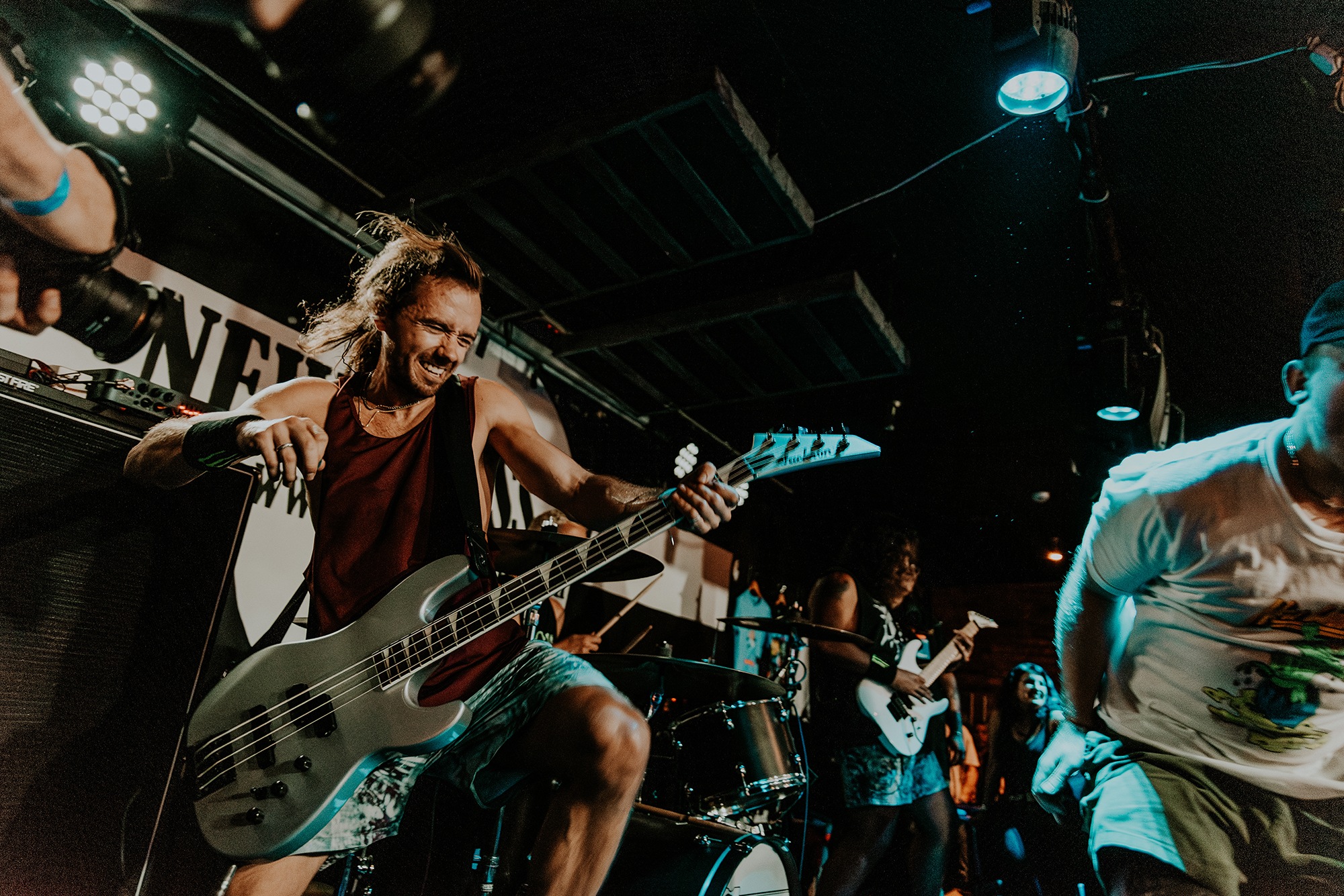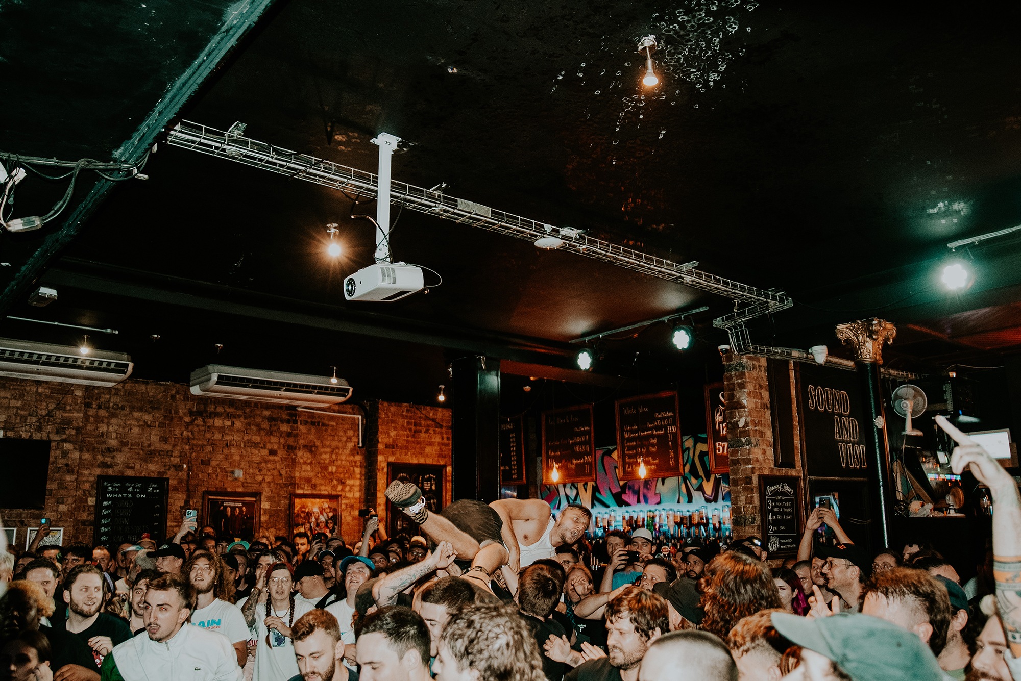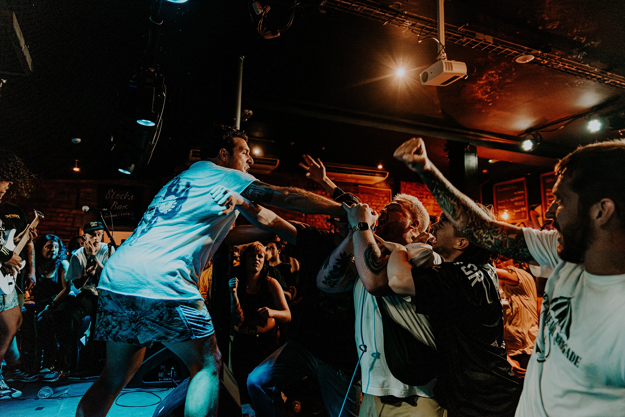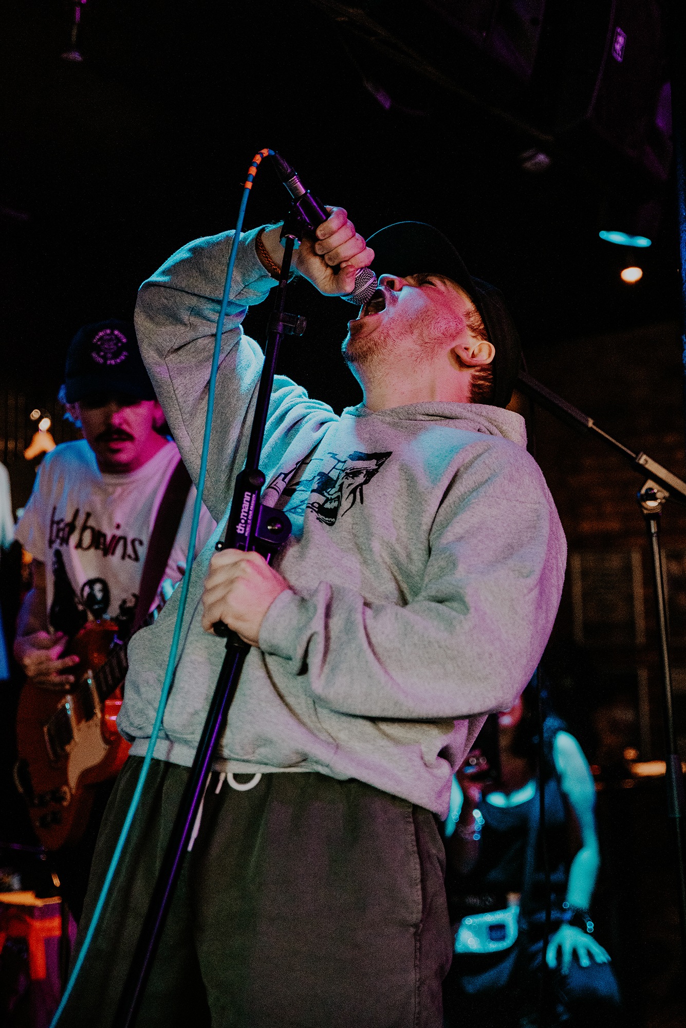 It’s DRAIN‘s first time at the New Cross Inn and vocalist Sammy Ciaramitaro makes it clear that he wants this to be a special one before the band have even launched into Feel The Pressure. The ripping opening track to their 2020 debut full-length California Cursed incites immediate bedlam, with stage divers and mic-grabs galore as a beach ball bounces somewhat neglected around the pit. Watch You Burn goes down similarly, kicking off a run of cuts from the outstanding Living Proof that includes the super bouncy FTS (KYS) and the band’s phenomenal cover of the DESCENDENTS‘ Good Good Things for which it doesn’t seem to matter in the slightest that Ciaramitaro can’t seem to find a working mic.