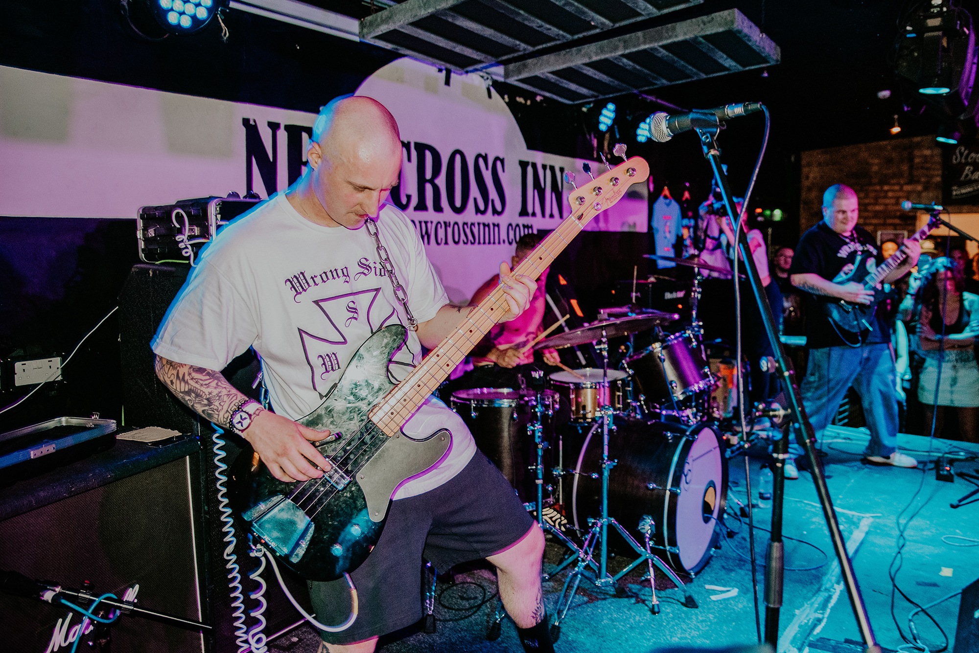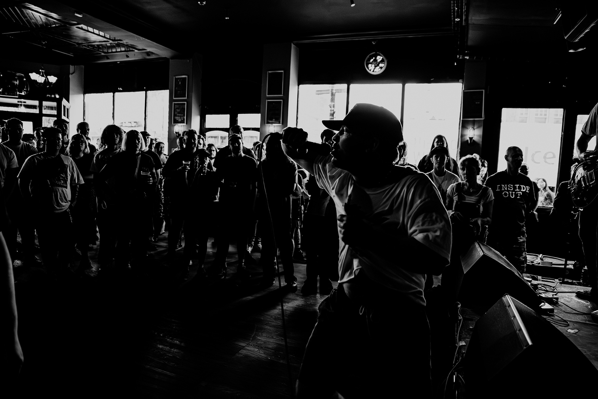 First up are the capital’s own DYNAMITE, a band who’ve kept pretty busy since the release of their debut demo back in April. The five-piece are on for less than a quarter of an hour – to be fair that’s more than twice the length of the demo – and they keep things tight and fast and old school with some cool bouncy parts in the mix for good measure. New drummer James keeps the momentum nice and high in his first show with the band, but much like their appearance at the Outbreak Fest pre-show it’s vocalist Alex who is most compelling of all – a high-energy frontman and a proper champion for UKHC with a great shouty delivery that suits the band’s classic punky style.