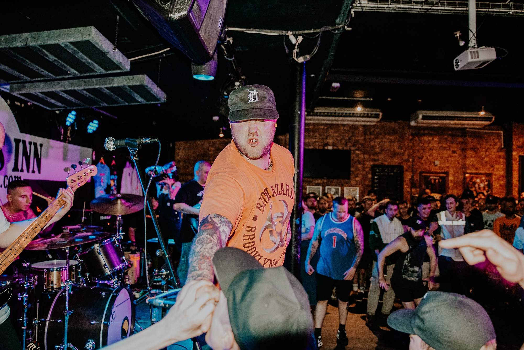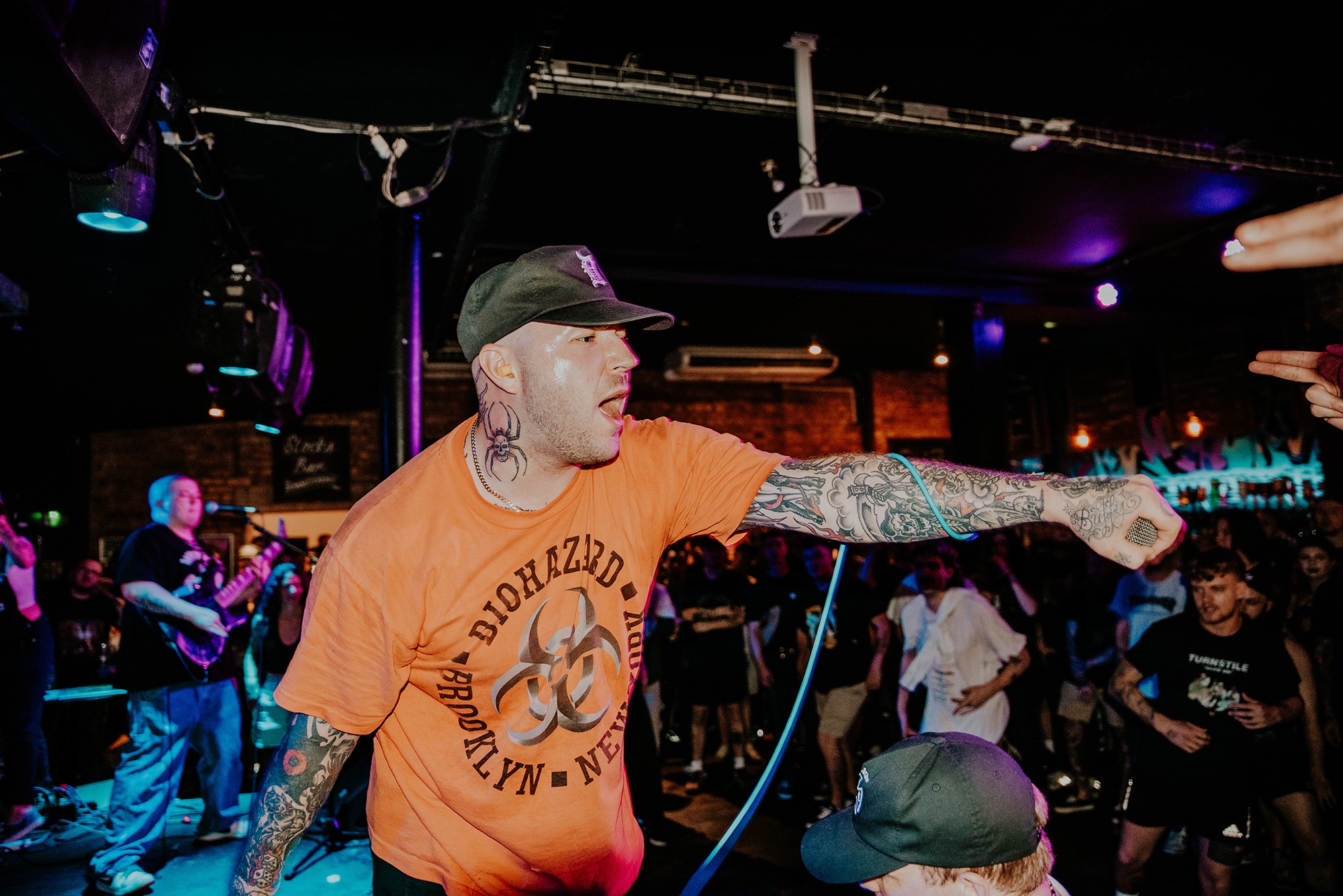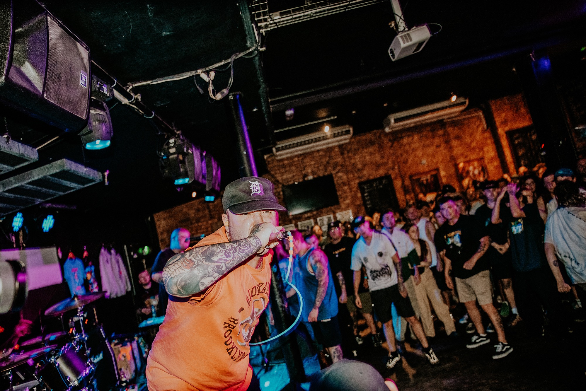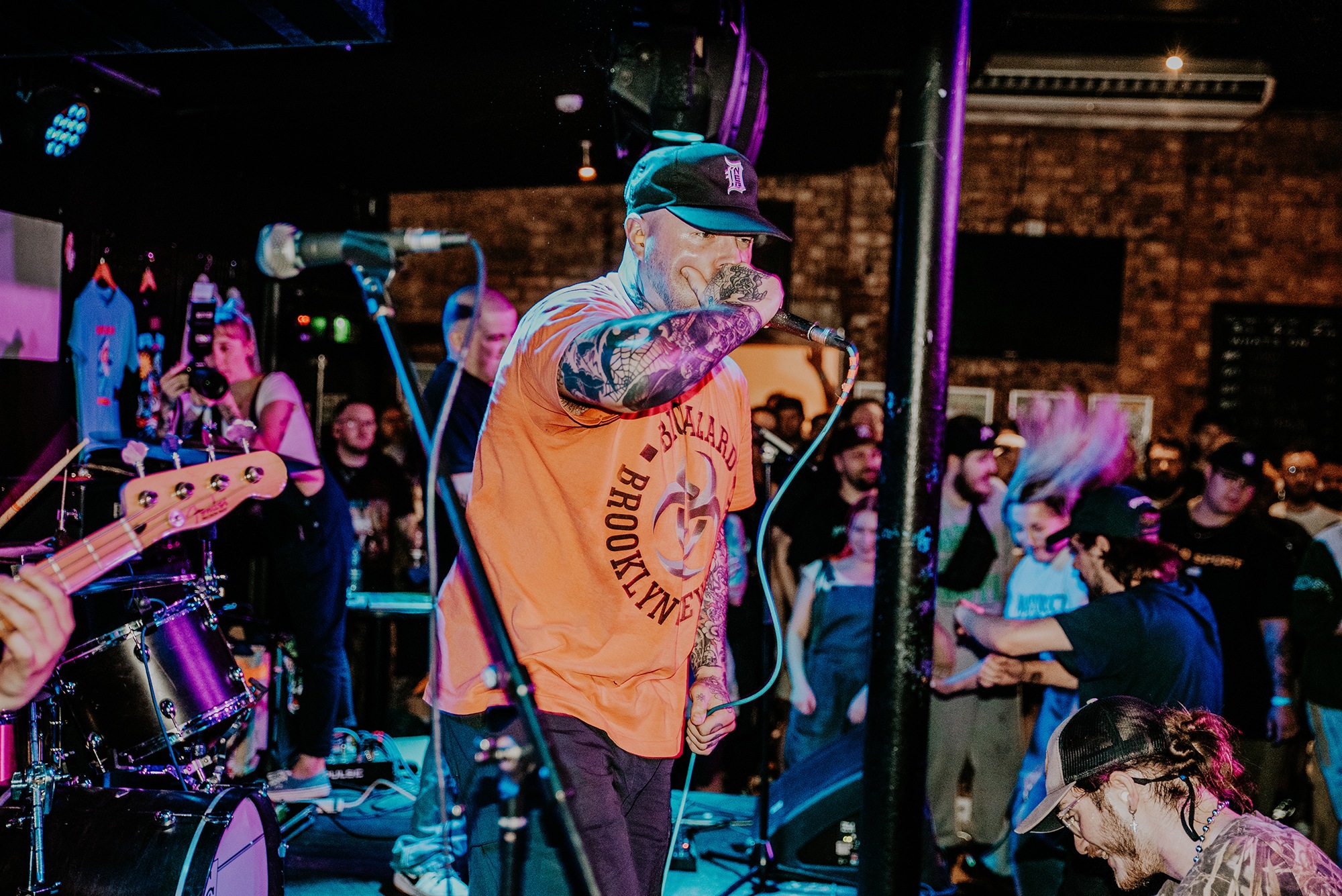 LAST WISHES aren’t about to let things cool off either. Taking to the stage to the squeal of their guitars, the Leeds-based bruisers deliver another high aggro set that is met with renewed levels of (consensual) violence from the crowd. Vocalist Corin is an absolute beast, his barks and bellows sounding even more guttural and death metally than they do on record and serving the band’s throat-grabbing style perfectly. The vaguely melodic Loyalty – from the band’s 2022 debut full-length Organized Hate – prompts more of a sing-along, as does UTH to some extent, but the primary focus here is one of complete obliteration, as indeed is clear as Corin declares – or demands – “everyone’s a victim” before the set concludes in a mass of flailing limbs and flying beer cups.