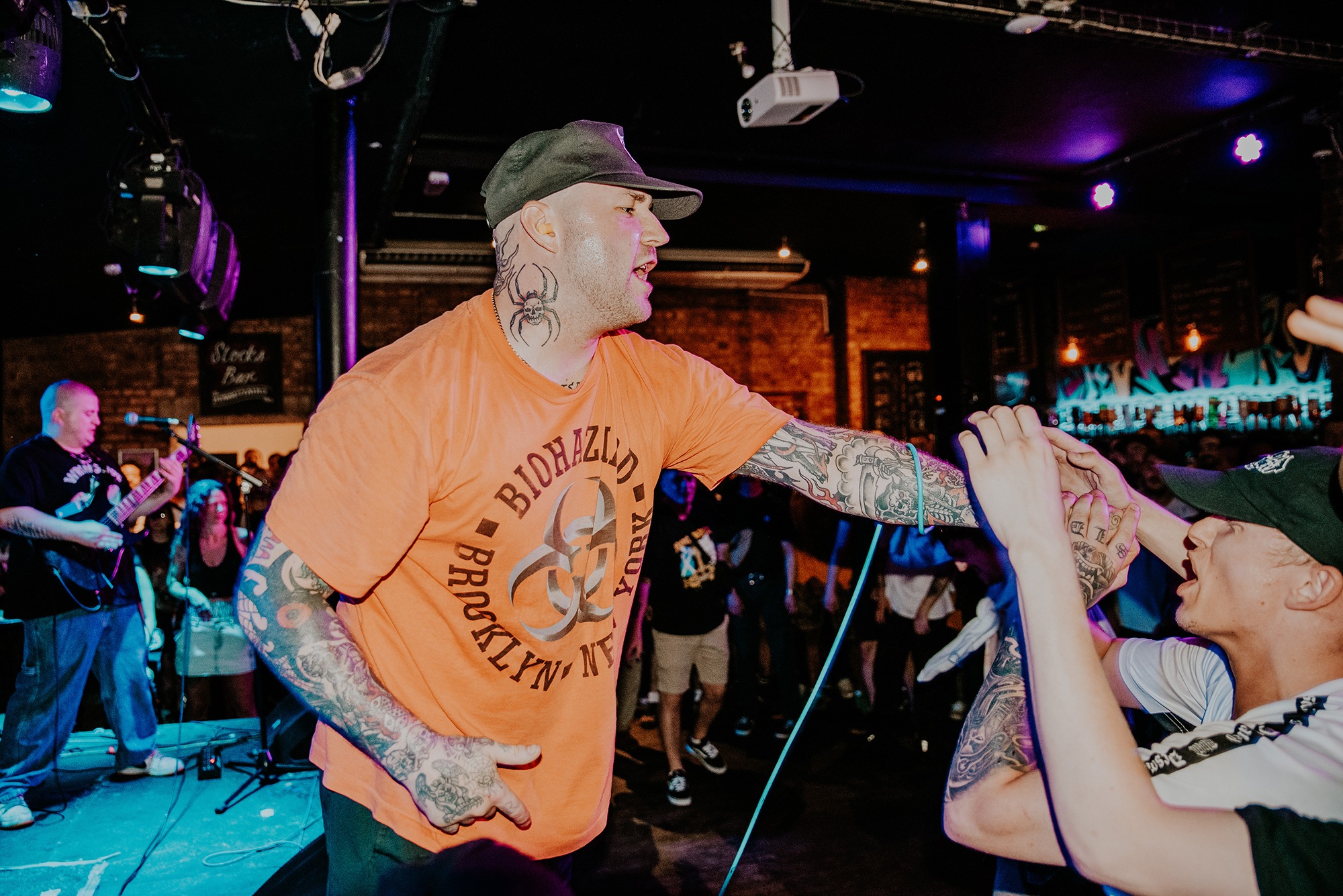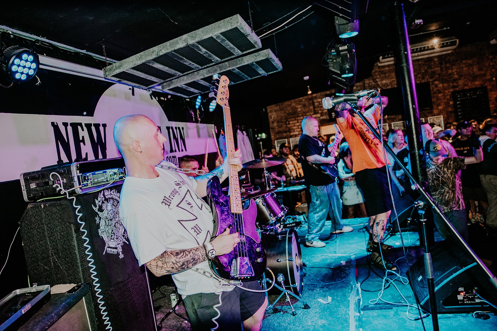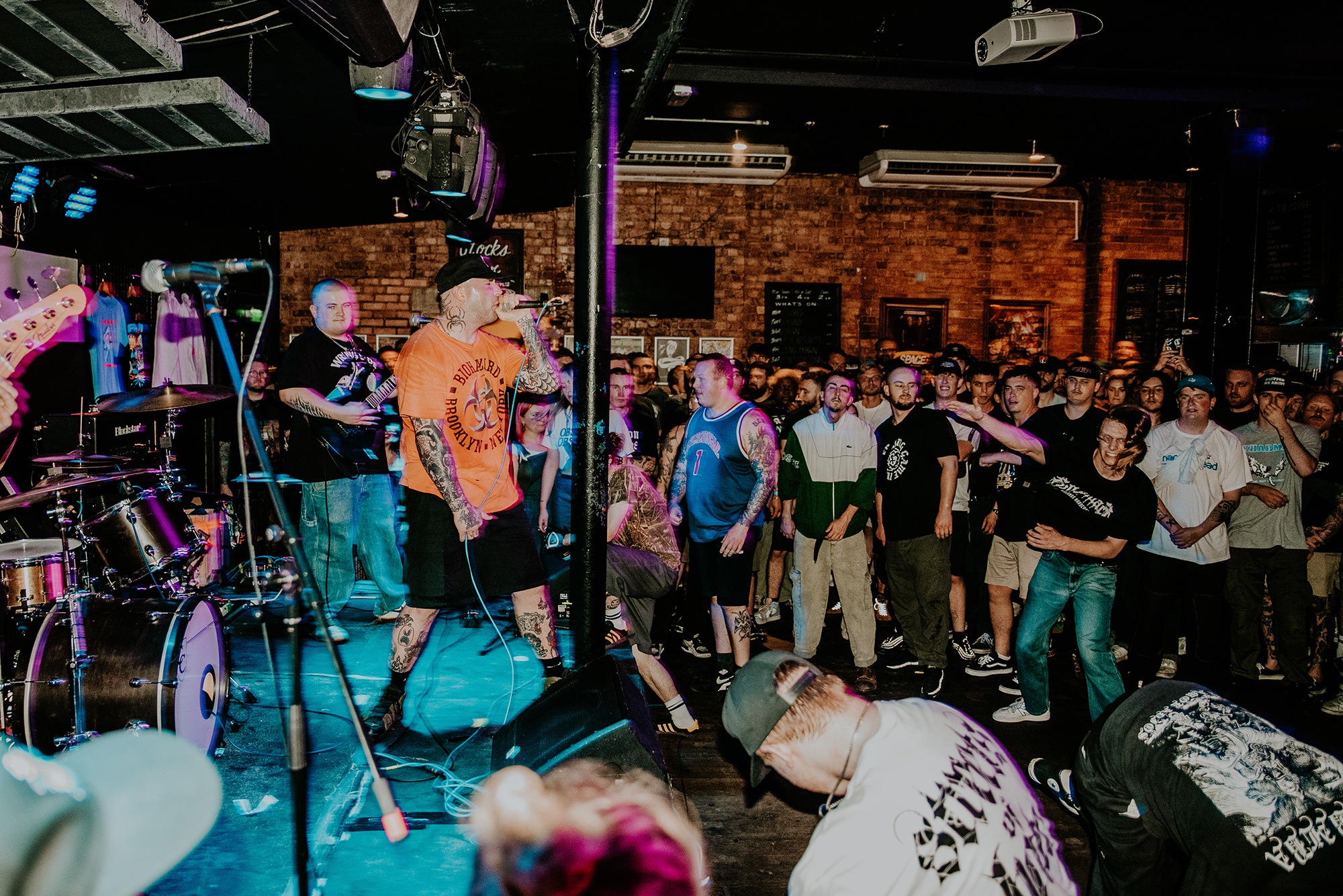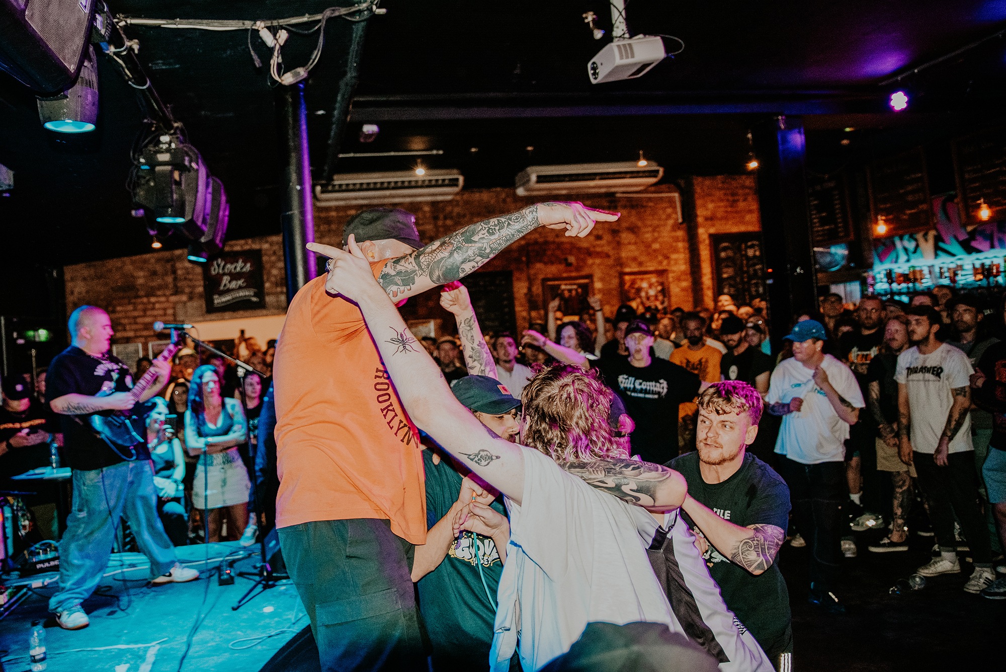 LAST WISHES aren’t about to let things cool off either. Taking to the stage to the squeal of their guitars, the Leeds-based bruisers deliver another high aggro set that is met with renewed levels of (consensual) violence from the crowd. Vocalist Corin is an absolute beast, his barks and bellows sounding even more guttural and death metally than they do on record and serving the band’s throat-grabbing style perfectly. The vaguely melodic Loyalty – from the band’s 2022 debut full-length Organized Hate – prompts more of a sing-along, as does UTH to some extent, but the primary focus here is one of complete obliteration, as indeed is clear as Corin declares – or demands – “everyone’s a victim” before the set concludes in a mass of flailing limbs and flying beer cups.