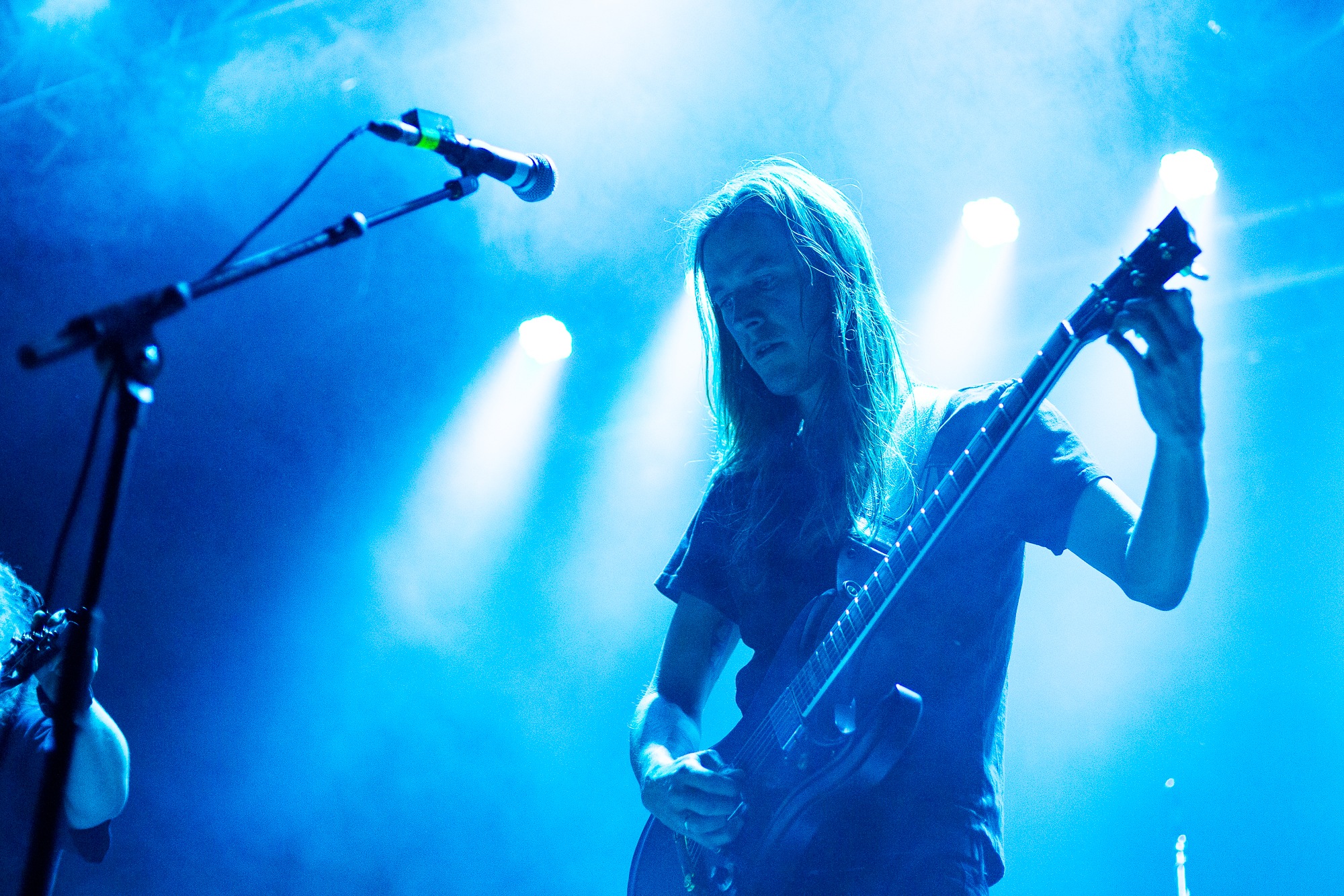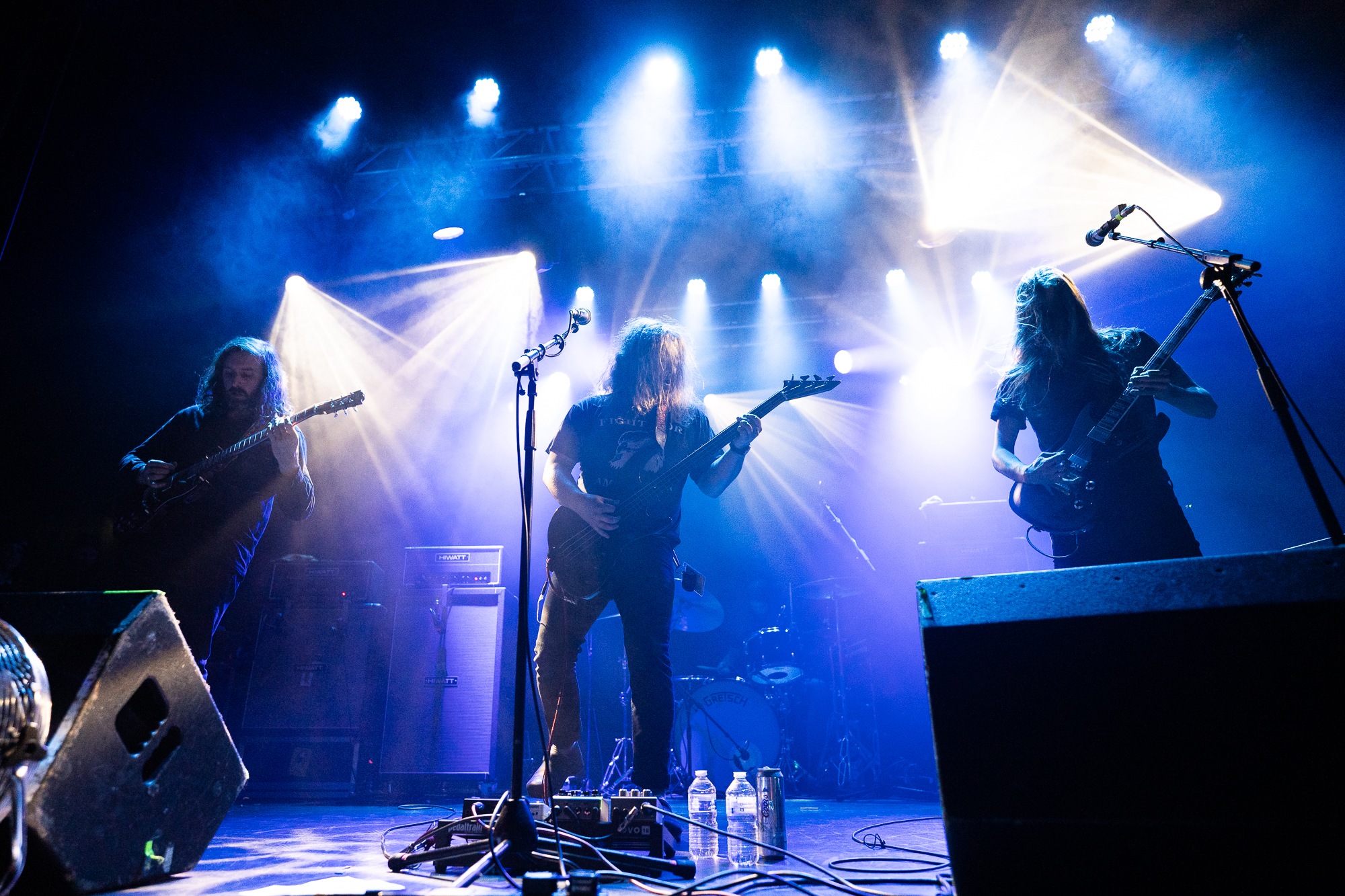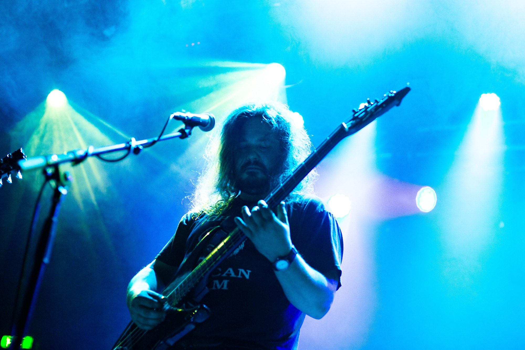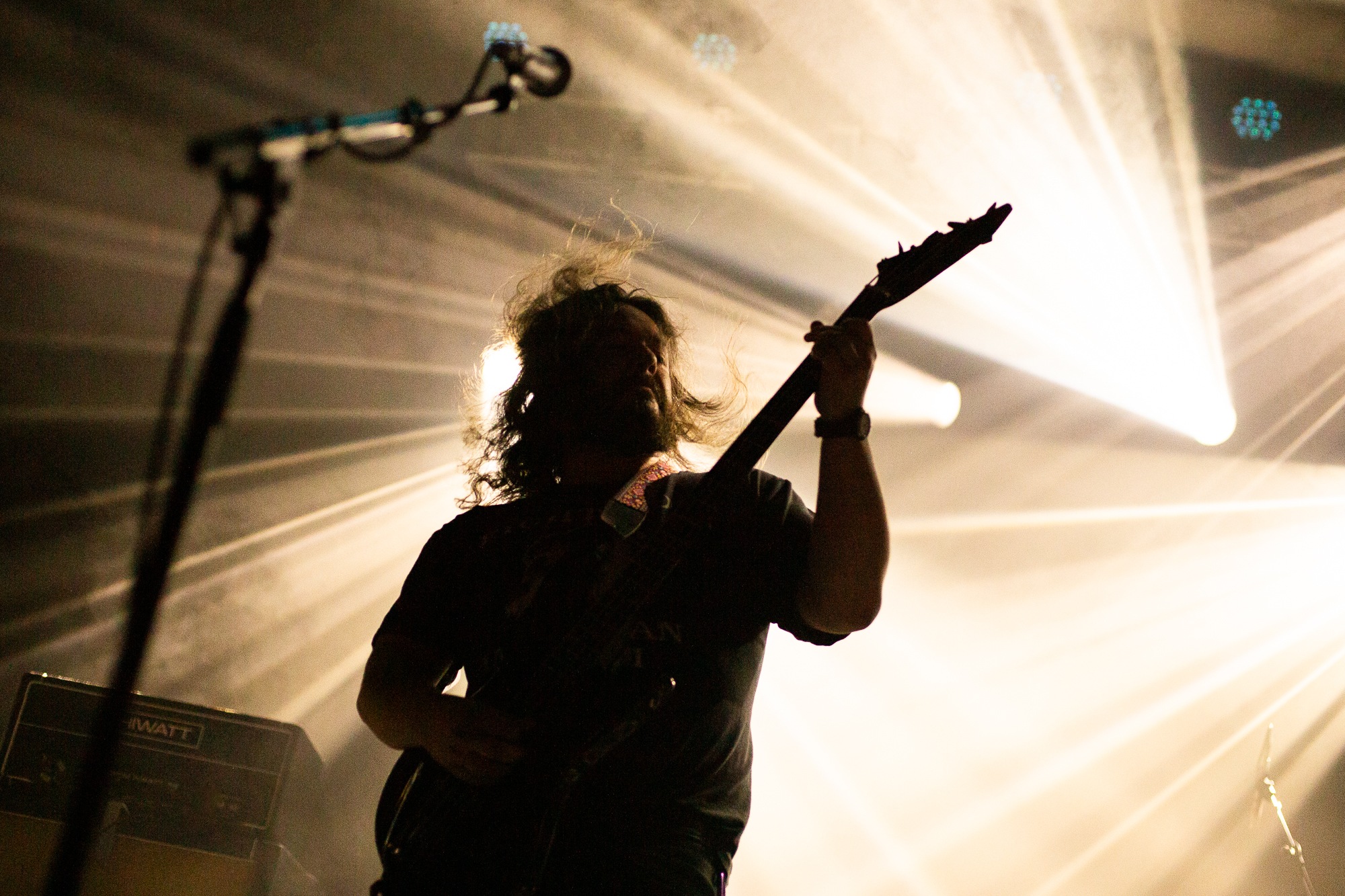 Opening with Catastasis, they weave intricate, atmospheric prog with an infusion of psychedelia that the crowd lap up. It’s immediately transportive as the song ebbs and flows. An evocative light show only heightens the feeling of transcendence, soft hues contrasted by roving and pulsing bright whites. ELDER make such captivating music seem effortless, the sprawling Merged In Dreams – Ne Plus Ultra near rapturous, while the cuts from Reflections… (Blind and encore Sanctuary) exemplify their ability to meld those stoner influences in solid riffs with loose, noodly prog that hangs together as a complete work of art. Sure, nobody’s throwing shapes in a moshpit, but the raucous cheers, along with just one look at the grins and sheer bliss on people’s faces says it all.