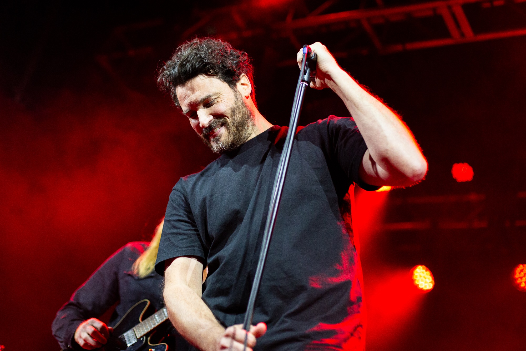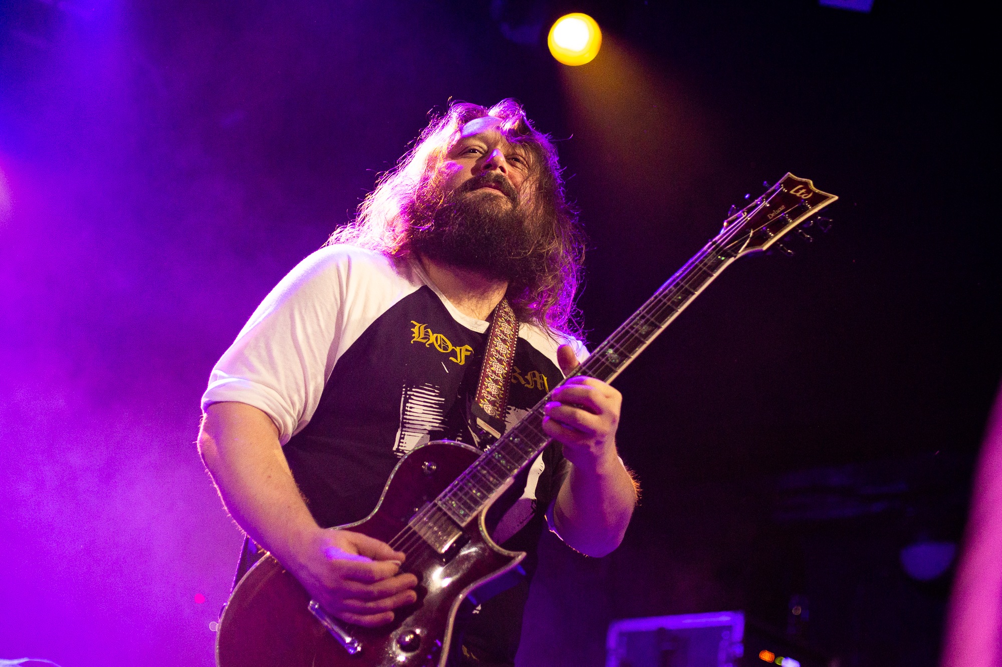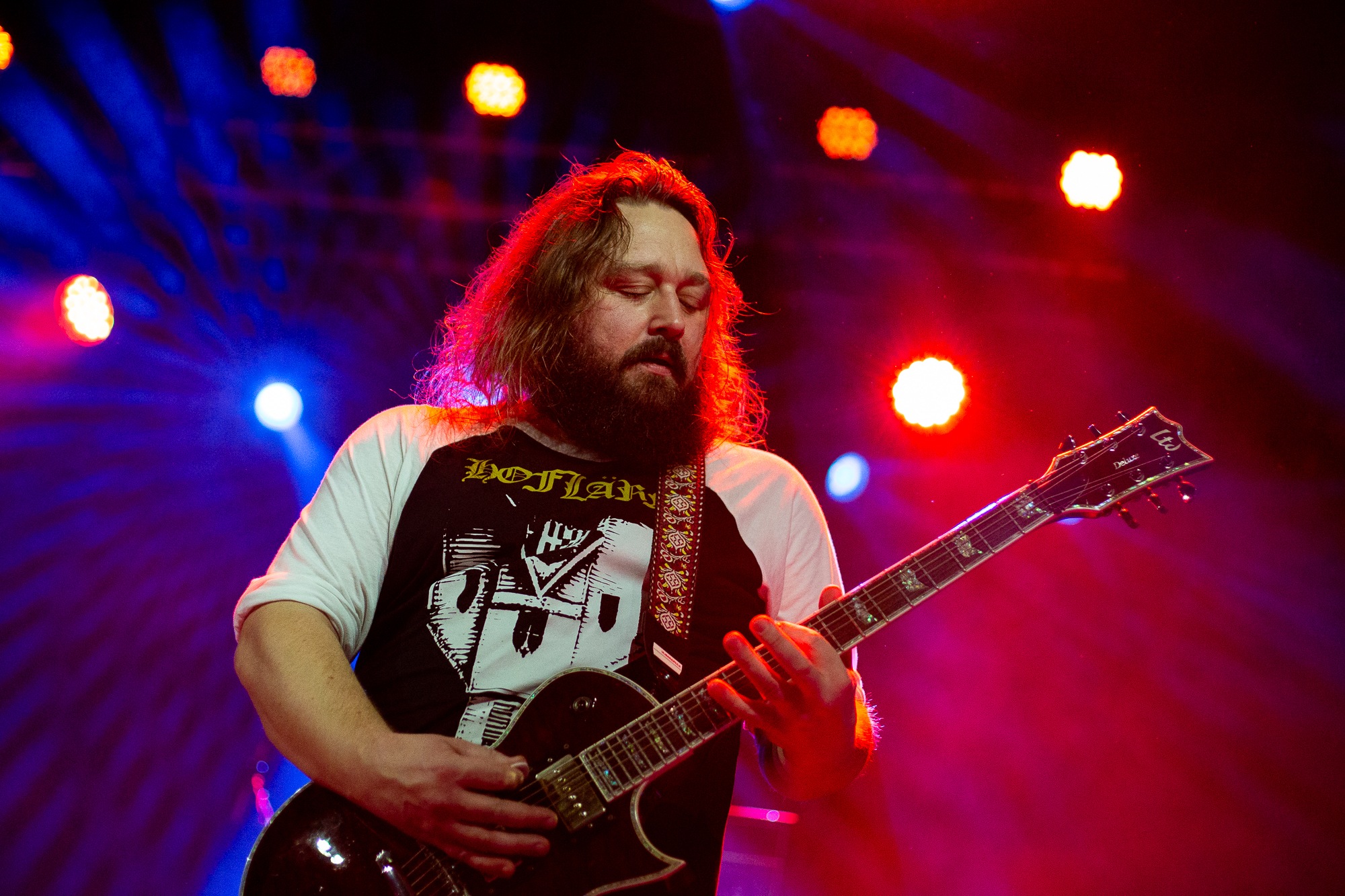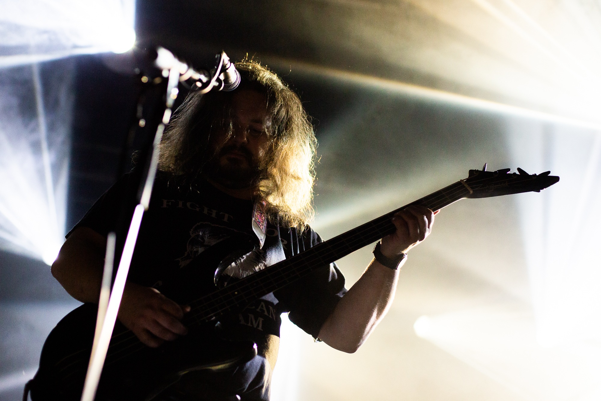 Opening with Catastasis, they weave intricate, atmospheric prog with an infusion of psychedelia that the crowd lap up. It’s immediately transportive as the song ebbs and flows. An evocative light show only heightens the feeling of transcendence, soft hues contrasted by roving and pulsing bright whites. ELDER make such captivating music seem effortless, the sprawling Merged In Dreams – Ne Plus Ultra near rapturous, while the cuts from Reflections… (Blind and encore Sanctuary) exemplify their ability to meld those stoner influences in solid riffs with loose, noodly prog that hangs together as a complete work of art. Sure, nobody’s throwing shapes in a moshpit, but the raucous cheers, along with just one look at the grins and sheer bliss on people’s faces says it all.
