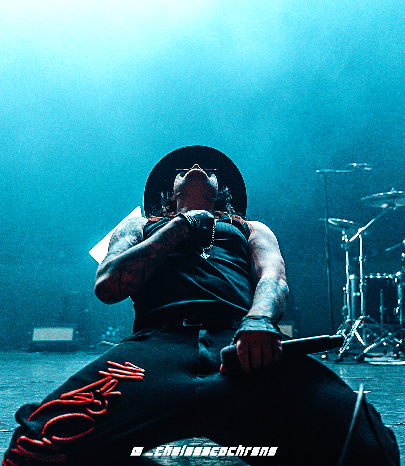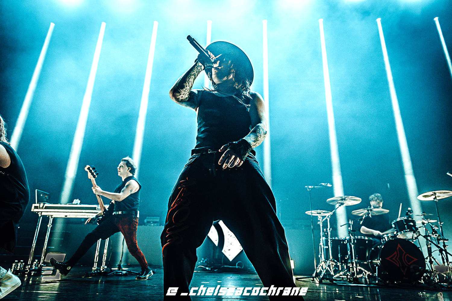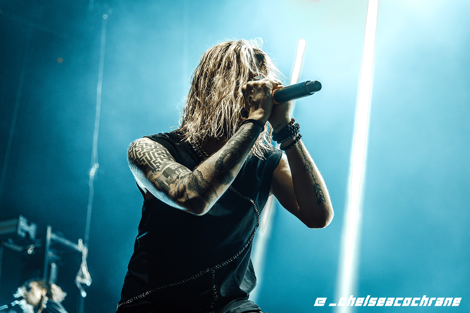 In a firm rebuttal of metal fans being overly serious and hating fun, Sweet Caroline over the PA sees a room singing along in deafening unison shortly before BLIND CHANNEL are due. The Finns erupt onto the stage with Alive Or Only Burning and We Are No Saints, the crowd immediately in the palms of the hands. A giant diamond with the band initials emblazoned flashes the colour of the lighting as the sextet tear through their take on rap metal with fast flows and towering melodies. To say BLIND CHANNEL know what they’re doing is a gross understatement; their stage presence is electrifying, several members bounding across the stage, making full use of risers and commanding the crowd with ease whether it’s dancing or opening pits. The band pack in more than enough bangers including a cover of ANASTACIA‘s Left Outside Alone that, while it doesn’t reach the same heights as MALEVOLENCE‘s cover, still gives them more than enough to cement themselves as a band not to be missed live.