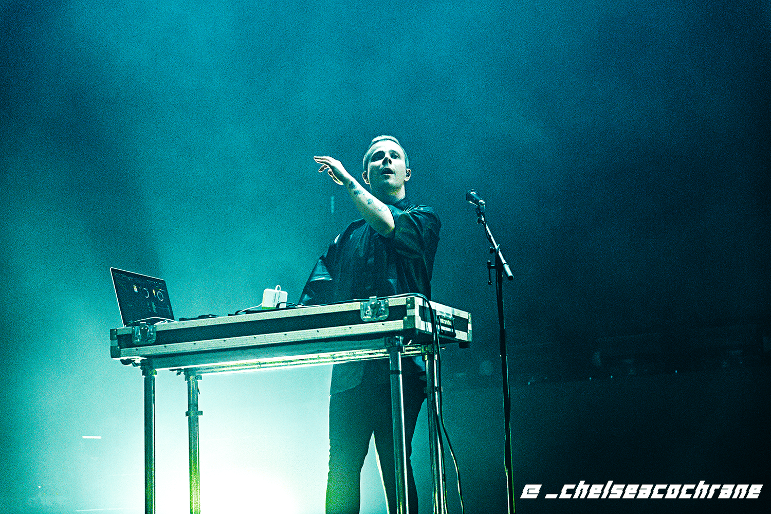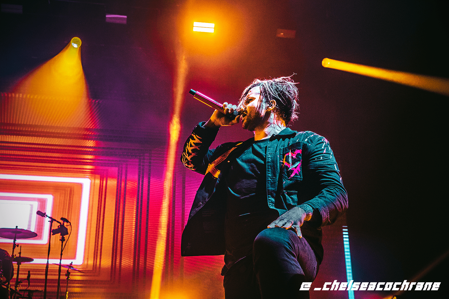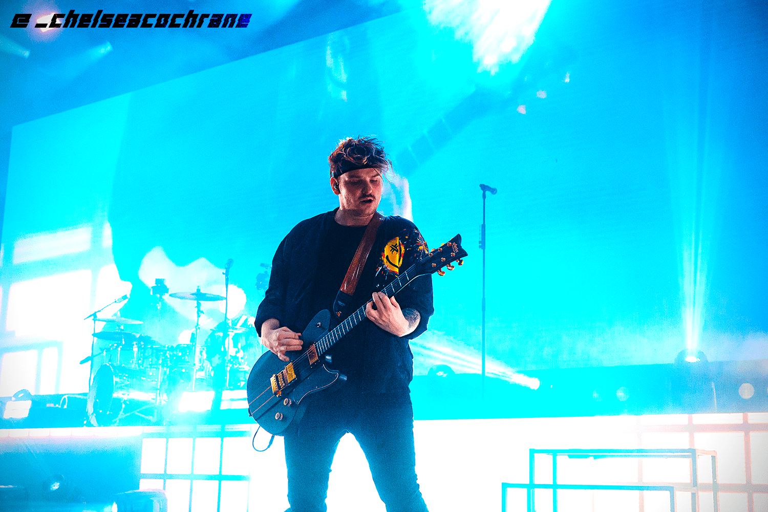 Taking the stage just half an hour after doors, FUTURE PALACE open to a sparse crowd, but those that are here cheer, clap and sing loud enough for twice their number. Flickering, pulsing tube lighting flanks them onstage, a visual treat that backs their arresting blend of soaring choruses with raw emotion and understated electronics. It’s surprising to see they’re a trio, the mix sounding full in spite of a lack of live bass and the band’s presence spilling over from the stage. By halfway in, the crowd’s filled out significantly and is just as enthusiastic, with calls for circle pits and even walls of death being answered gleefully. Half an hour passes all too quickly.