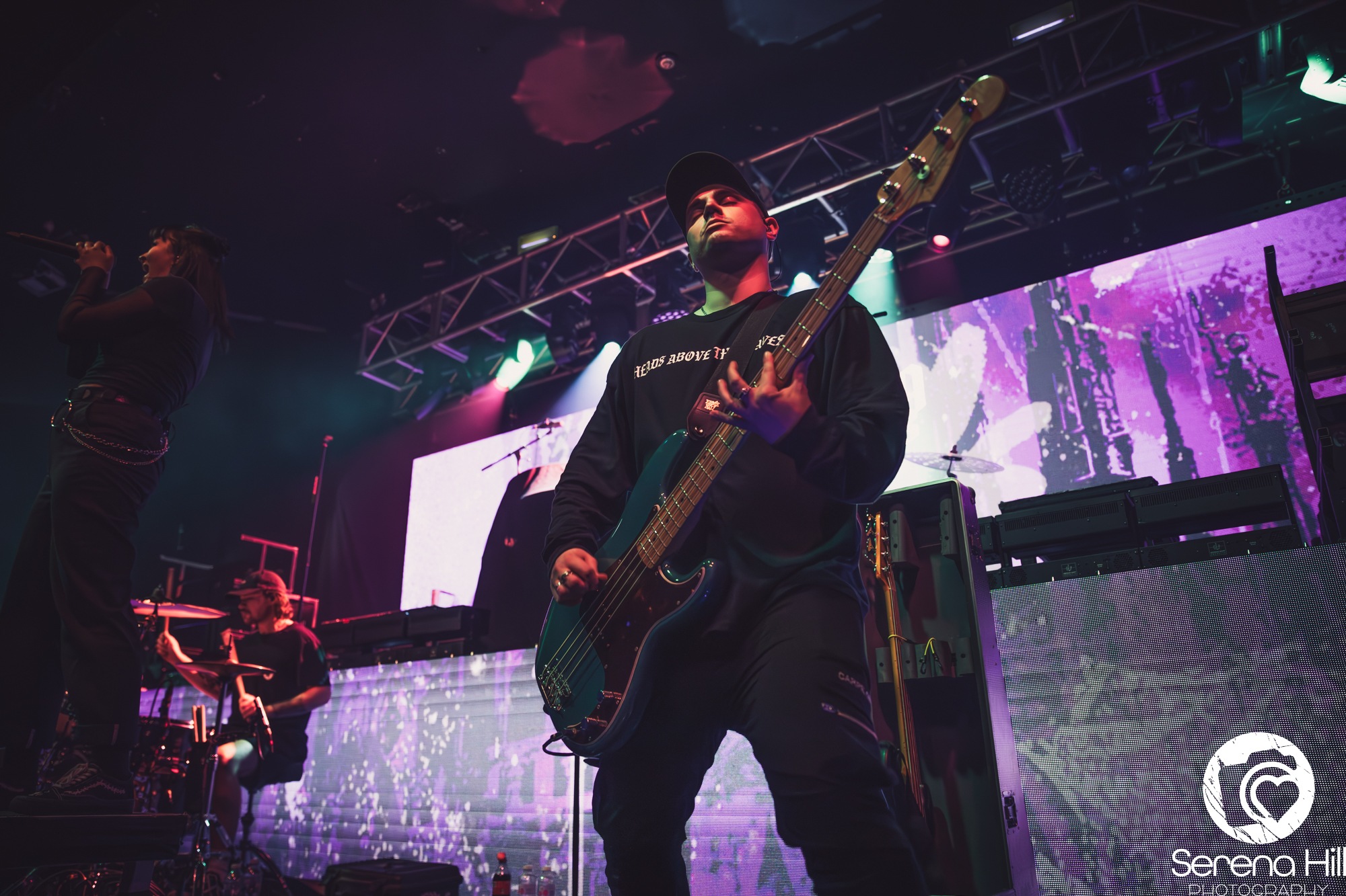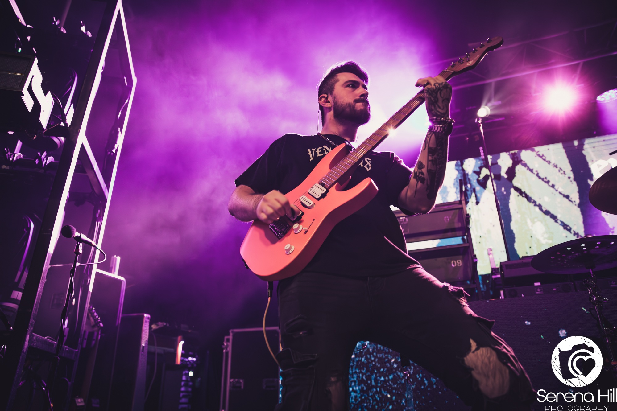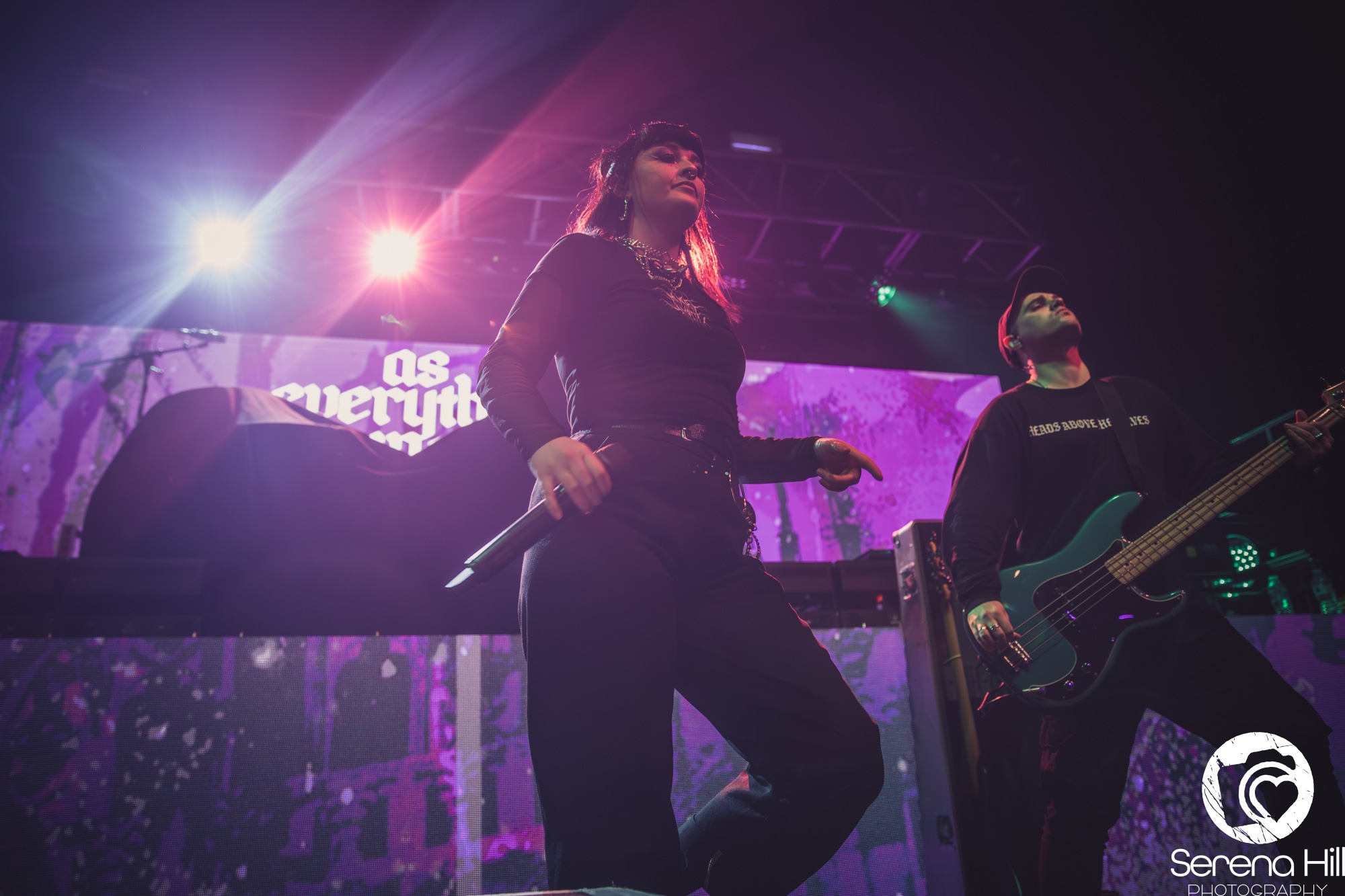 Next up is High Wycombe metallers AS EVERYTHING UNFOLDS. While their music isn’t as heavy as MONUMENTS, they certainly match their intensity, with vocalist Charlie Rolfe showing real star power with her commanding stage presence and impressively diverse vocal performance. The support act clearly have a fair few fans in attendance, as a noticeable portion of attendees sing back the lyrics with considerable passion. On The Inside is an excellent closer, promising great things for the band’s headline tour at the start of next year.