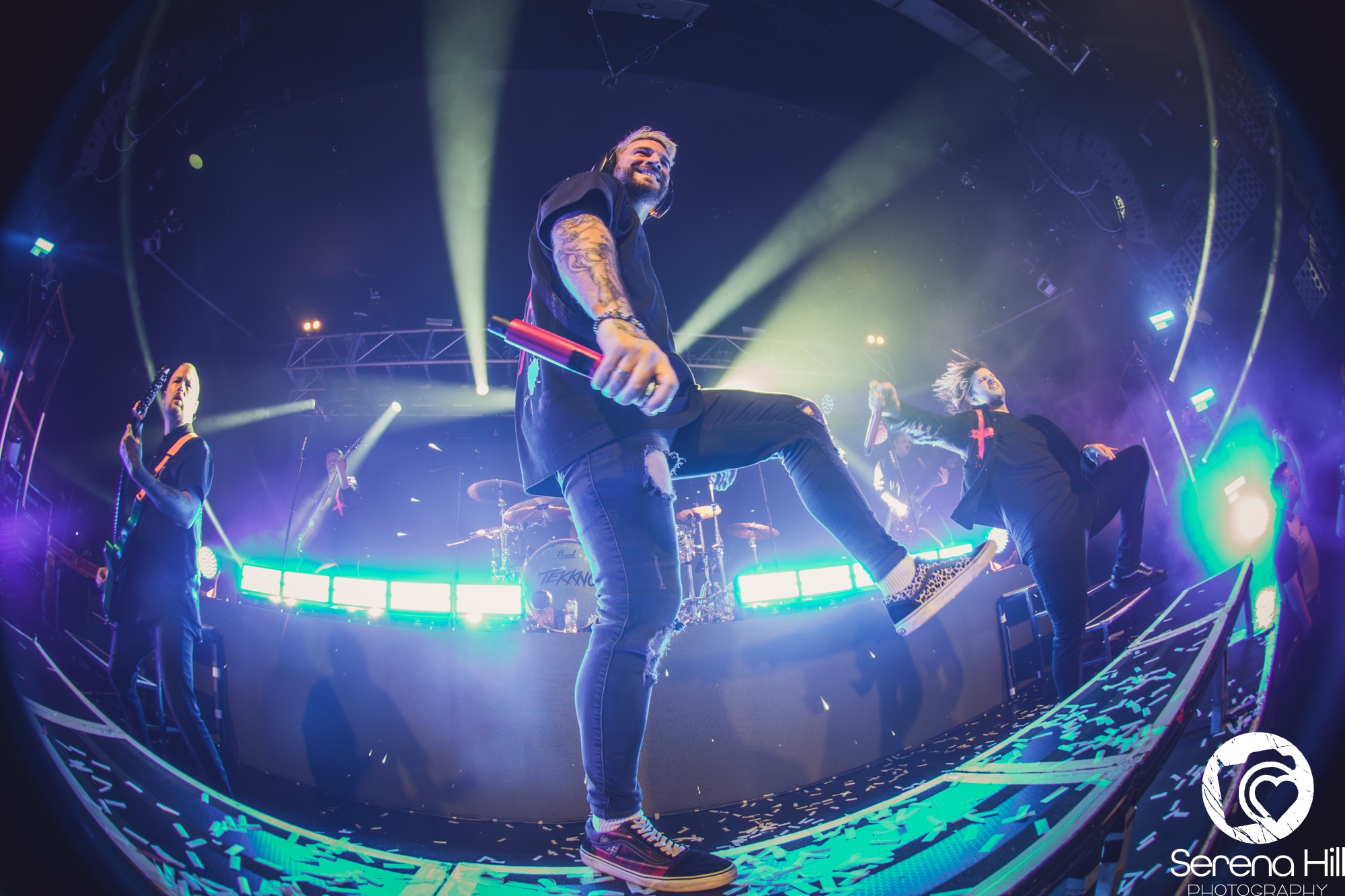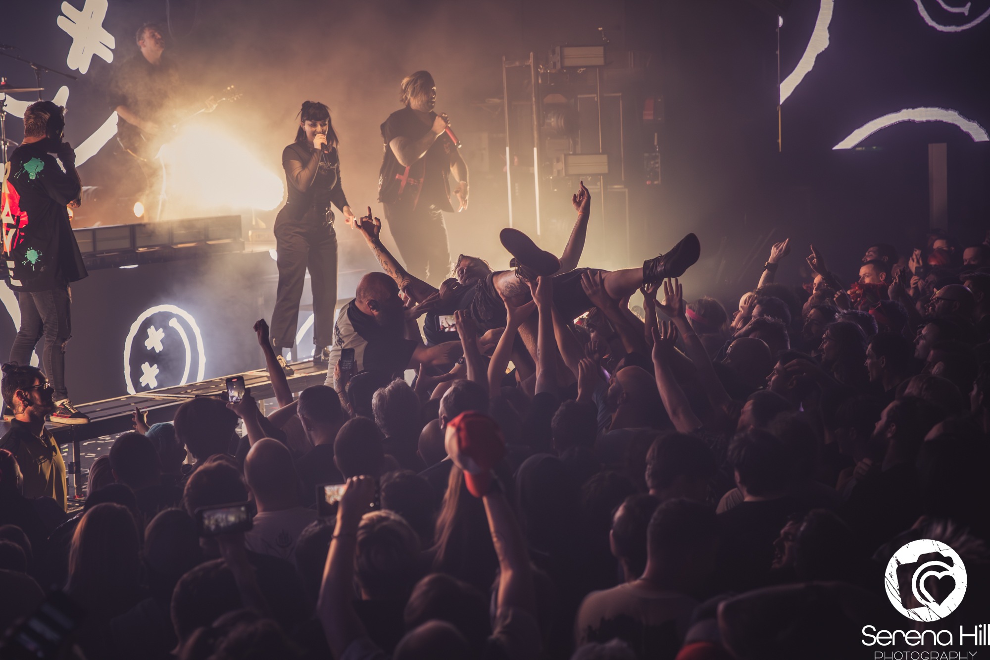 Very few bands could pull off such a cheesy interlude but ELECTRIC CALLBOY’s infectiously unserious energy makes it work. Another highlight of the set is Fuckboi, which sees AS EVERYTHING UNFOLD‘s Charlie Rolfe join the sextet onstage to perform the female vocals featured on the track.Â