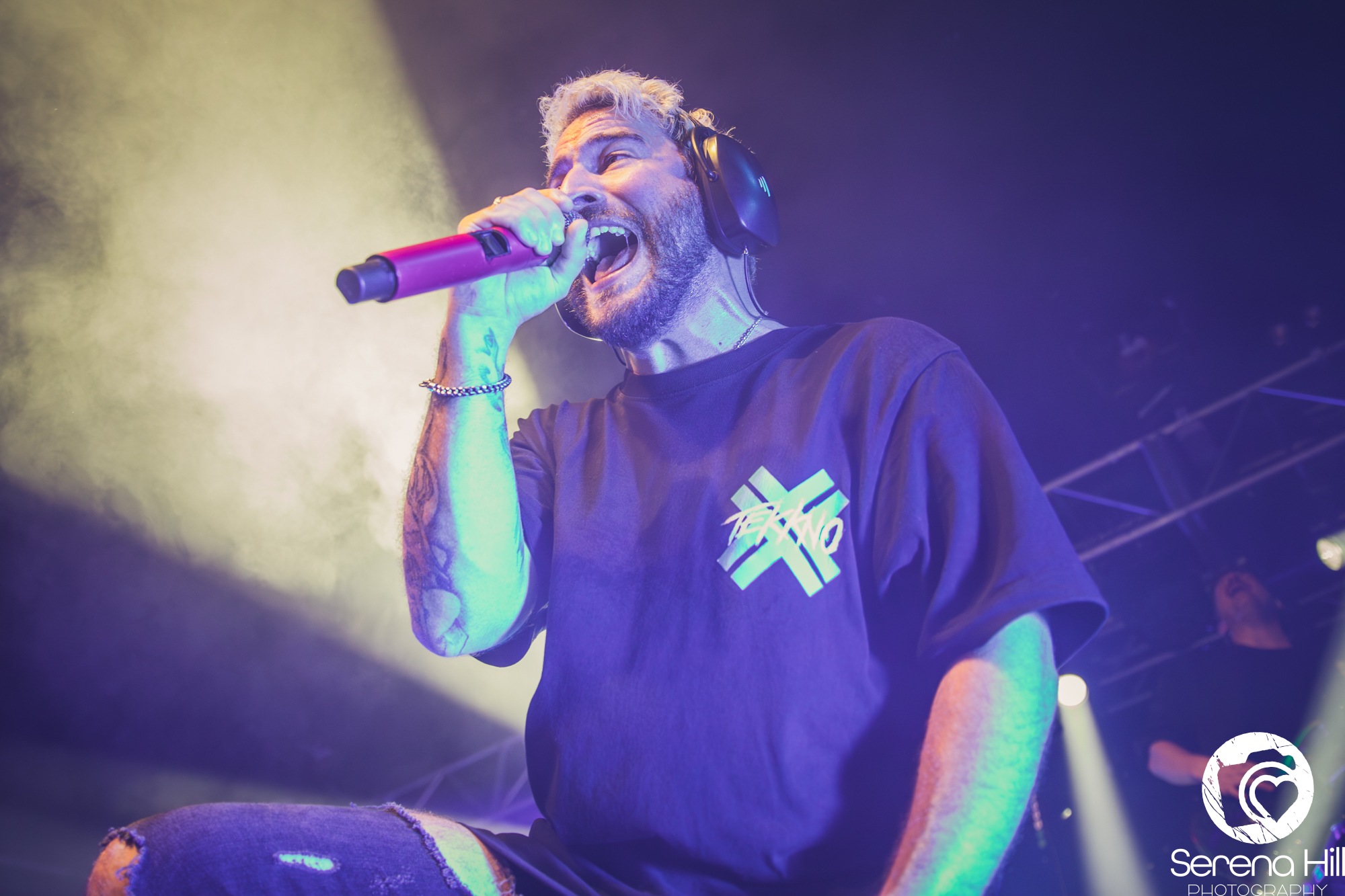 But before the Tekkno Train can roll through Bristol’s O2 Academy, it is the turn of British progressive metalcore outfit MONUMENTS to get the energy levels up. Starting with A.W.O.L., the opener from their 2018 album Phronesis, the four-piece get the crowd moving with their djent-infused jams. Frontman Andy Cizek, who joined the band for their 2022 album In Stasis, is an immense talent, doling out guttural low screams and soaring clean choruses with barely a pause between. The epic climax of Cardinal Red is no doubt the highlight of this excellent opening set.
