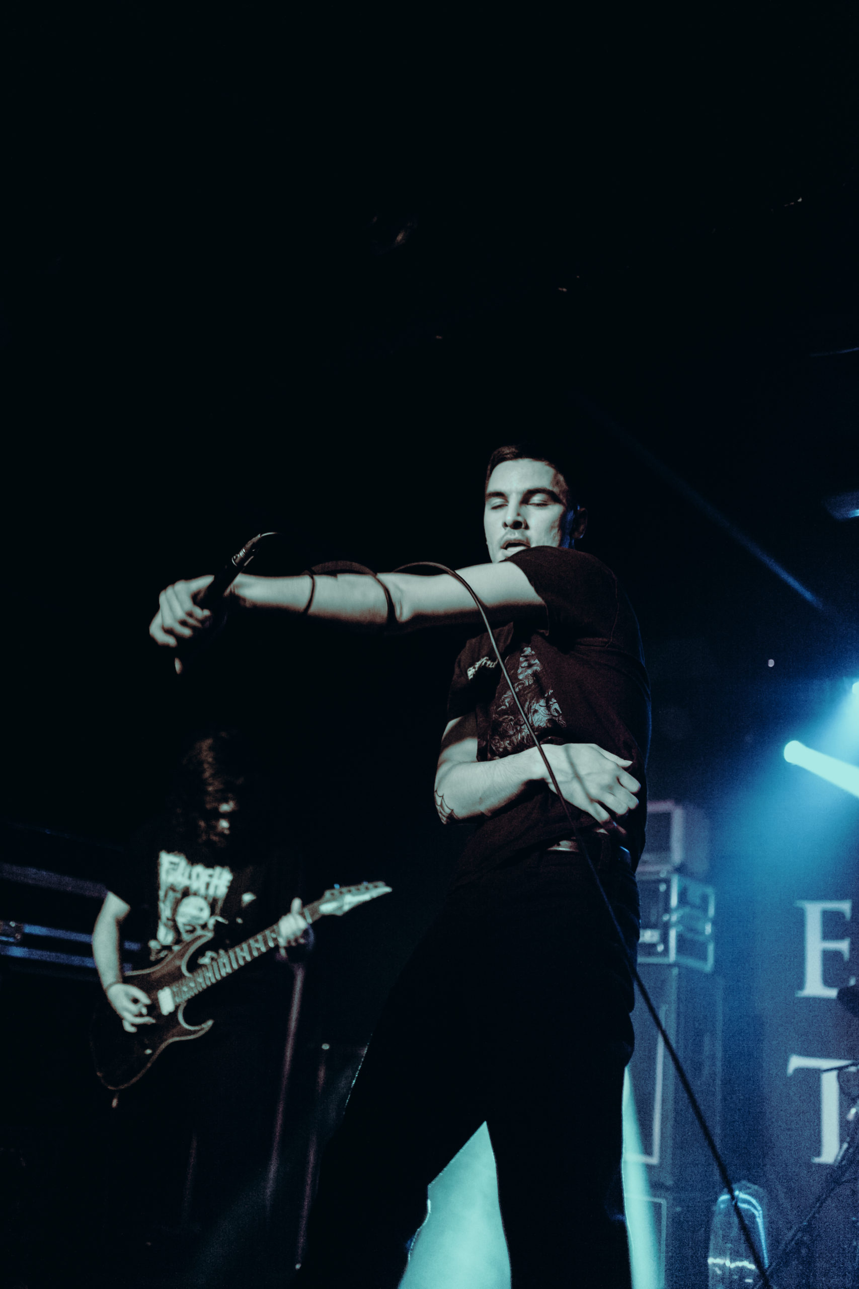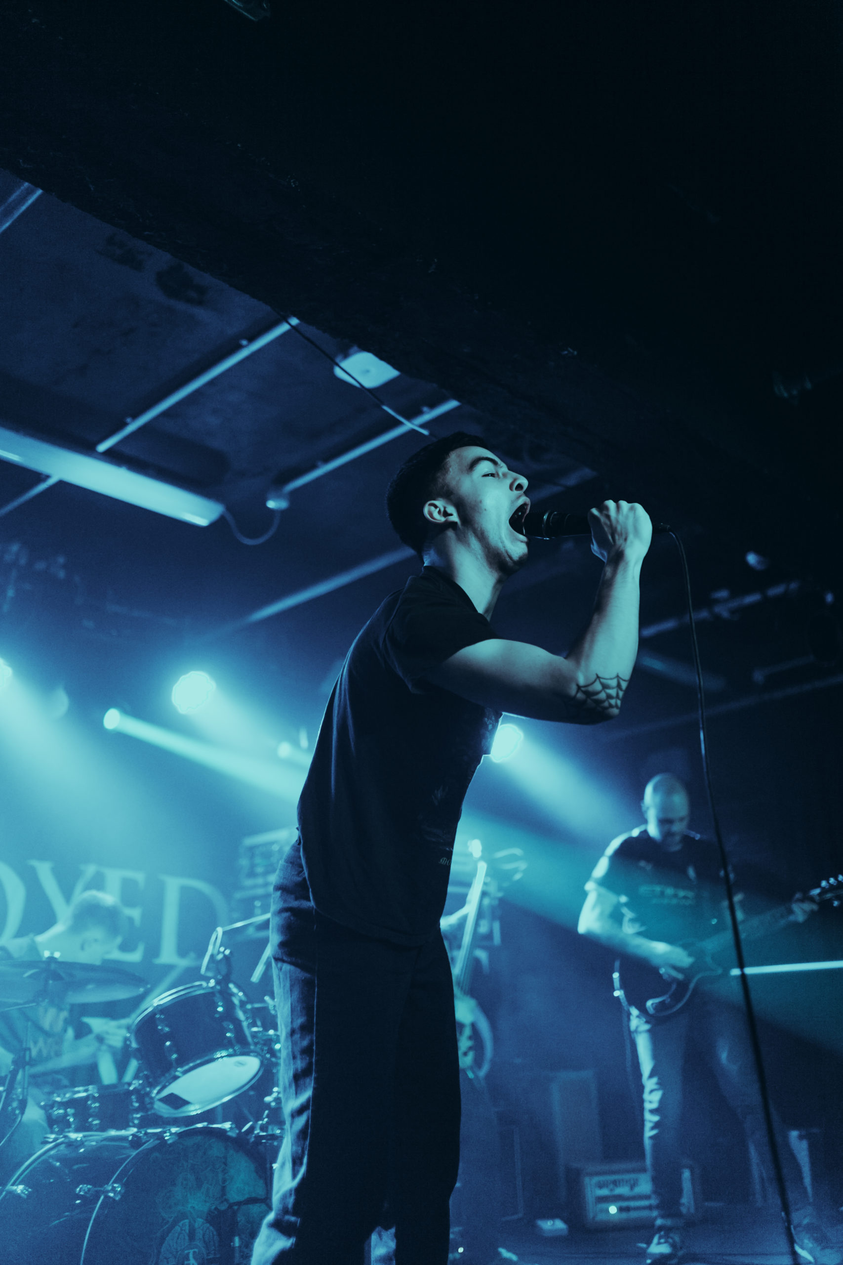 CRUELTY are up first and the Midlands-based hardcore troupe are intent of kicking things off with a bang. Their chunky riffs pack an almighty punch and vocalist Shaafi Parvez is particularly impressive, with both his aggressive barks and commanding stage presence ensuring attention is directed firmly at the stage. Like with any opening bands though, CRUELTY have the audacious task of winning over a thinned crowd but unfortunately, given the growing concern of COVID-19, tonight’s attendance in Manchester is desperately thin. It’s a sad thing to witness given the band giving absolutely everything to their time on stage. Maybe once the restrictions are lifted and the virus has subsided, CRUELTY will make a much more lasting impression.