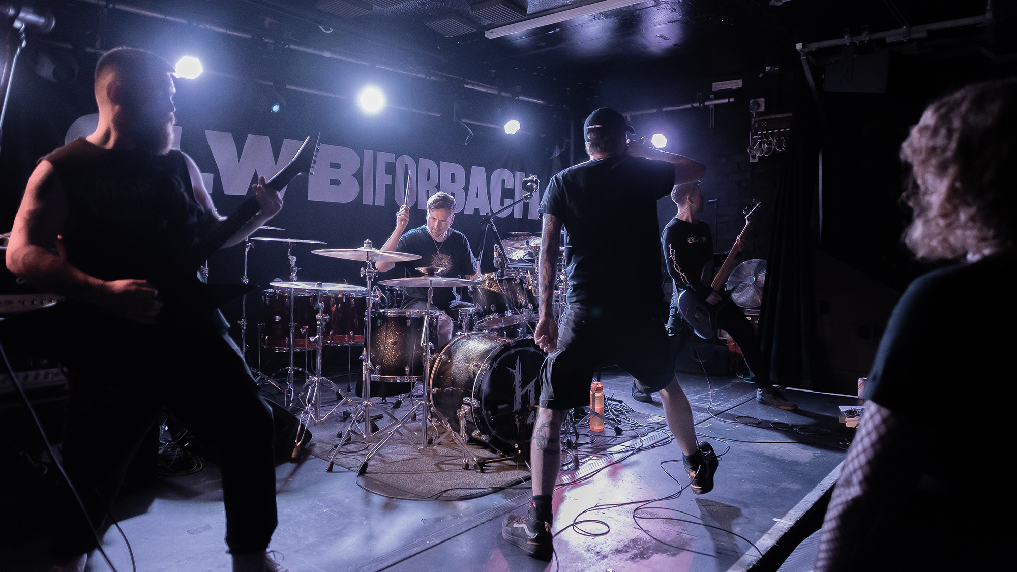 “You’re going to be hearing more from me tonight as Harry as been told he needs to be on vocal rest.” Tells guitarist Nathan Harlow before delivering a fiery set. Returning to the Welsh capital for the first time for almost a full year, BURNER have been on a hot streak since the release of their debut album It All Returns To Nothing. And with two newly released songs behind them, they take the stage as the band burst into The Night Does Not End. While Clwb Ifor Bach is a perfect sound for BURNER as they sound phenomenal, vocalist Harry Nott is on doctors’ orders to be on vocal rest, but you couldn’t tell as he’s up there thrashing around the stage with his barbed wire coated vocals cutting through the blaring drums of Jack Bryant. There’s almost zero crowd participation apart from a few heads nodding which is a shame for BURNER as they’re up there giving their all for the half empty room and people staggering in towards the end of their set. Still, it’s proven that even with a vocalist whose voice isn’t 100%, they make a statement about what they can do on stage.