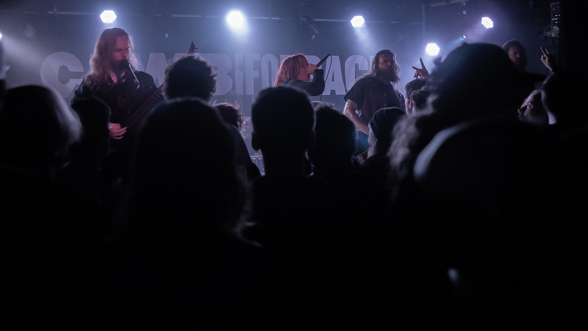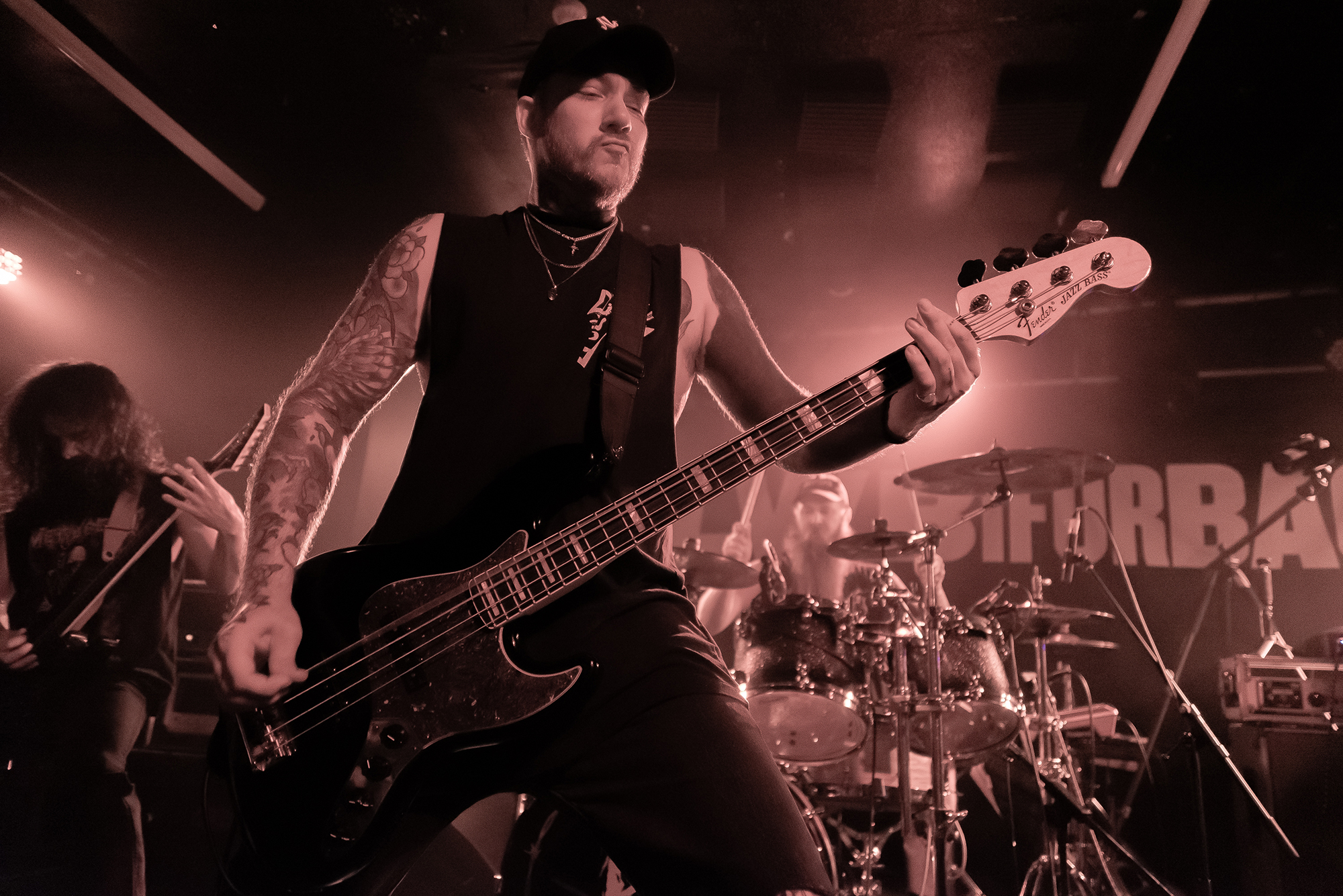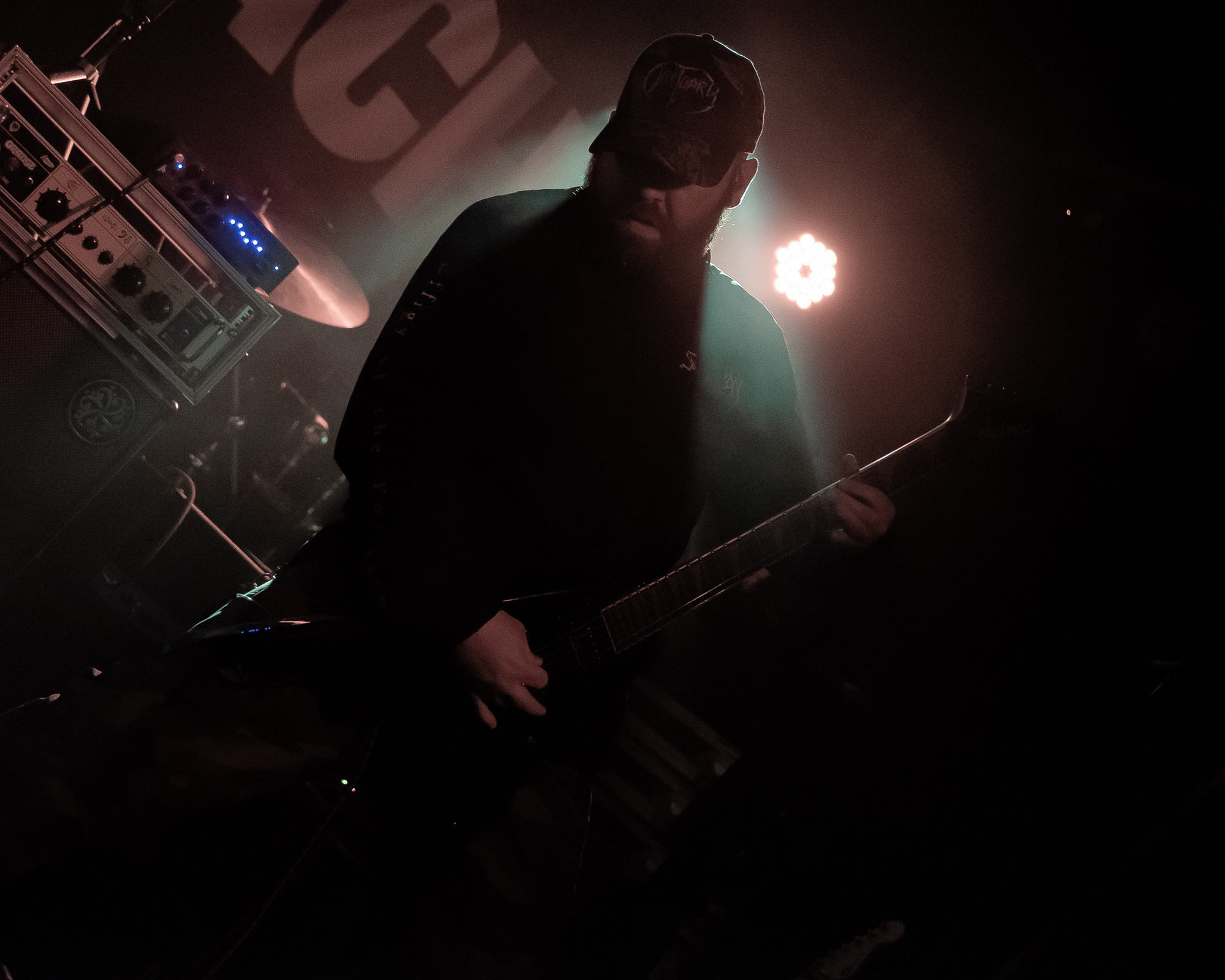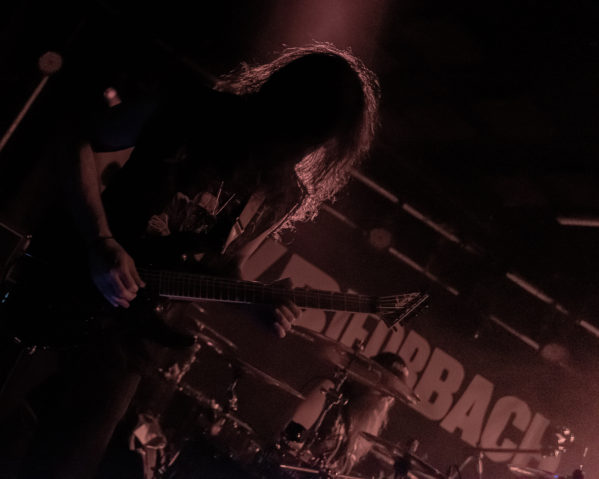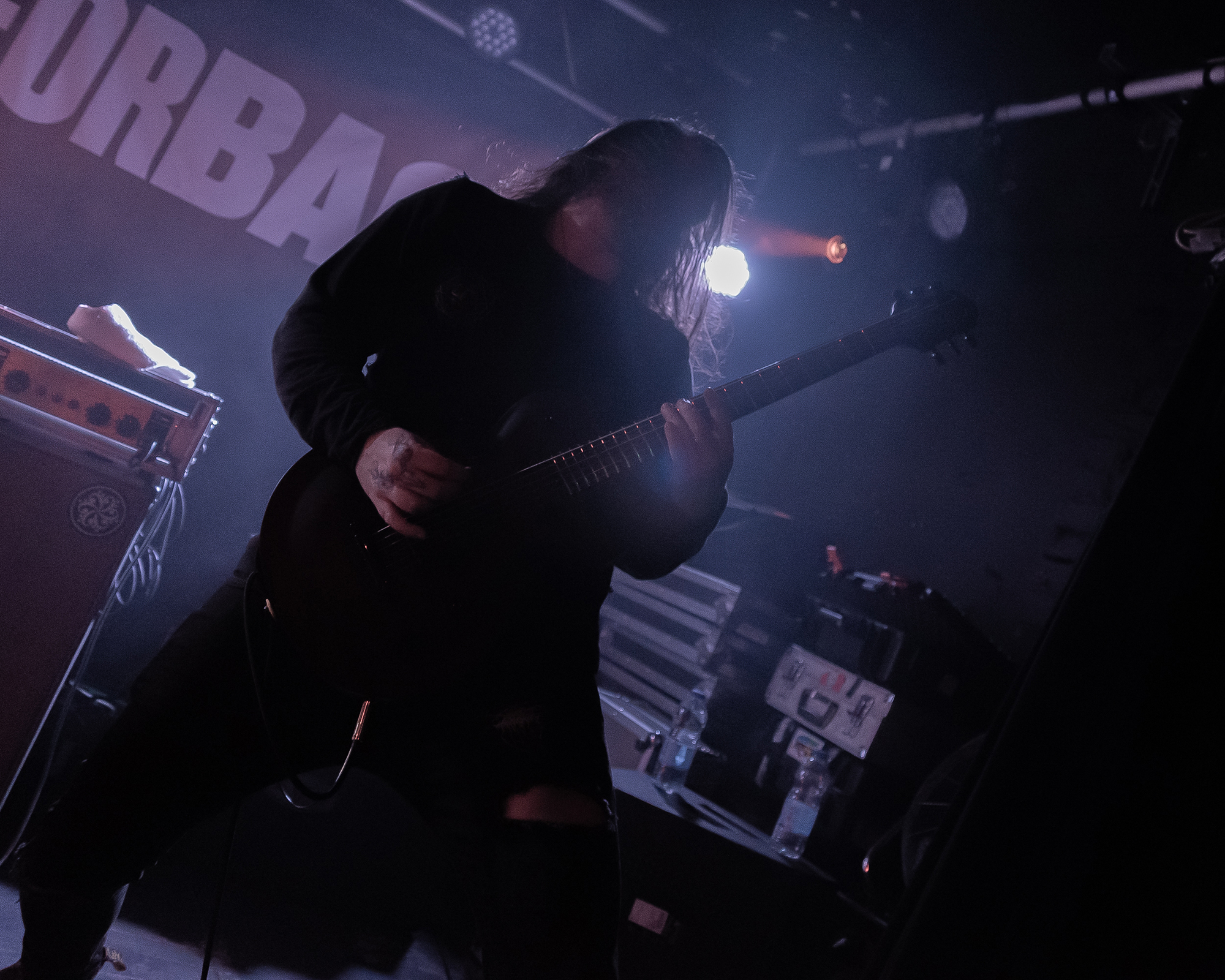 Going from the chaotic metal styling of BURNER, Celestial Sanctuary take the stage with their 90’s death metal edge. The slower pace on set opener Puddles Of You Reflect The Filth Within feels like the brakes are being slammed on in terms of song progression, as it’s a juxtaposition with the neck breaking pace of Glutted With Chunder, which wakes the crowd up a bit for a small circle pit, it does soon die down as they go back to their slower chugs, but the crowd seem uninterested for the most part, which is a shame as CELESTIAL SANCTUARY are up there shredding their souls out.