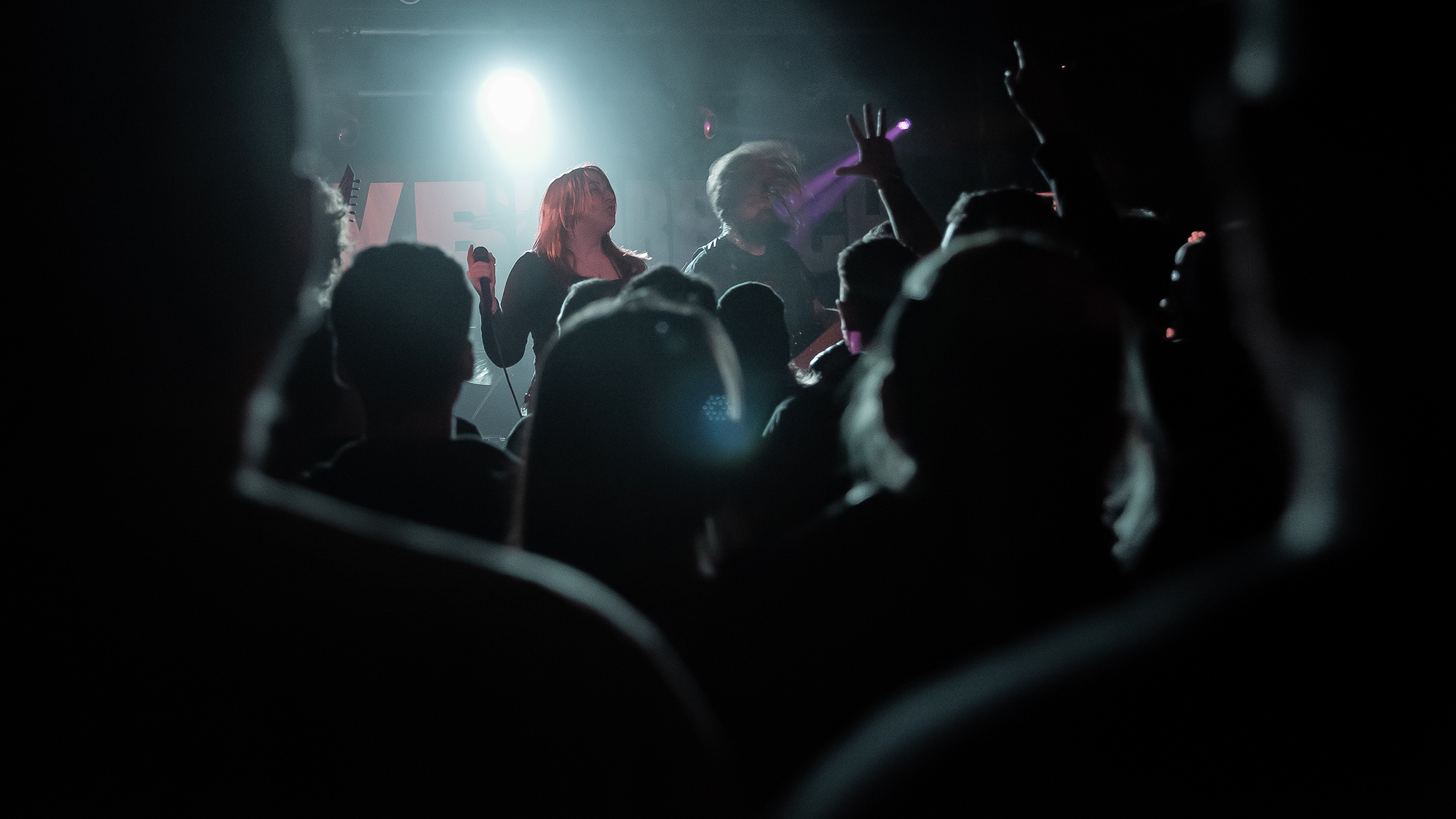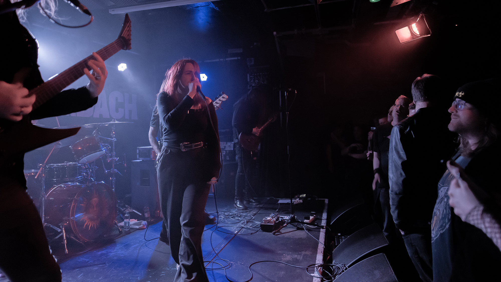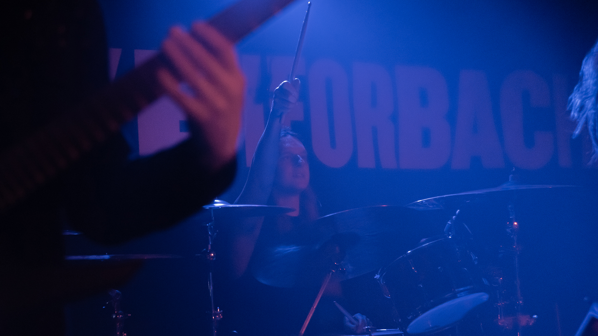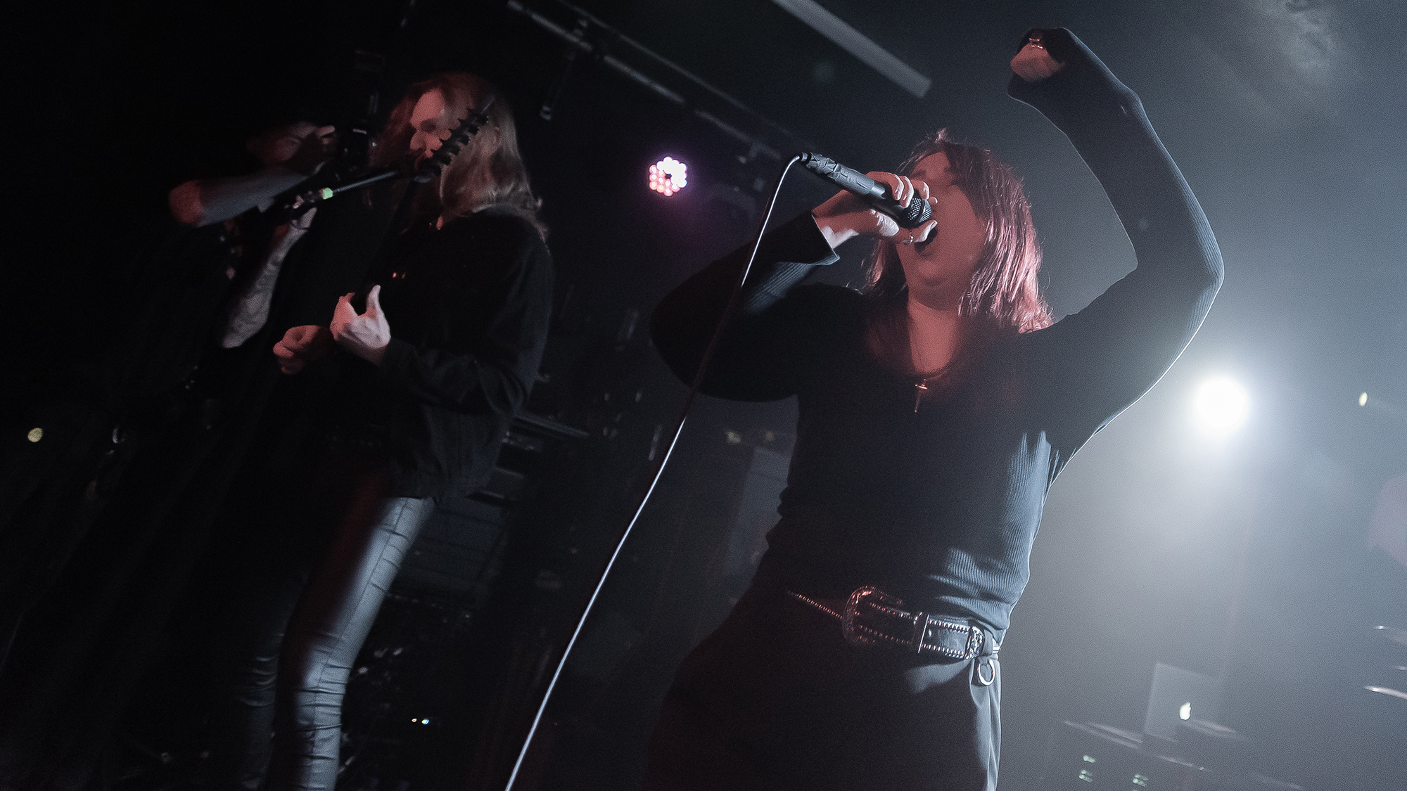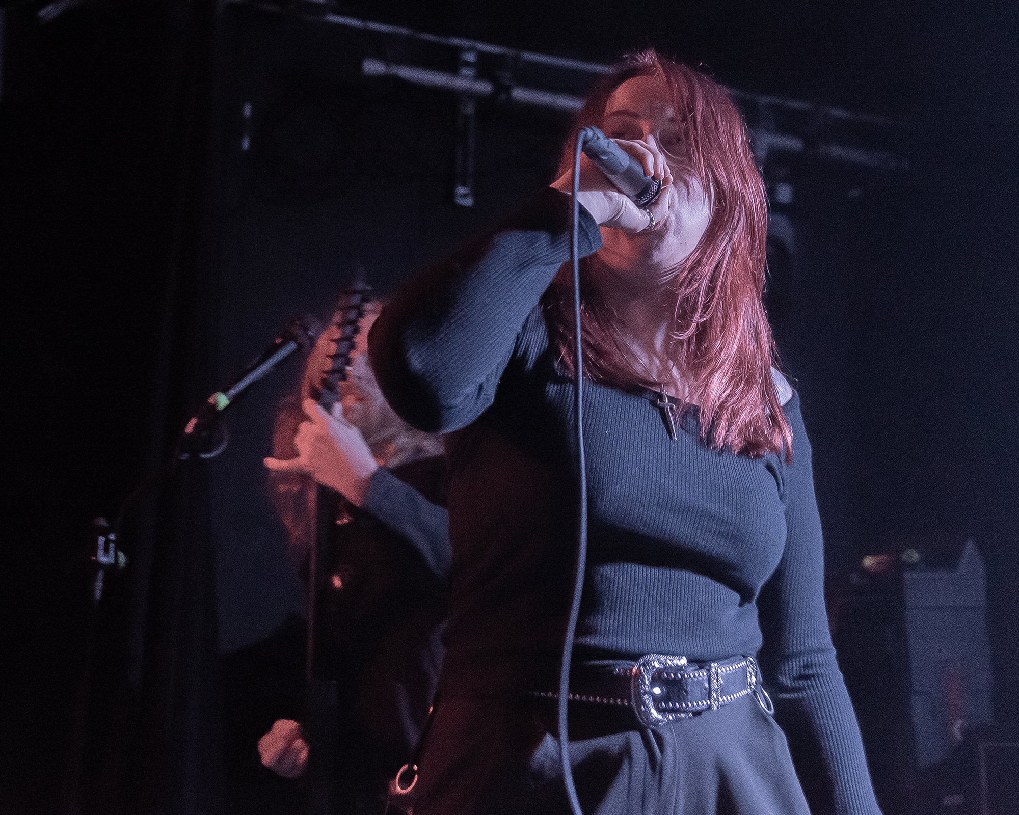 Emerging onto the stage whilst DIO’s Heaven & Hell plays, the band burst into lead single from Fallen Star, Atonement. And immediately the room erupts into chaos. The only safe space is toward the back as bodies are flailing in the pit as vocalist Justine Jones commands the crowd with her cheeky grin. “There’s the rowdy Welsh!” She chuckles before the band burst into Force Fed. And at the three song point they’ve got the crowd in their palms. Drummer Nathan Pryor however, has his hands full keeping the band in time whilst delivering a stellar performance behind the kit, never letting up for even a second. Guitarists Sammy Urwin & David Porter stand at each side of the stage as they both shred betwixt the booming bass from Casey McHale, who due to a cramped stage, is pushed toward the back but whose presence isn’t forgotten.