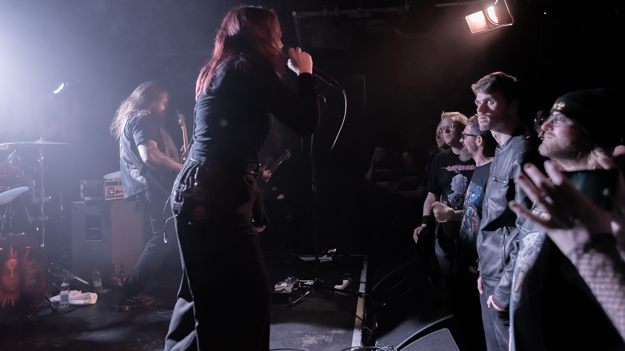 CELESTIAL SANCTUARY are great on record, but tonight it seems to be against them. The mix is muddy, which is not a fault of the band, but it makes it hard to pinpoint where one song ends and another starts as the buzz sawed guitars take charge over everything else. Unless vocalist/guitarist Thomas Cronin took time to talk to the crowd between violently shredding his throat, then it would feel like one long song. Don’t let it dilute your opinion of the band as they have some killer songs. It just seems that both the sound and crowd tonight are uninterested in playing ball.