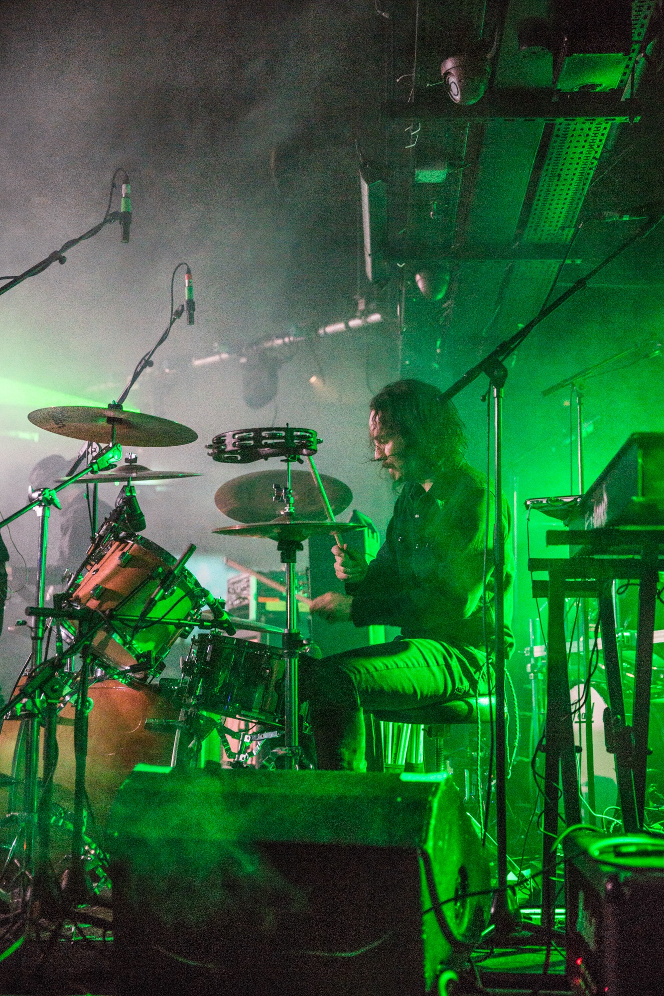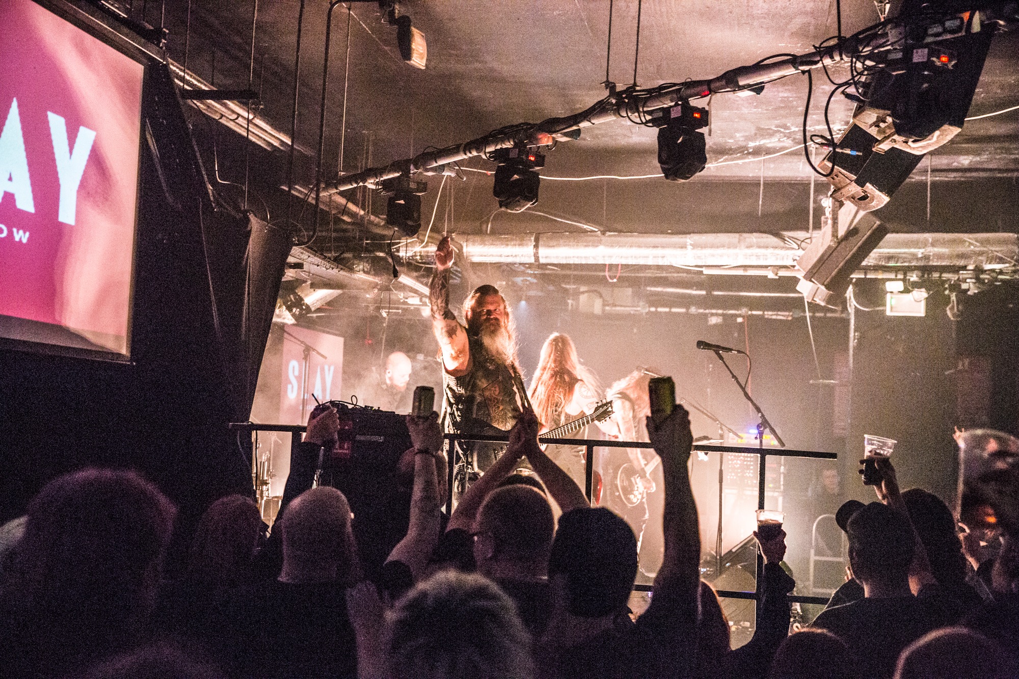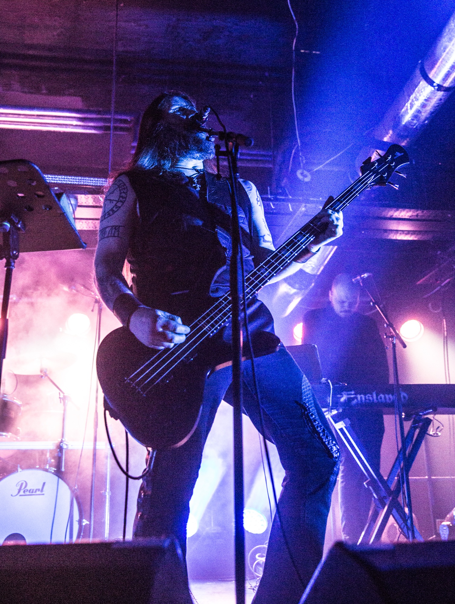 Tonight’s venue doesn’t have much in the way of space for theatrics, or even wall space for the banners of individual acts, so ENSLAVED are instead preceded by atmospheric Nordic music as the ‘fog’ (in the form of CO2) gently rolls in. As the lights dim, the band take to a Glasgow stage for the first time in almost seven years and soak in the energy of the room before the duelling harmonies of Kingdom kicks things off.