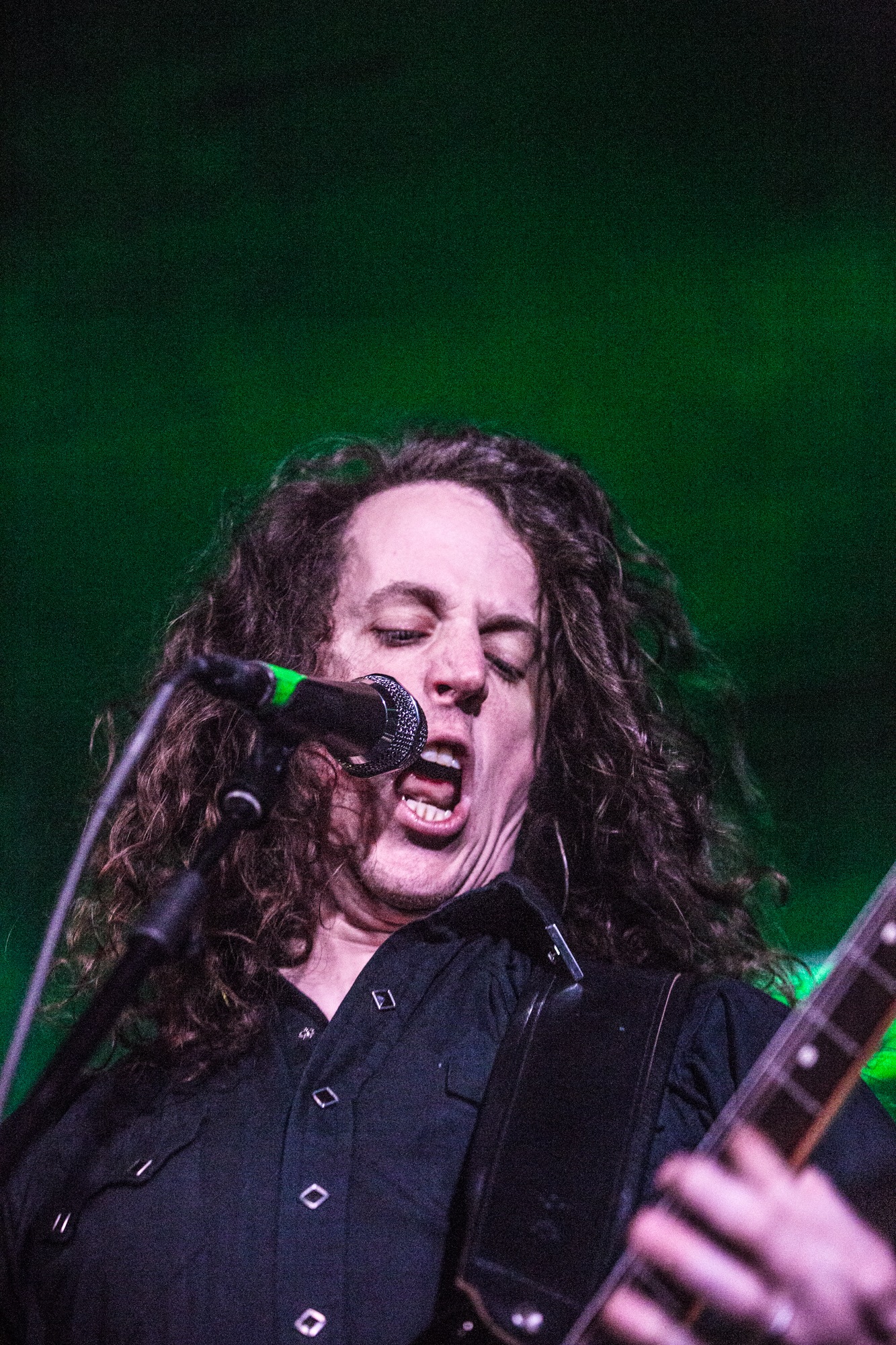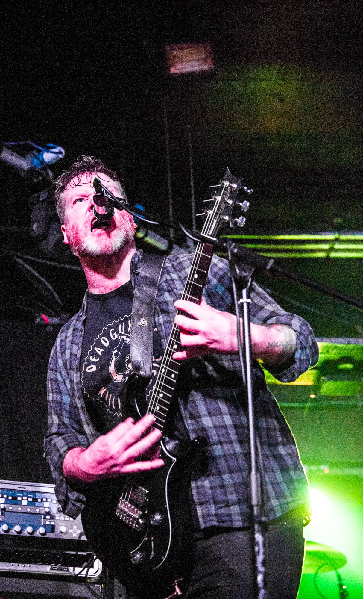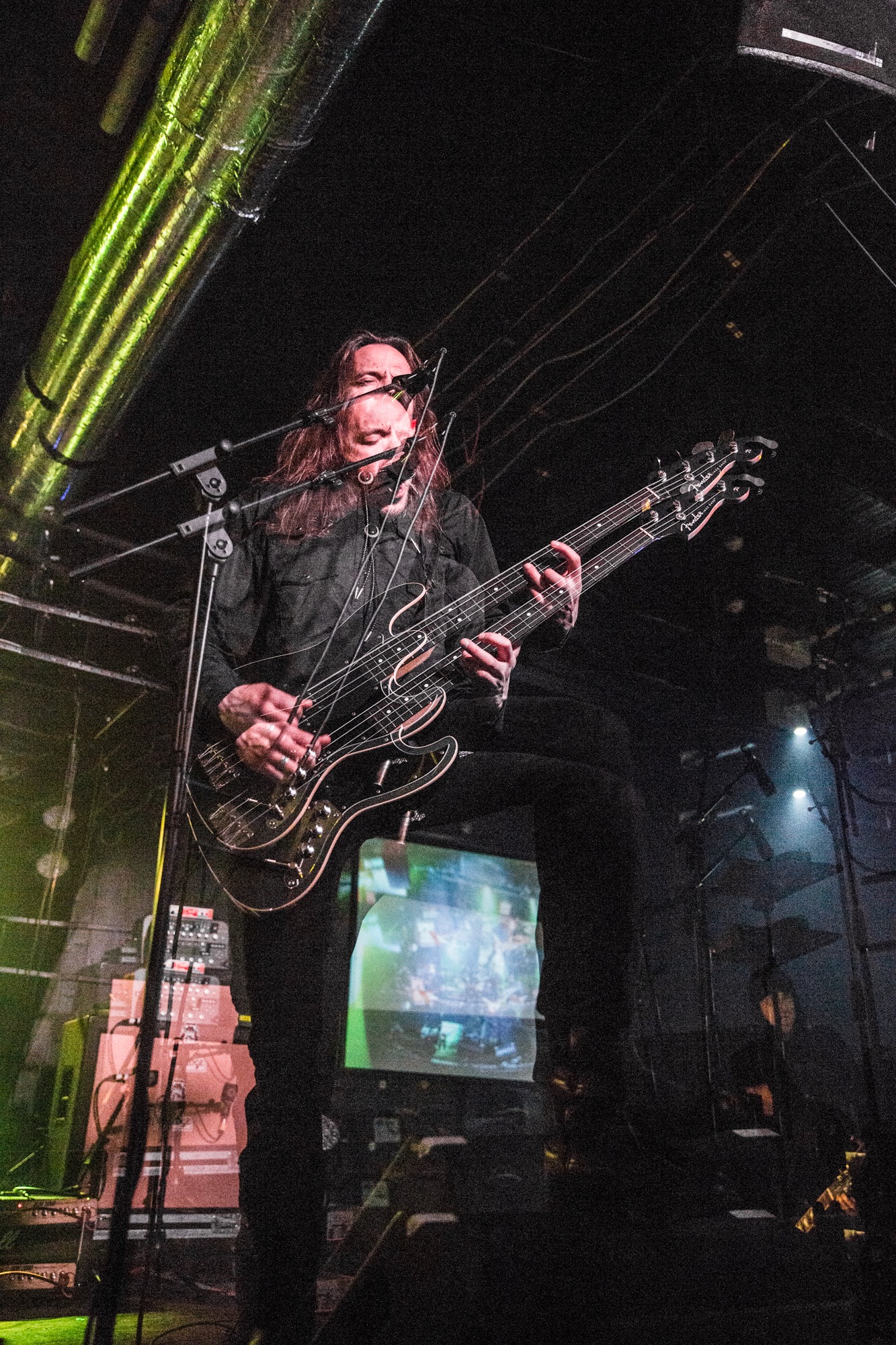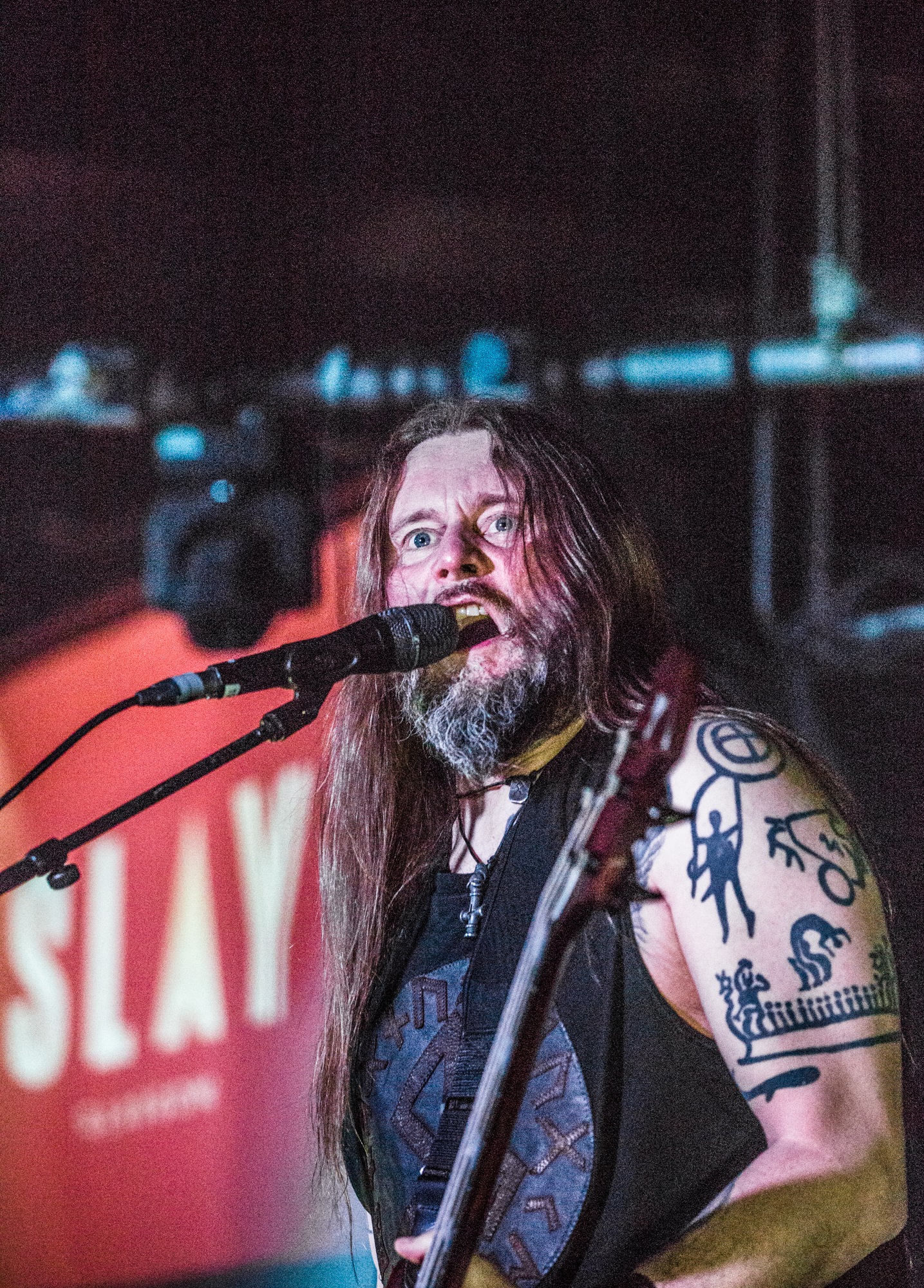 There’s a strong argument to be made that ENSLAVED are at the top of their game tonight, which isn’t an easy achievement considering the band is approaching their 35th anniversary in a couple of years. Trying to pick a setlist that covers such an expansive career is no easy task, and bassist/lead vocalist Grutle Kjellson even jokes at one point about the length of some of their material, which also impacts what they can cover in one evening. Their most recent album Heimdal is their current focus, and tonight is better for it. Their performance of the ethereally heavy Forest Dweller is transcendent, filling the halls and back corridors of Glasgow’s Slay with eclectic synths, growls, and melodic chants. The rapid black metal opening of the chaotic Congelia rattles the bones of patron and staff alike, while the title track Heimdal stomps and grooves through its various phases.