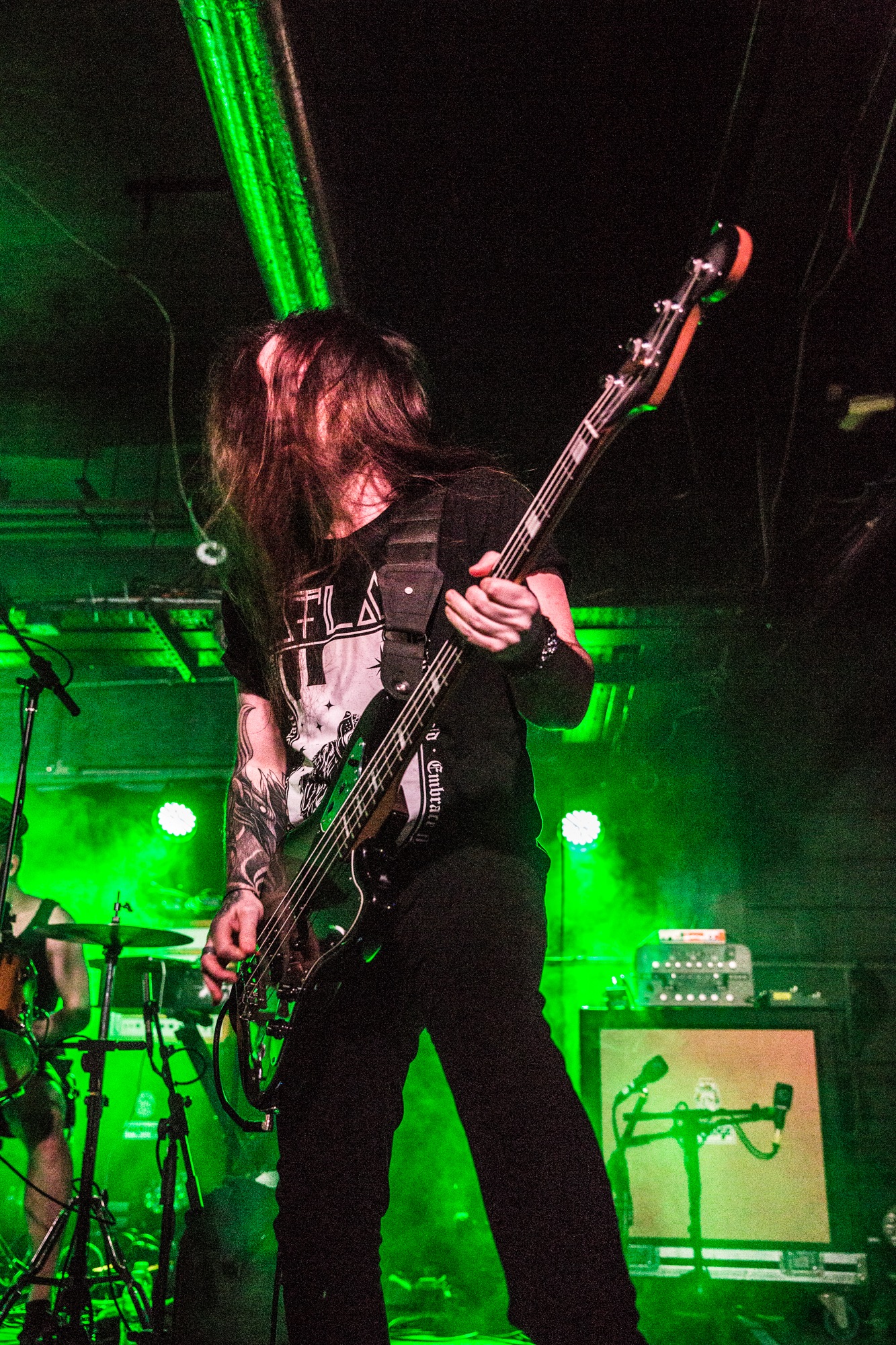Their incorporation of post-hardcore and post-rock is perfect for club venues, and tonight is no exception. SVALBARD have become known for tackling topics like depression and the challenges of modern life on tracks like Lights Out. While this isn’t the most obvious fit beside their progressive Viking metal tour mates, their presence on this small stage is undeniable, and the heart that they are able to pour into their tracks in a live environment is captivating.