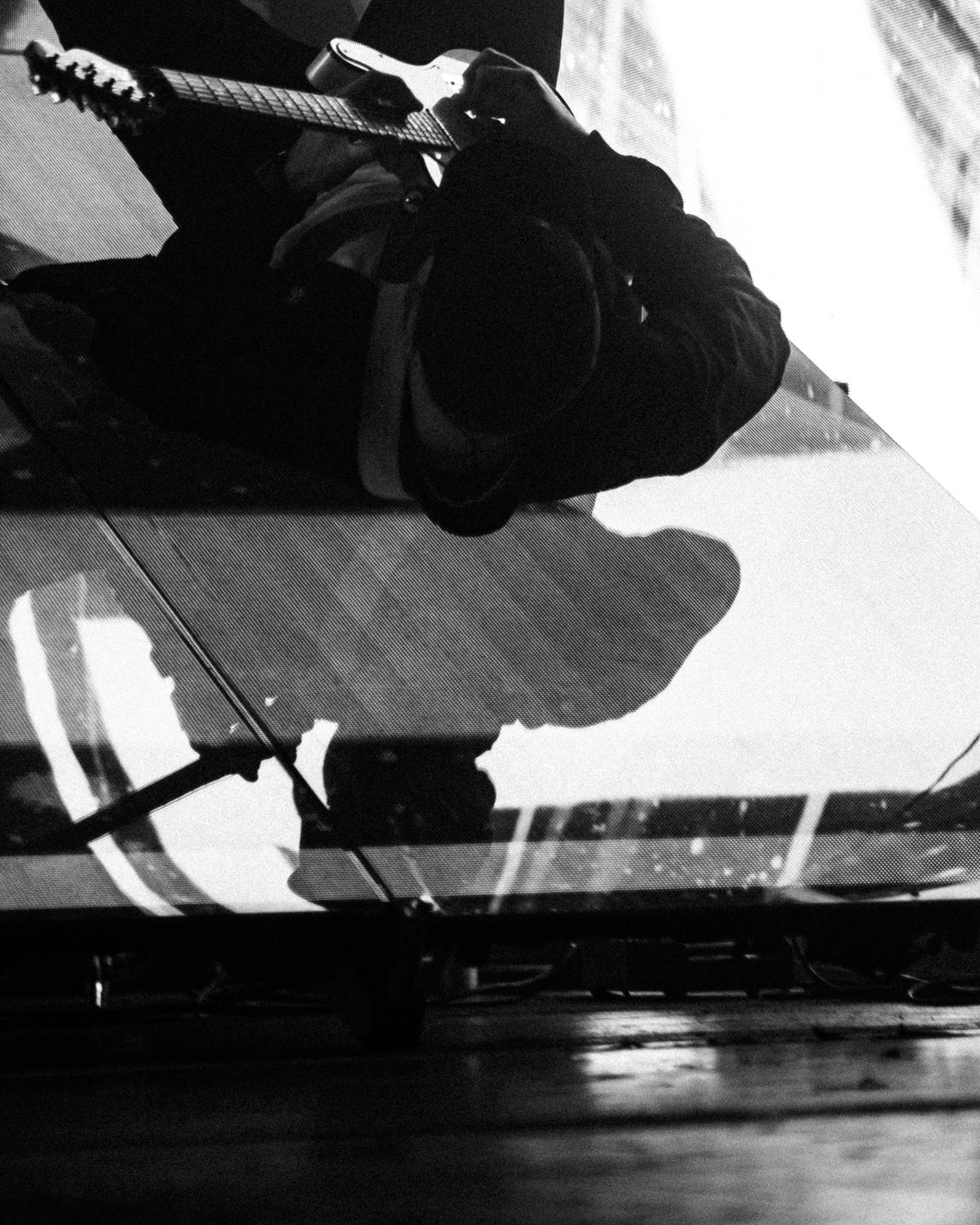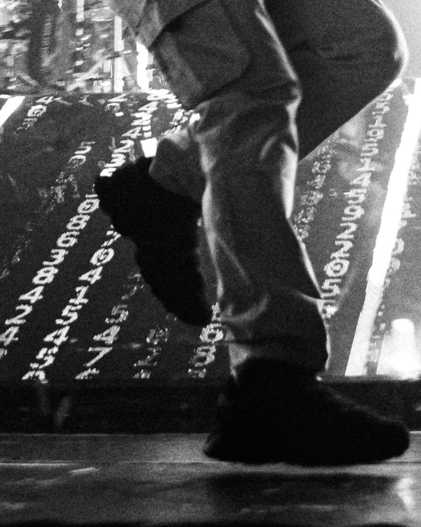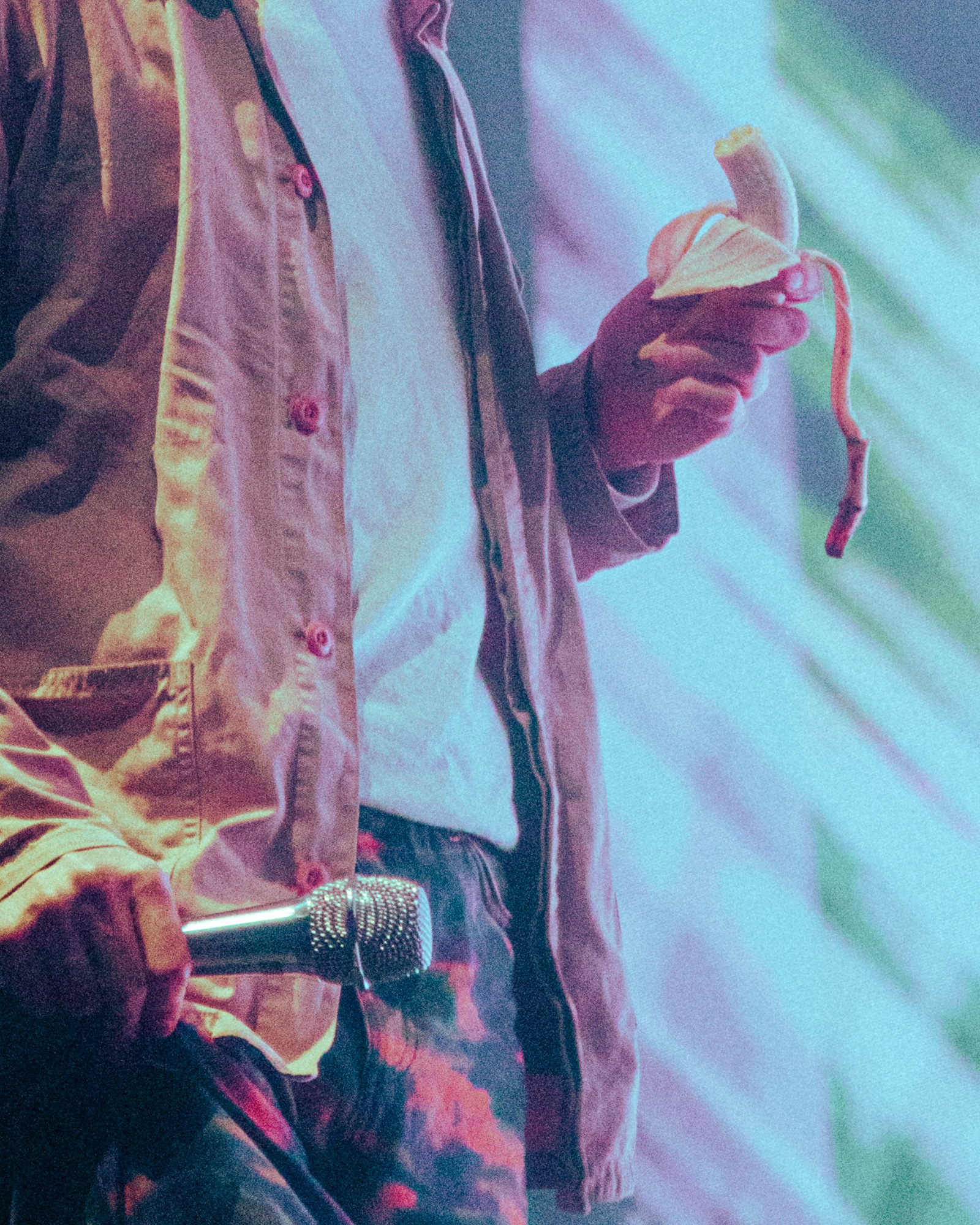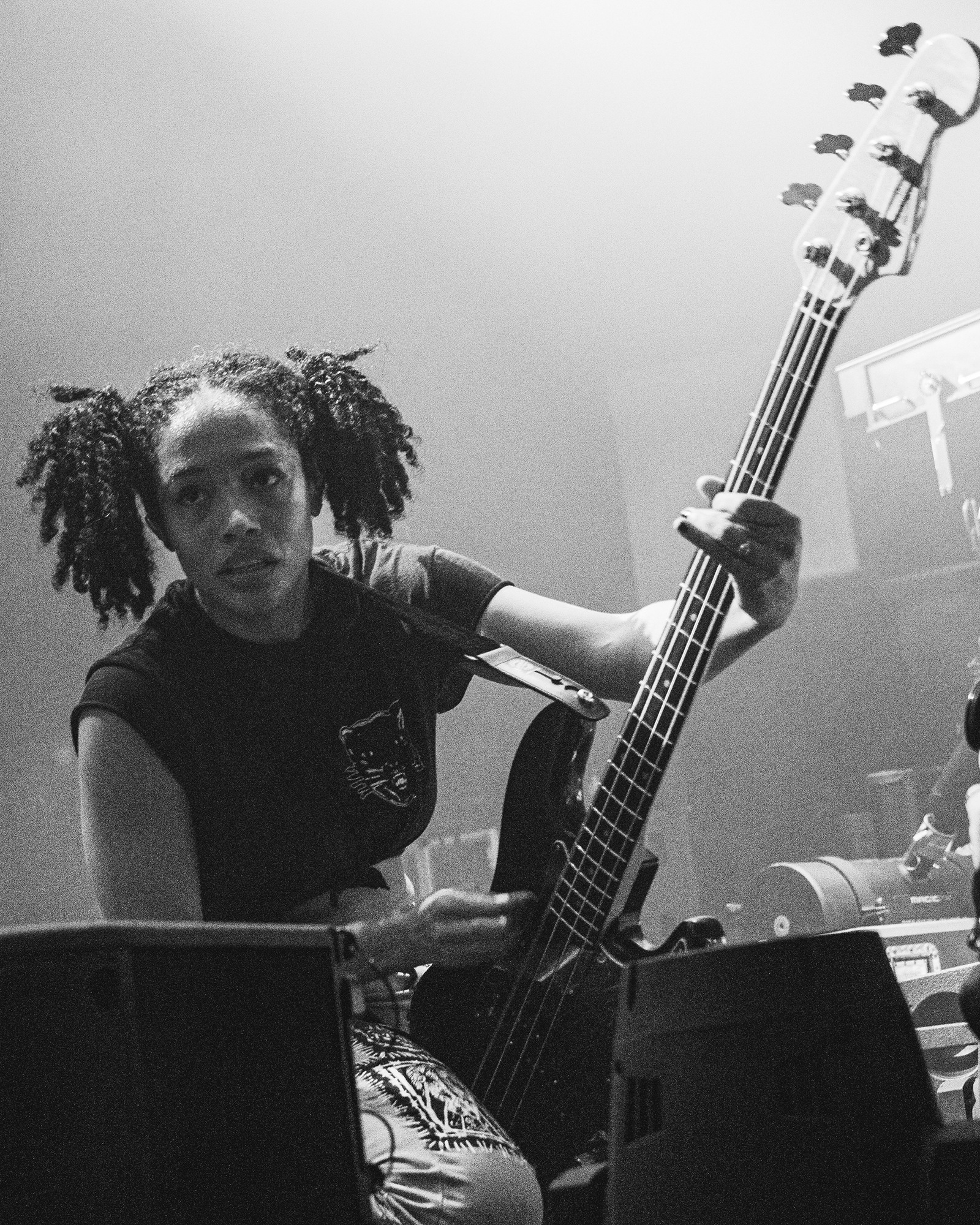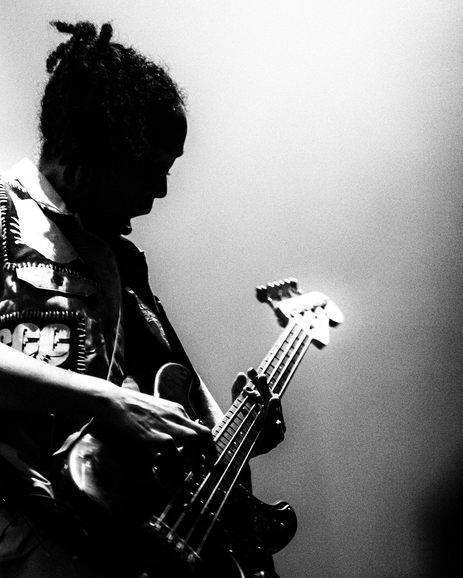 This is displayed no better than guitarist Rory Clewlow sliding down the ramp screen from the drum riser – they remain joyous and juvenile while also structured. The return of FEVER 333’s Jason Aalon Butler for colab track Losing My Grip escalates the energy in the room even further as he bundles about the stage like a fly bouncing off the edges in unpredictable chaos. Brief release is sought as Reynolds once again mounts the high-rise screen pillar for mellow renditions of T.I.N.A, Juggernauts and Gap In The Fence before the band return to complete the dance ending of the latter.
