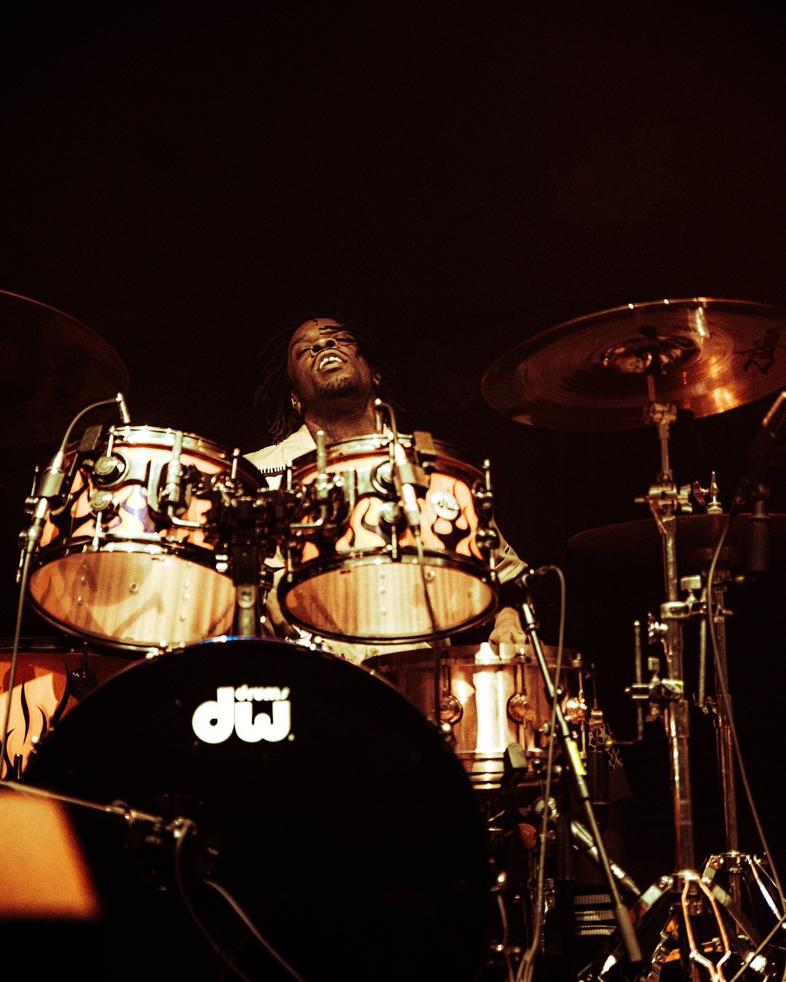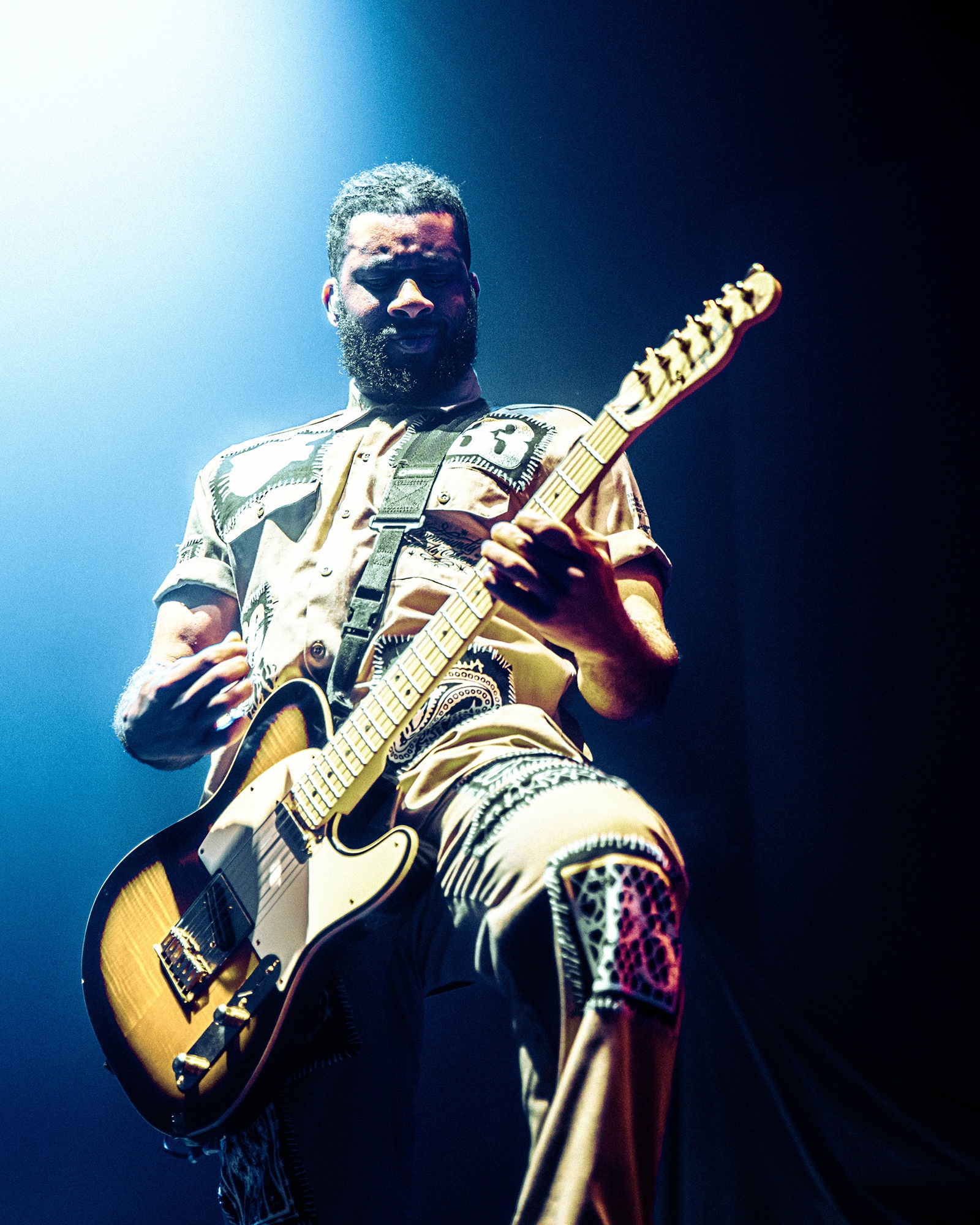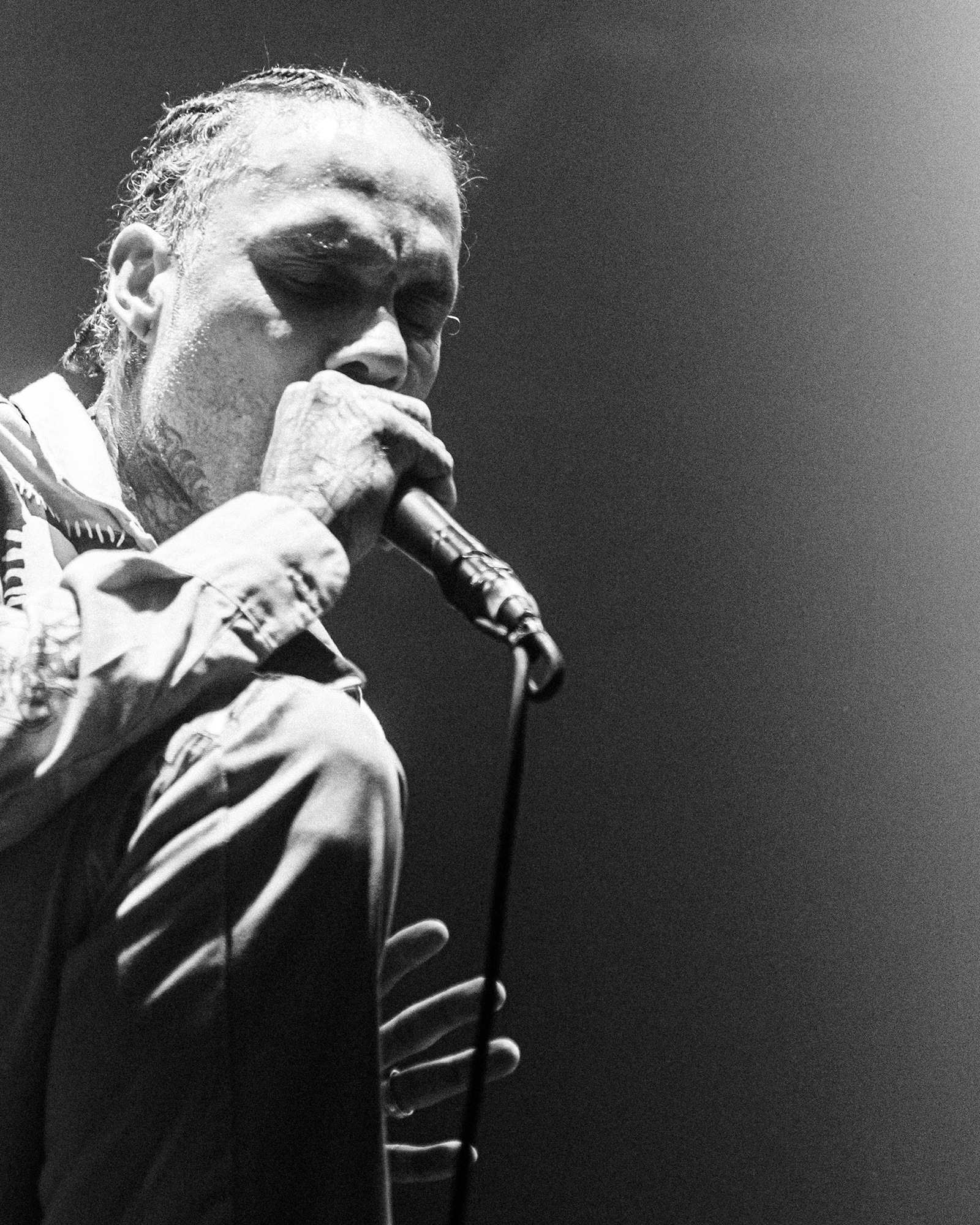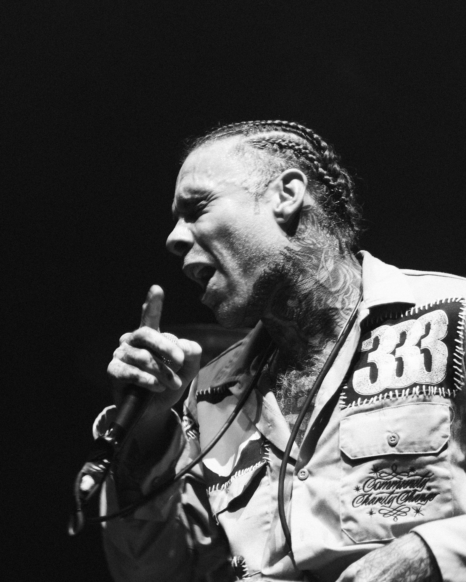 Middle of the bill is California justice punks FEVER 333 here to punch you in the gut with a good time. The four-piece pack catchy hooks, political rap and nuclear hardcore energy into a set that is electrifying to witness, as ever energetic front man Jason Aalon Butler’s now synonymous stage antics are in fine form. Energy is the word that summarises this set, whether it be bassist April Kae boogying from the off, Butler’s uninhibited barbarity or the raucous response from the resulting mosh pits and crowd surfers, everyone in the room is notably up for it tonight. The group use their time to speak up for Palestine, shout out to all the people of colour in the audience and make sure the space is safe for everyone, Butler even giving a female photographer the chance to shoot their full set. Their purpose clear – standing against inequality and having a blast doing it. Butler is an engorging performer and you would be misguided in ever looking away, whether it’s pouring water on the floor to extend his knee slide in Bite Back, throwing out the DISTURBED “Ooh wah-ah-ah-ah” in the breakdown of $wing, or the climactic stacking of three monitors centre stage to climb and leap from in set ender Hunting Season, it is unanimous in the room that FEVER 333 were not a band to miss.