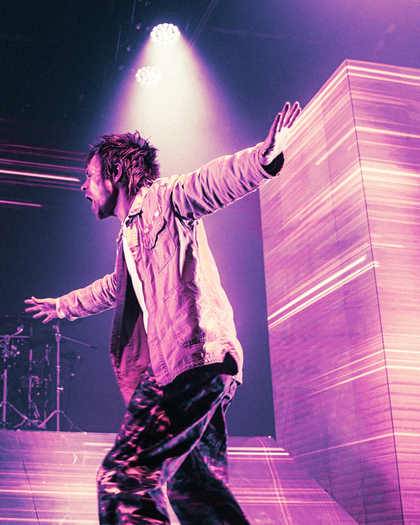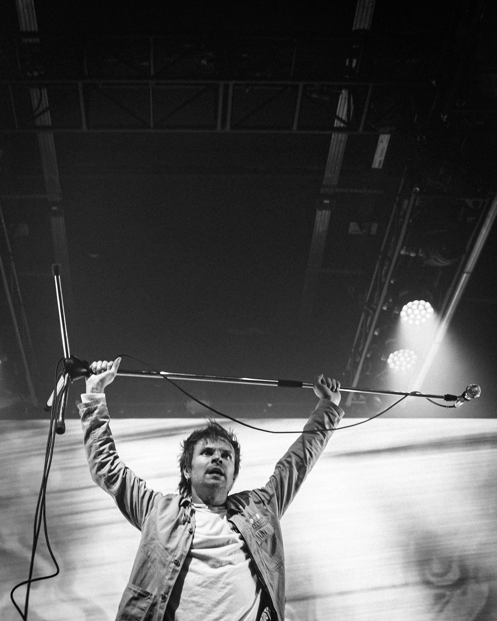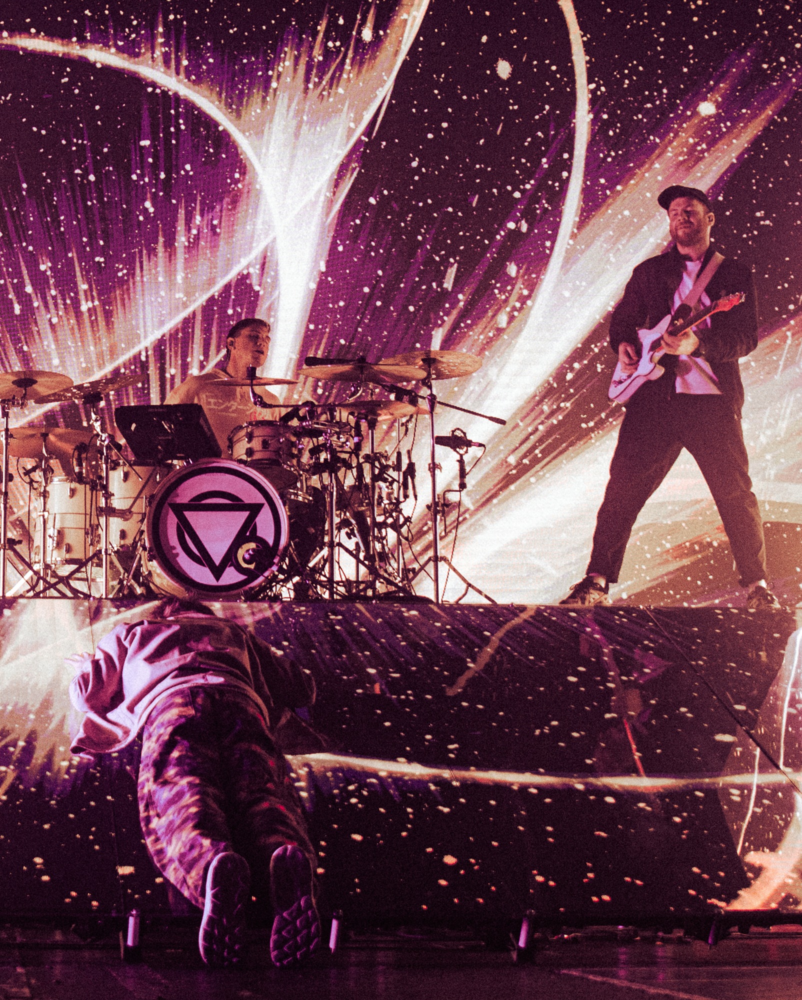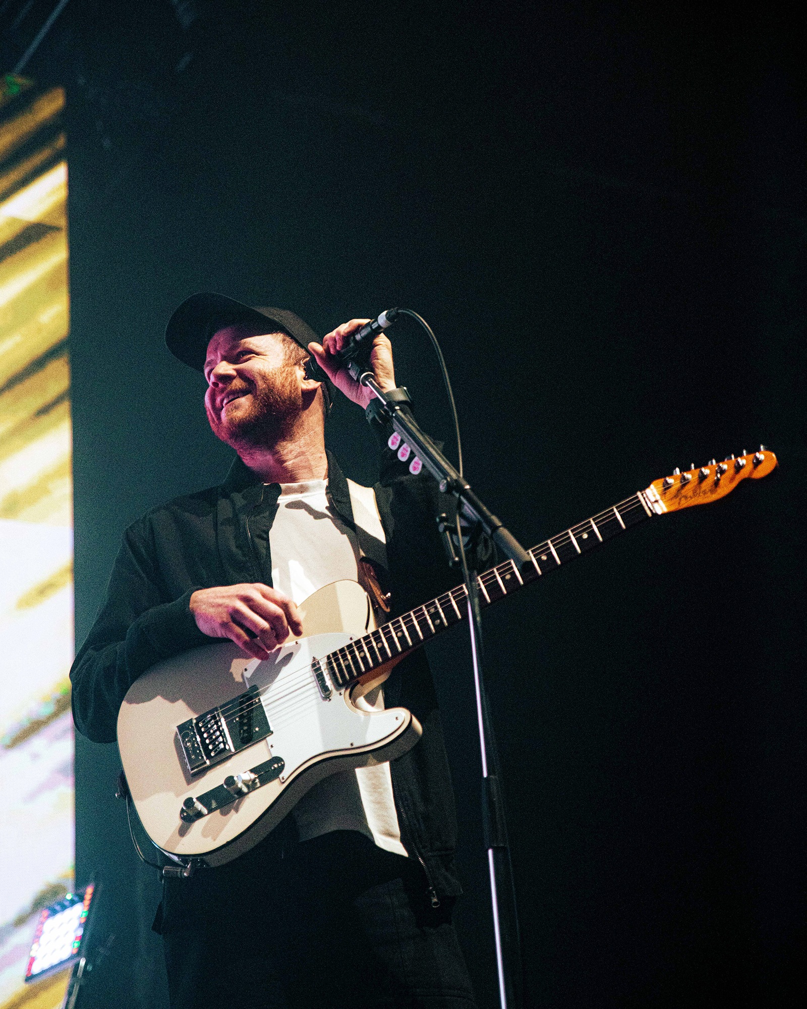 Few groups approach live music like the St Albans four piece, with constant switches and remixes of their own tracks to keep you on your toes. Following fan favourite Anaesthetist, Reynolds queries “Shall we test this sound system out?” before dropping into a filthy dubstep remix where we see the lasers for the first time in tandem with the choreographed lights and screens, a sensory onslaught that encases your whole body. The drama they have packaged into this masterclass is encapsulating, encasing the stage in beams of light acting as prison bars for Reynolds to rupture in Jailbreak, falling into a pool of water from the top of the towering screens before It Hurts, or a museum-set tour of all of their albums, we are taken on a journey tonight through every album, every emotion all encompassed by a whole lot of joy.