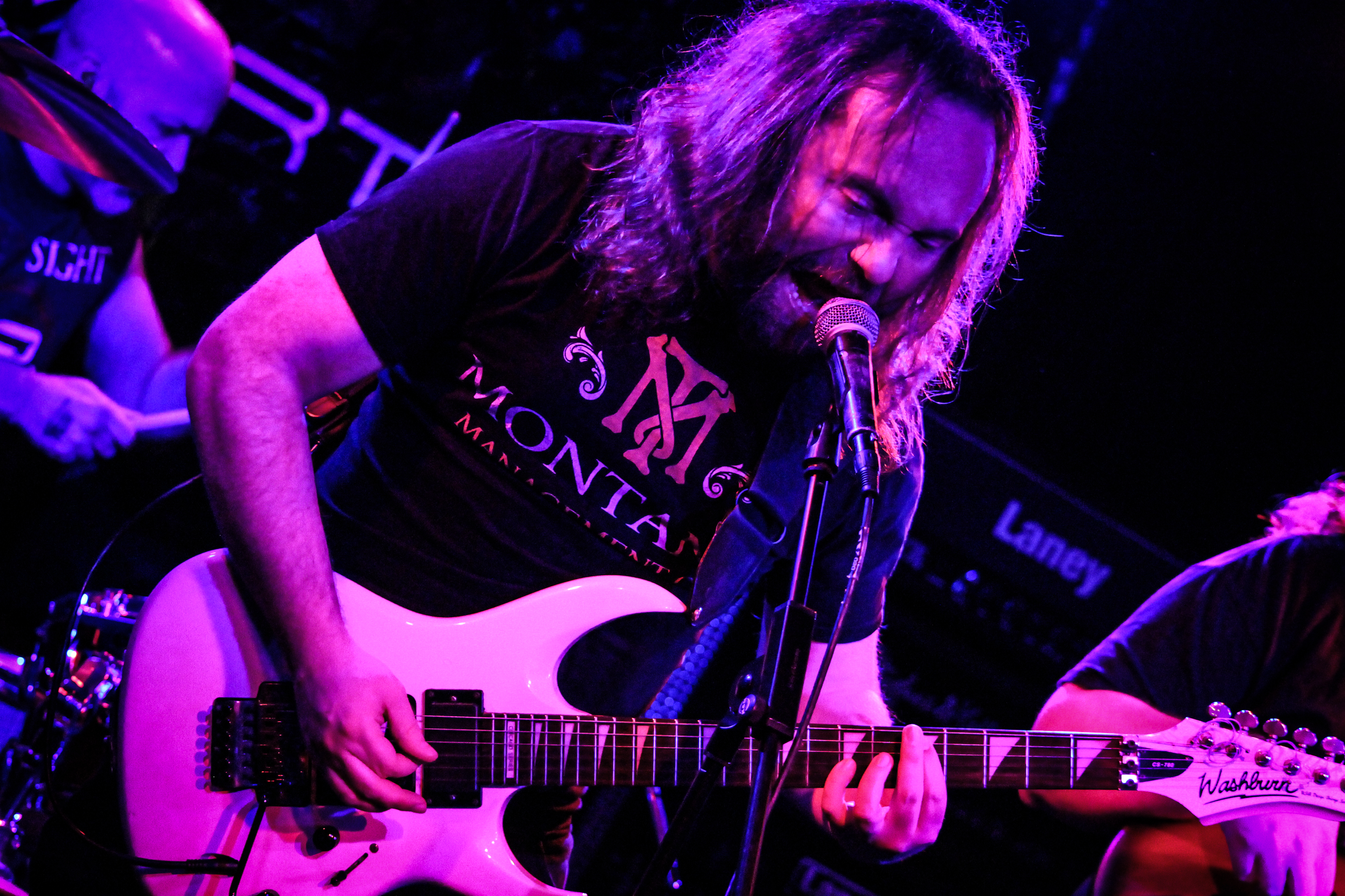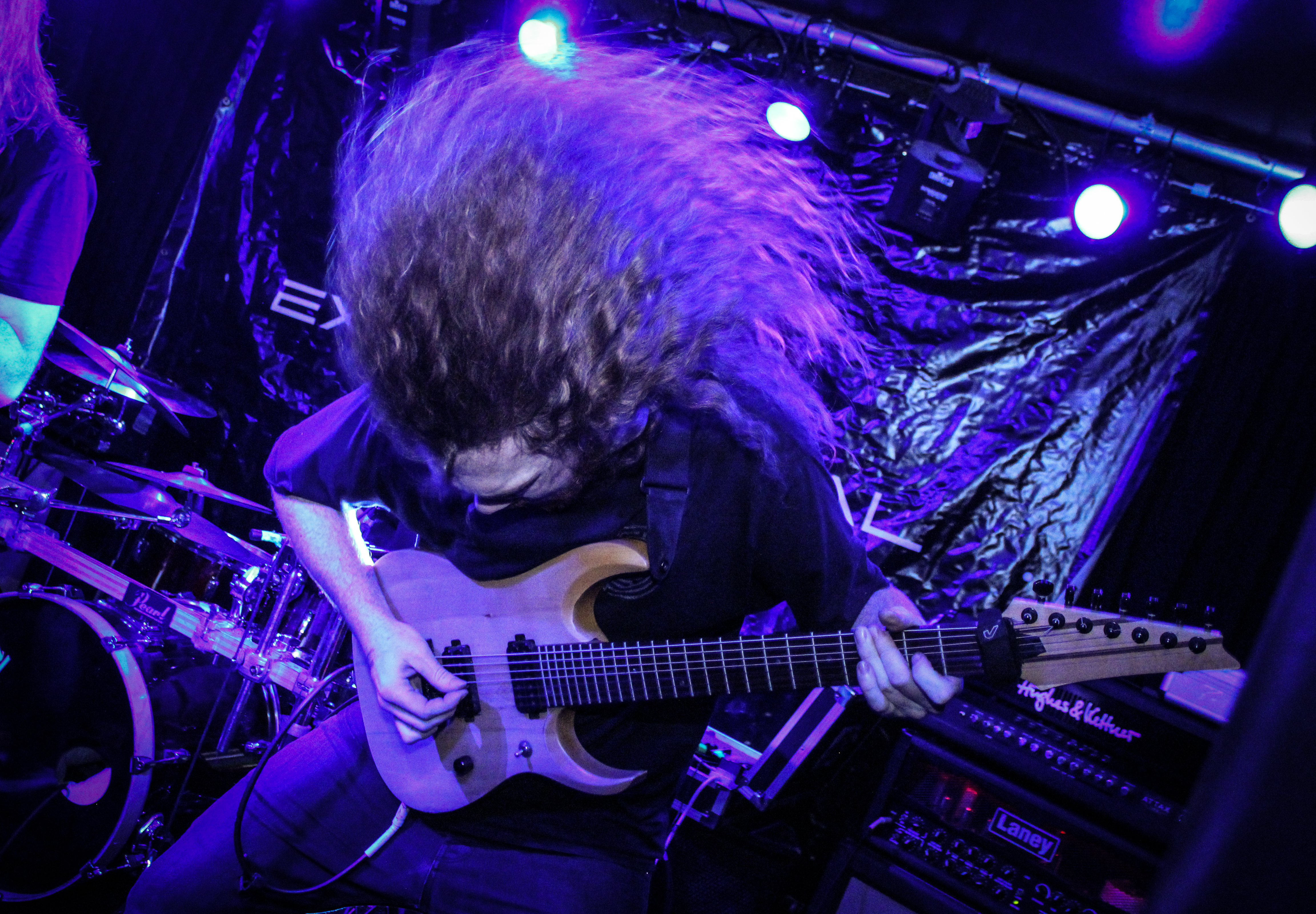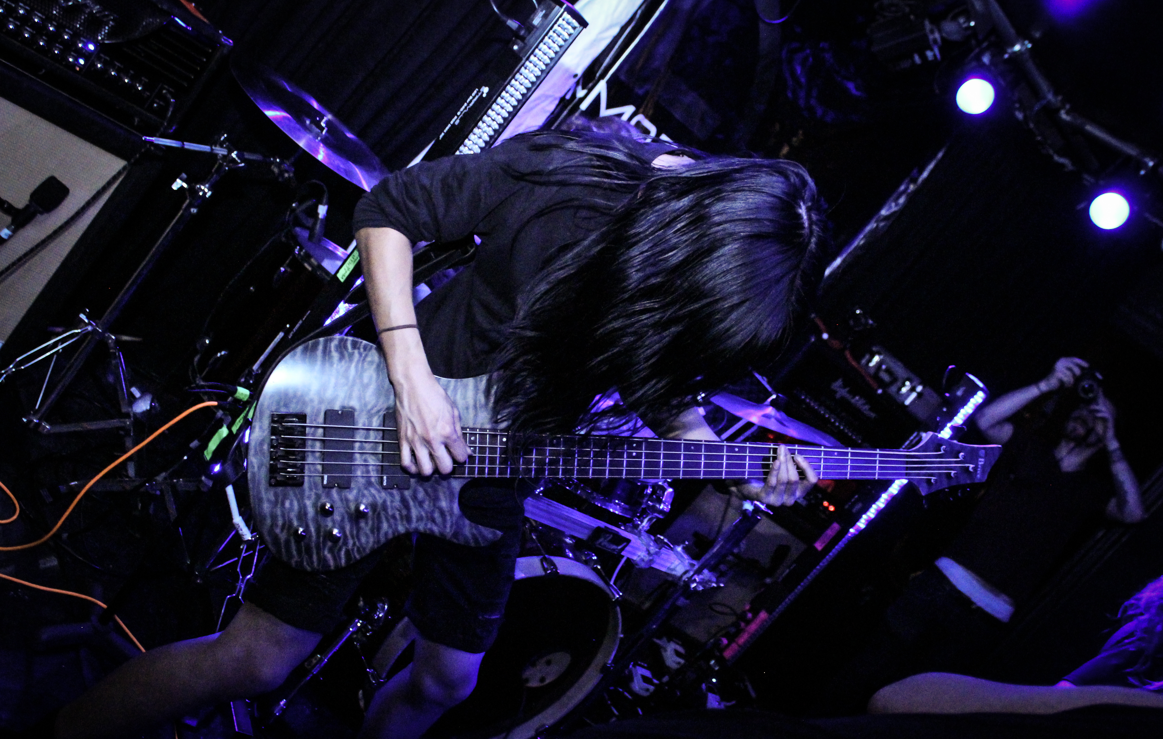 With their undeniable gift of song-writing clarity and an effortless ability to construct sonic soundscapes, EXIST IMMORTAL are at their soul stirring best in a live capacity. It is therefore an absolute travesty that the quintet fall foul of the continuing sound problems, and it means the hypnotising electronica at the atmospheric core of their sound loses its undulating power. What EXIST IMMORTAL do have however, is a steadfast refusal to be defeated and vocal powerhouse Meyrick de la Fuente stood defiantly at the helm. His searing cleans on tracks like the beautifully belligerent Follow Alone are nothing short of astounding and legitimately have the emotional propensity to reduce the most stoic of onlookers to tears. The polyrhythmic grooves are omnipresent as are the crunching riffs and melodic heft that bleeds through during the instrumental interludes. The heaviest moment of the headliner’s set undoubtedly comes in the form of axeman Kurt Valencia windmilling so fiercely that he cracks his eye socket on someone else’s skull – now that’s what Distorted Sound calls taking it to performance levels of brutish proportions.