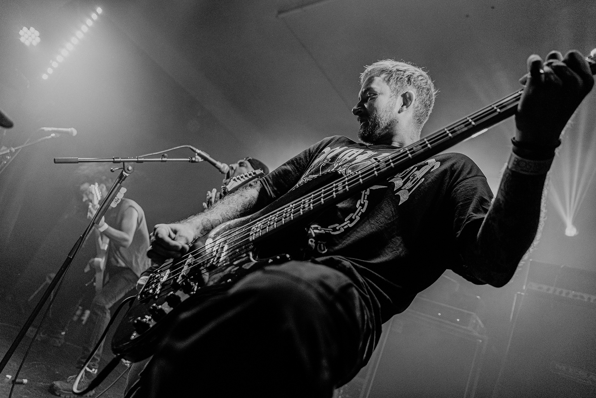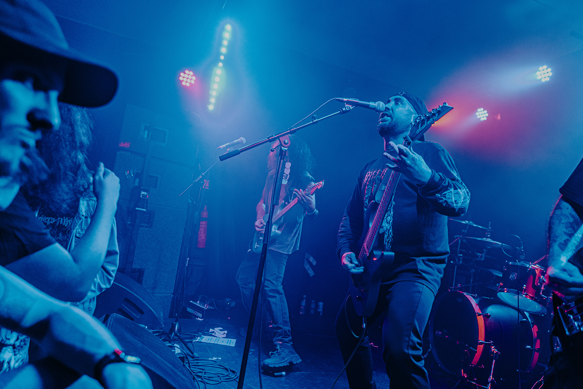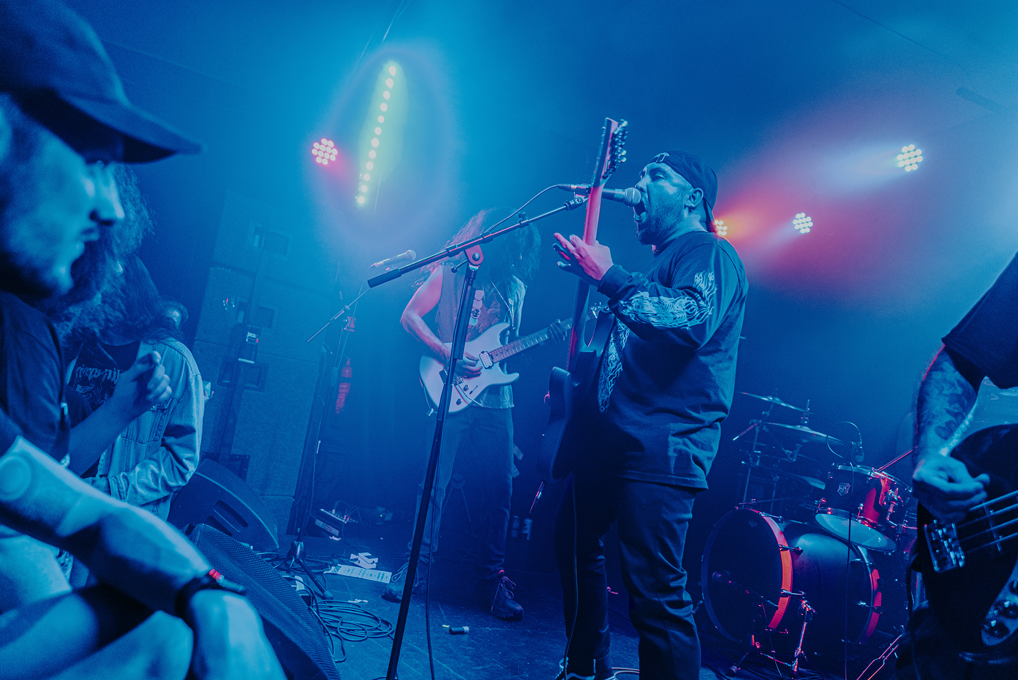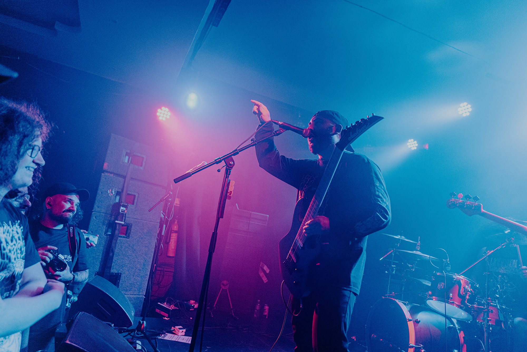 The presence of WALLOWING’s Church Road labelmates CELESTIAL SANCTUARY on this bill feels wholly inevitable. The Cambridge four-piece have supported just about every big death metal band that’s come to town in the last two years, and they’re a well-oiled machine at this point. “Are you ready for some death metal?” asks vocalist Tom Cronin as the band take to the stage – of course – to TENPOLE TUDOR’s Swords Of A Thousand Men. He gets an immediate answer as they kick off with Rid The Gormless, the opener of their 2021 debut full-length received ravenously with circle pitting, two-stepping and even a wall of death.