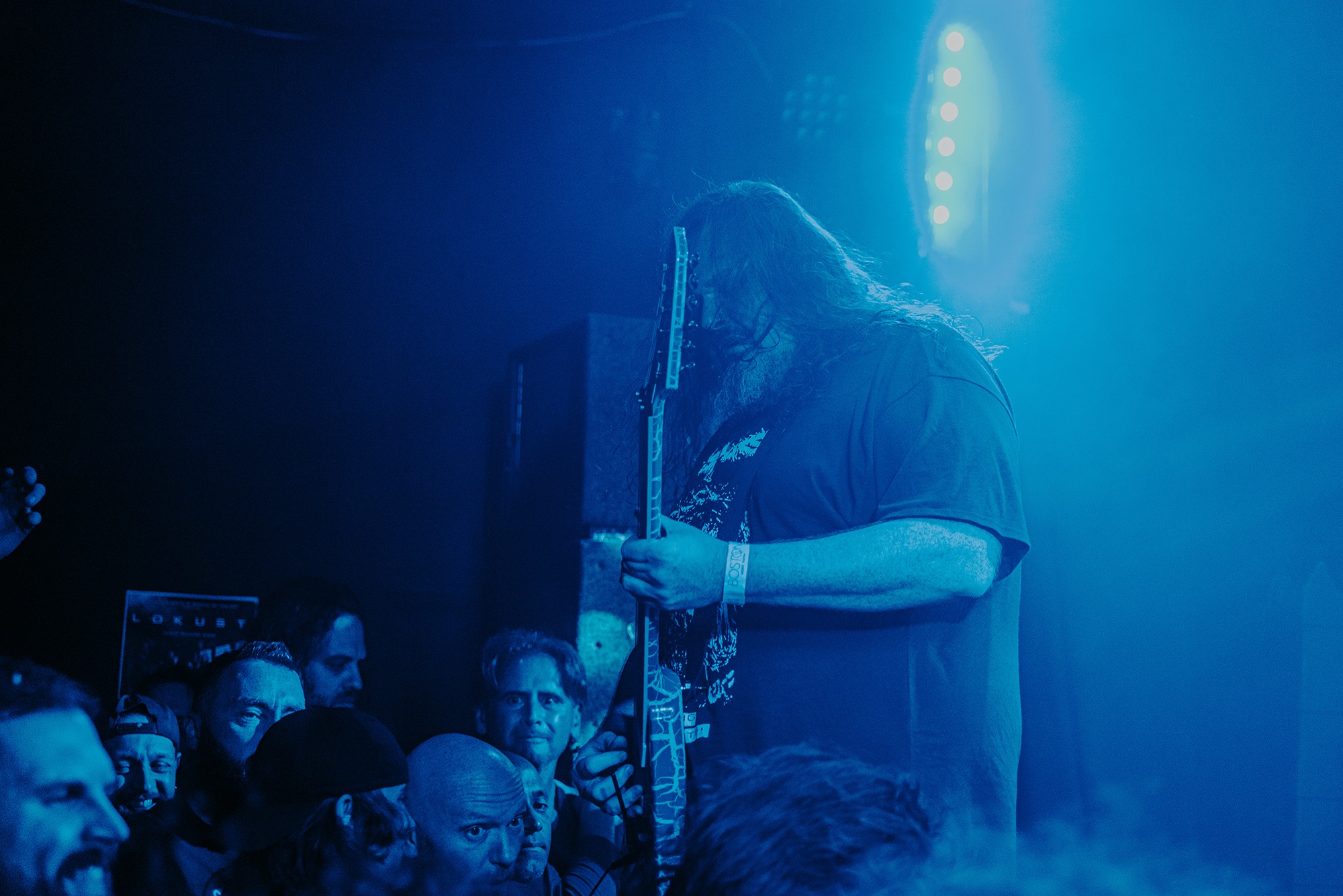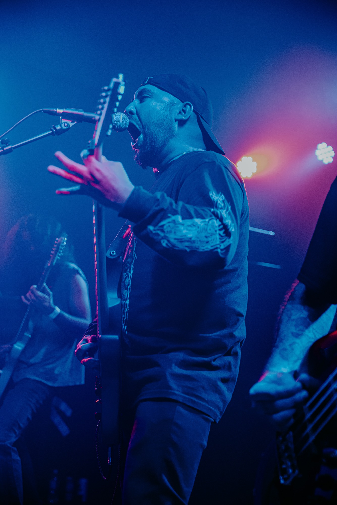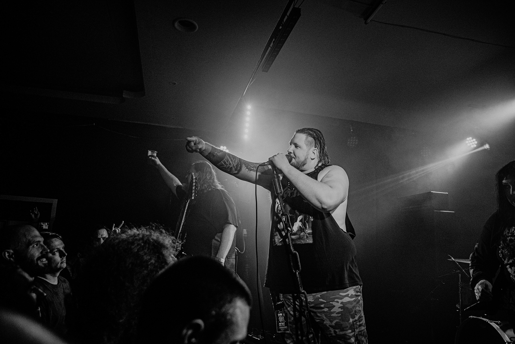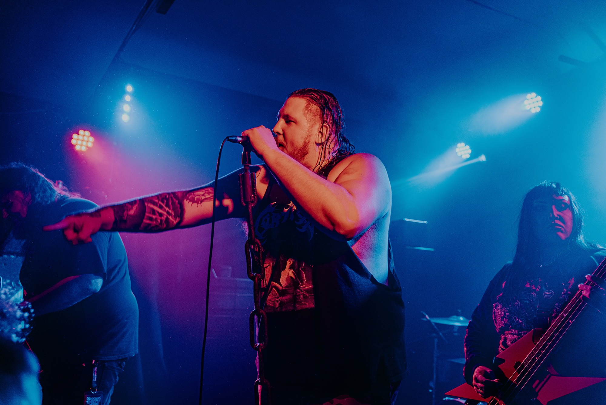 Glacial Domination may be the new one, but FROZEN SOUL have only ever dealt in absolute crushers and they prove it by opening with Encased In Ice which first appeared on their 2019 debut demo. Like a lot of the best death metal bands around at the moment, the Texans have at least a few roots in hardcore, which becomes immediately apparent as vocalist Chad Green’s demands for stage divers are swiftly met. Much like CELESTIAL SANCTUARY, the band have a good range of approaches nailed down, but it really is their knack for groove that sets them apart most of all. Whether it’s an older cut like Beat To Dust, or a newer one like Morbid Effigy, they deliver with all the might of a swinging battering ram, reducing what little is left of the cartilage in the audience’s necks to a fine powder.