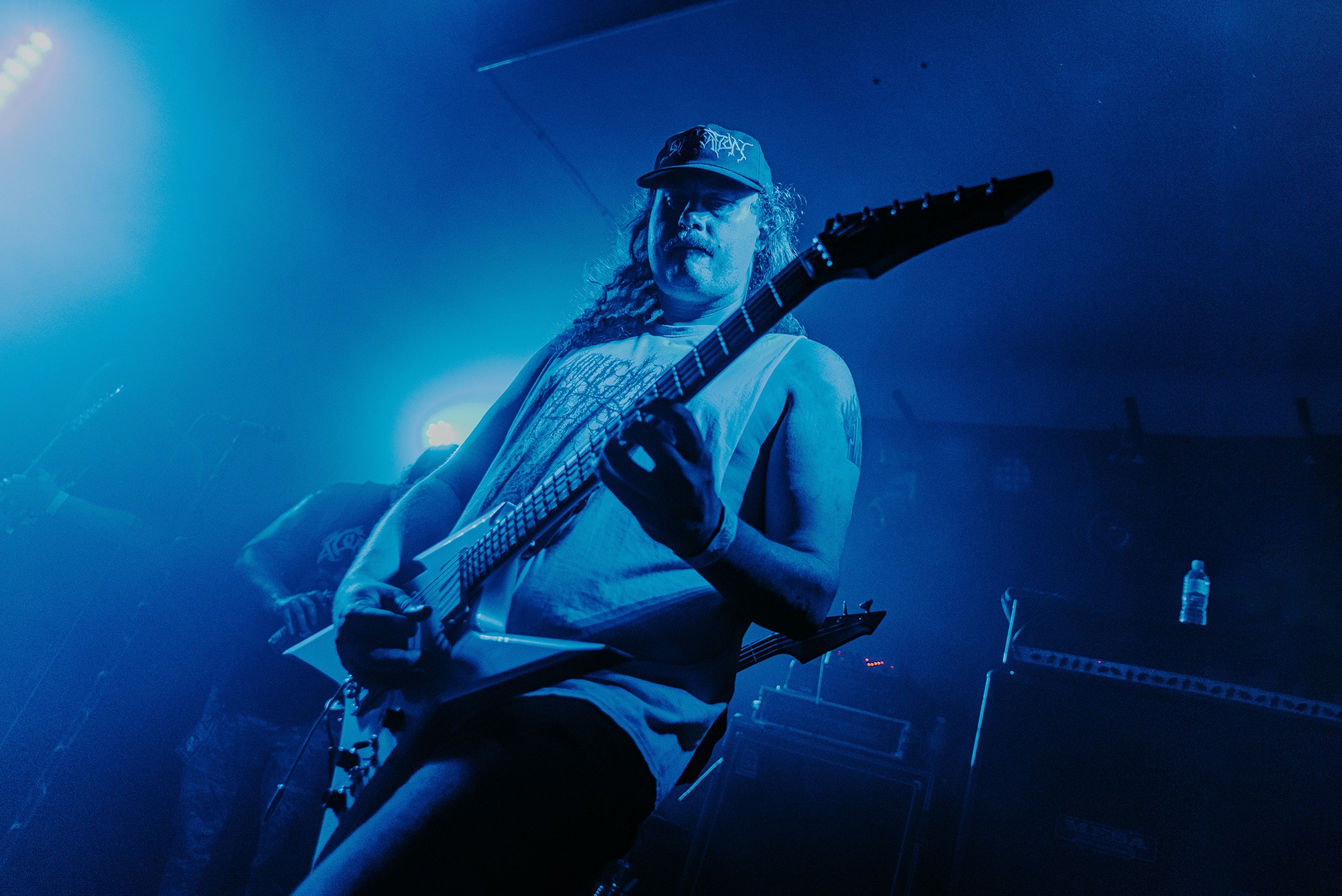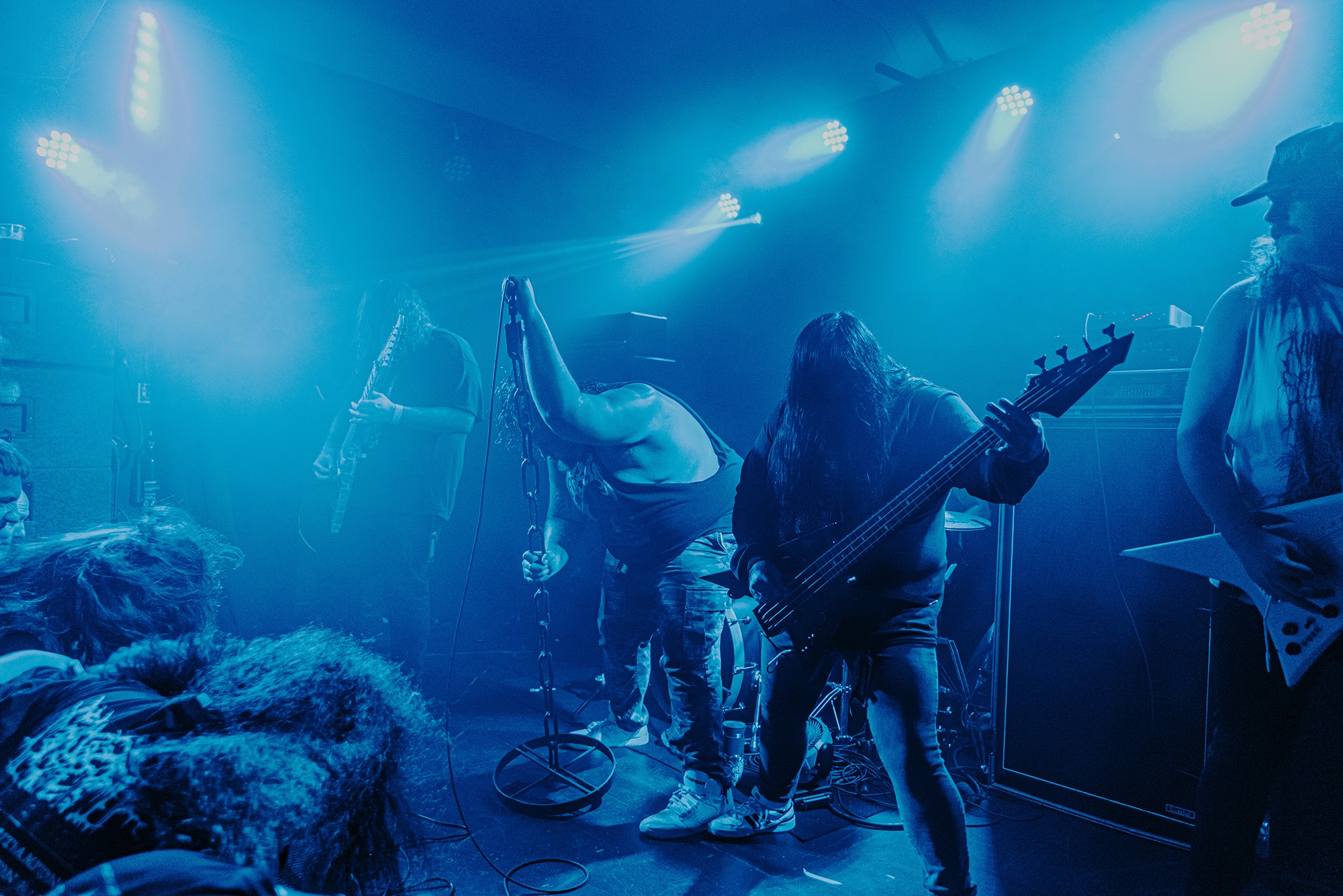 James Burke’s snare cracks through the mix as tight as anything, and the band play a host of crowd pleasers from that debut of theirs alongside a couple of glimpses of their fast-approaching sophomore full-length Insatiable Thirst For Torment, which – trust us – is another certified ripper. They close with Trapped Within The Rank Membrane, a track which has been around a little while now and will also serve as the opener on their upcoming LP; it’s a phenomenal demonstration of the range this band have nailed – thrashy, groovy, doomy, all of the above – and another reminder to mark your calendar for August 25th to witness the next step in the evolution of the New Wave of British Death Metal.