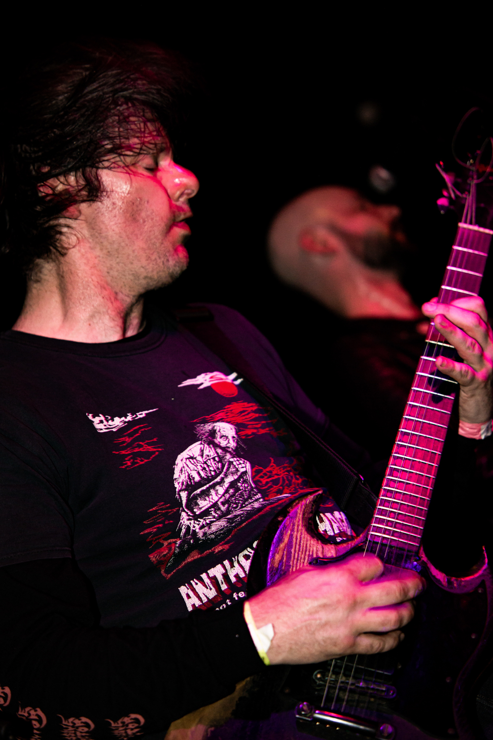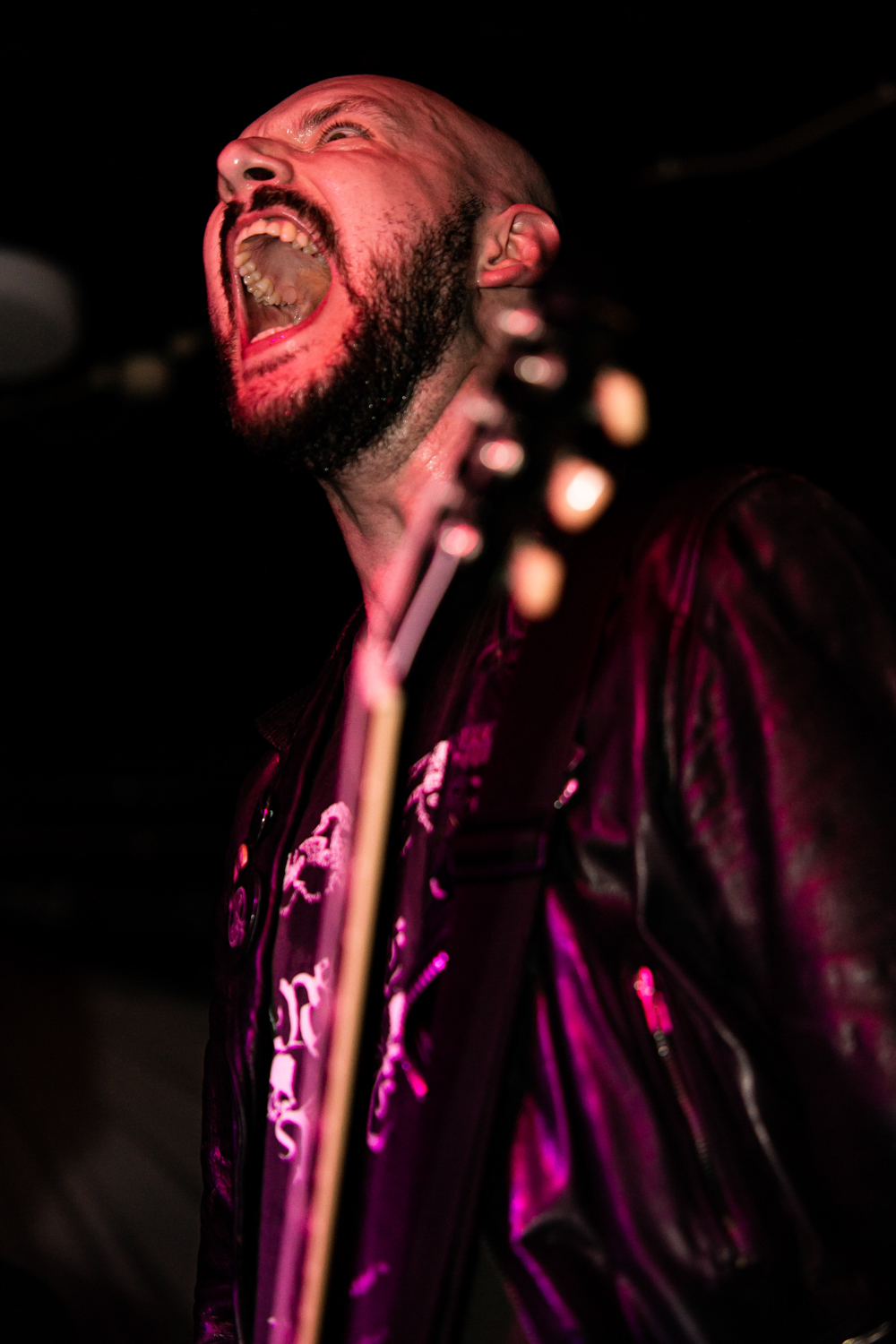 Before that though, GOSPELHEIM take to the confined stage and there’s a healthy sized crowd awaiting these hometown blackened rockers. With a reshaped lineup following the rightful dismissal of drummer John Badger, the quarter do more than a acceptable job of whipping up the crowd thanks to a amalgamation of blackened elements and traditional heavy metal. The dual guitar-play is devilishly cool and the rhythm swings organically from the first note to the last. A fine opening set indeed.