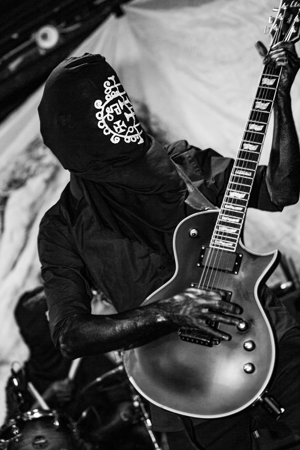 Given the quality of what came before, for lesser bands they might experience a wilt under the spotlight but GAEREA are quite simply out of this world. Masked and anonymous, they skulk to the stage (now washed alight with the house lights, a feature that remains throughout their set) and from the first ominous tones of opener Conspiranoia emerge, you just get the feeling you are about to witness something special.