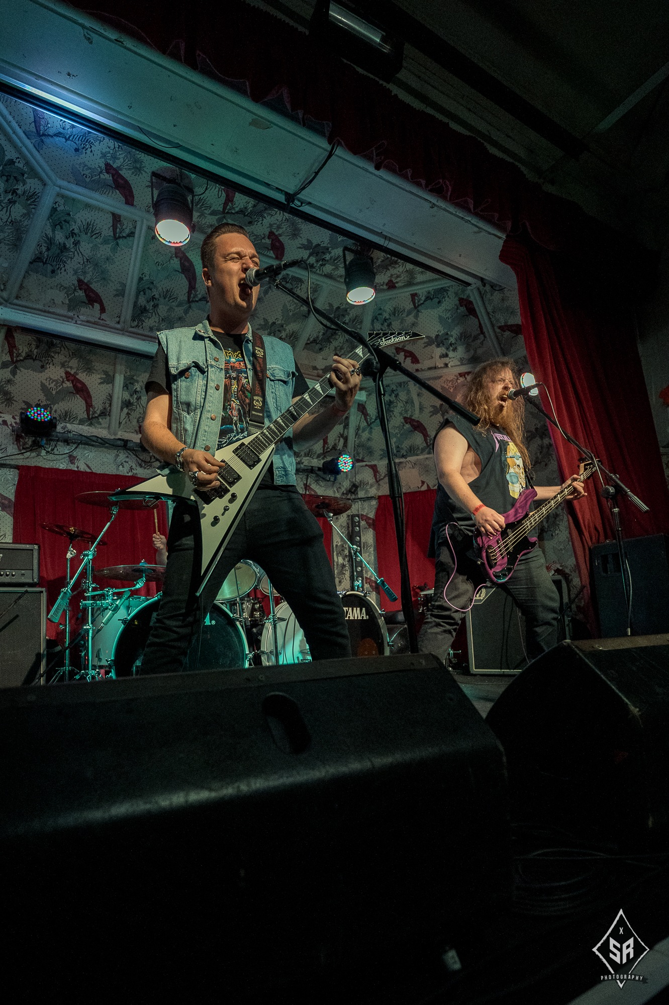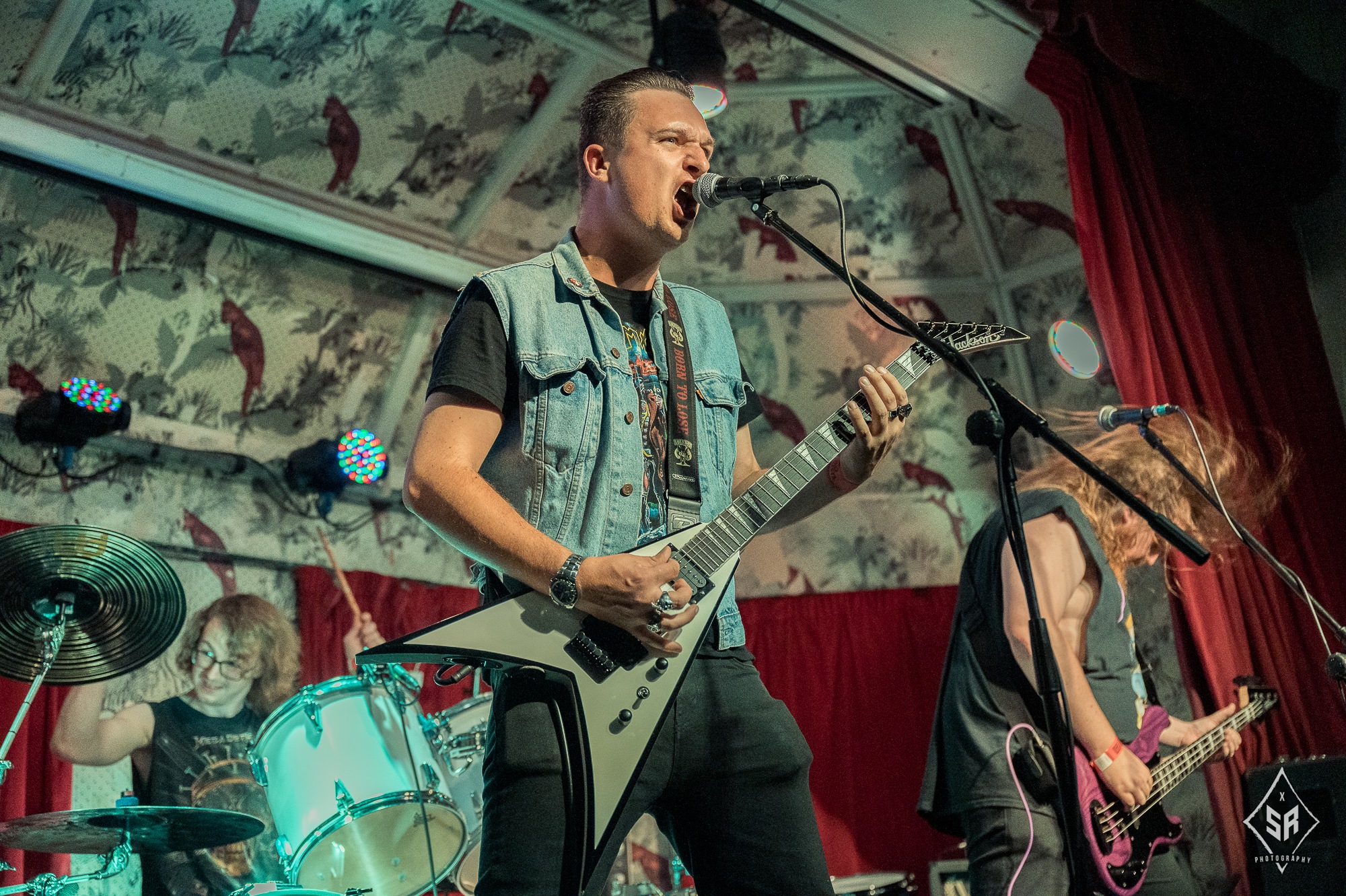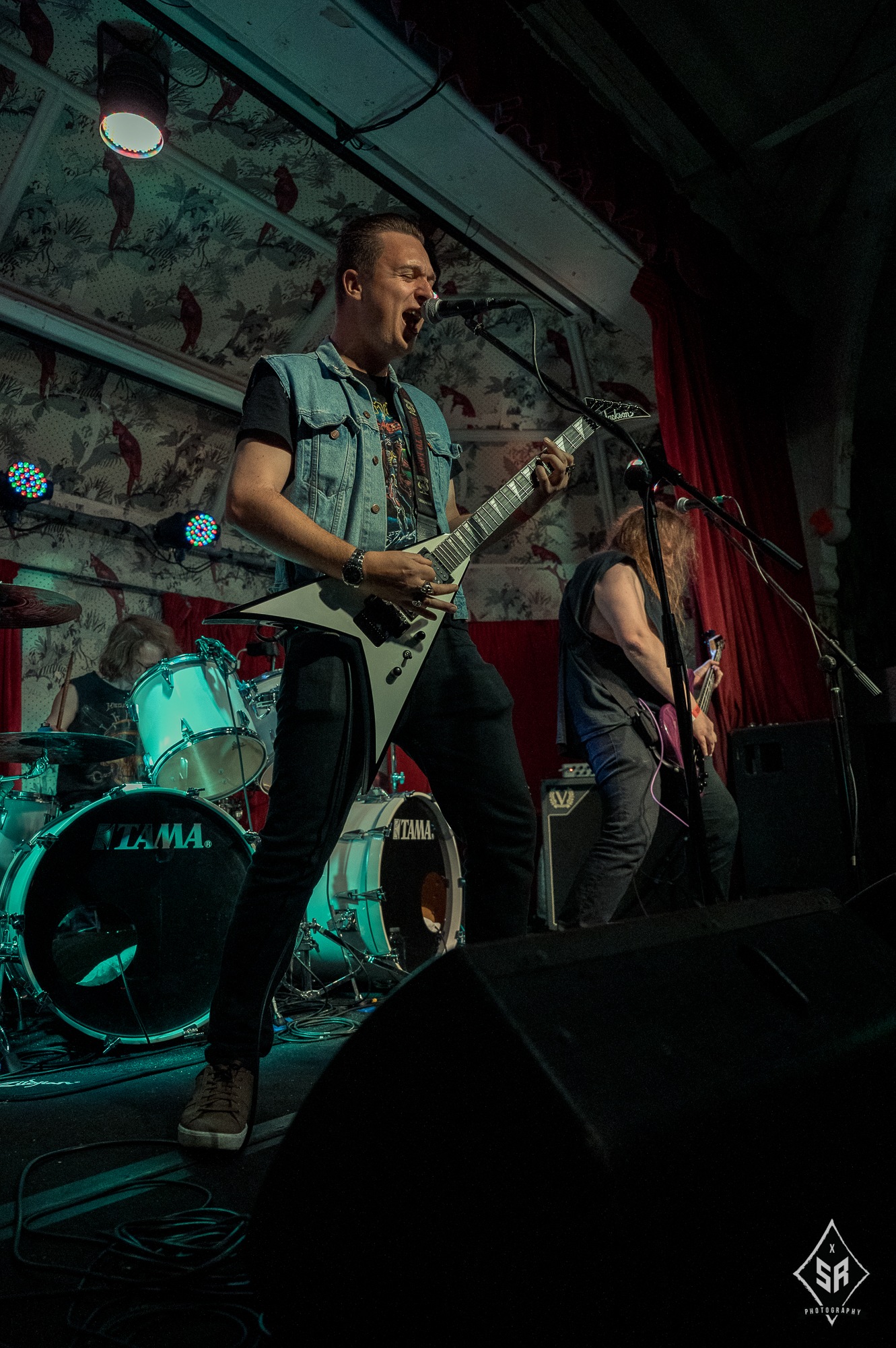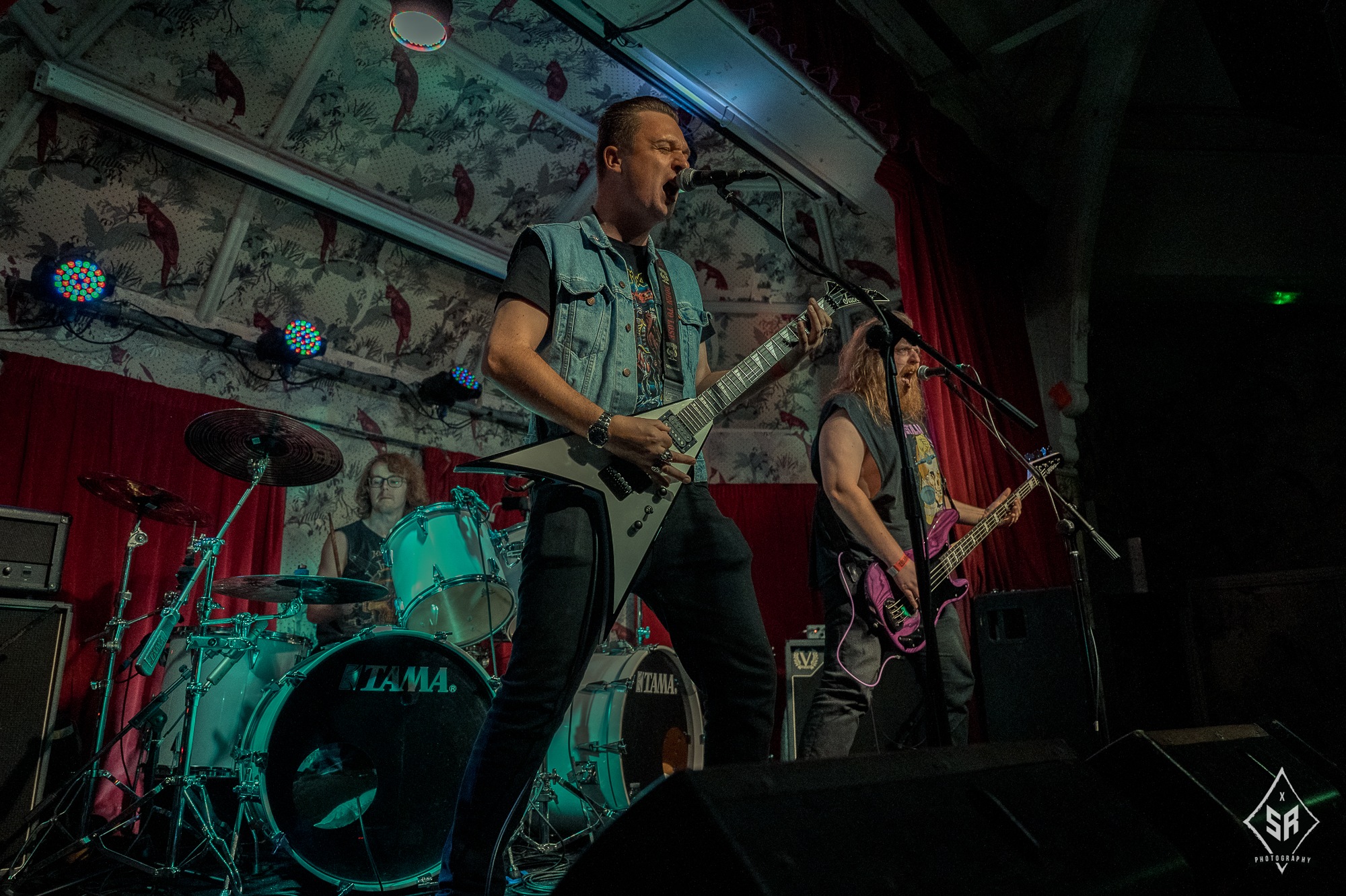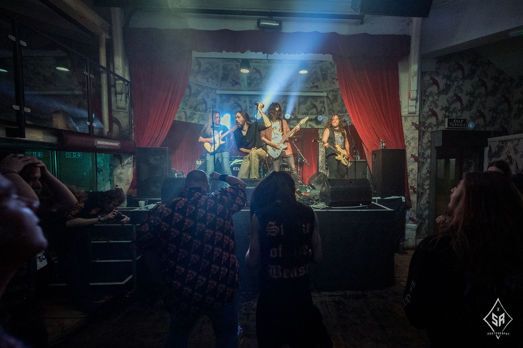 With noise from their only support act of the night, North Yorkshire’s APOLLOYPTIC blasted out familiar thrashers such as Executed, Gunslinger and Supersede which gave an overall good impression to their sound. One’s setlist would not be complete without their renditions of METALLICA’s widely-adored For Whom The Bell Tolls and partying to MOTÖRHEAD’s Damage Case. That was humorously aimed to deafen their listeners on the next day returning to their day jobs! Their overall presence was strong for an upcoming thrash band trio as chanting to their chorus line “all that you need, is a kick to the head”. It gave the the Northern trio the respect to be on stage while gaining newer listeners.