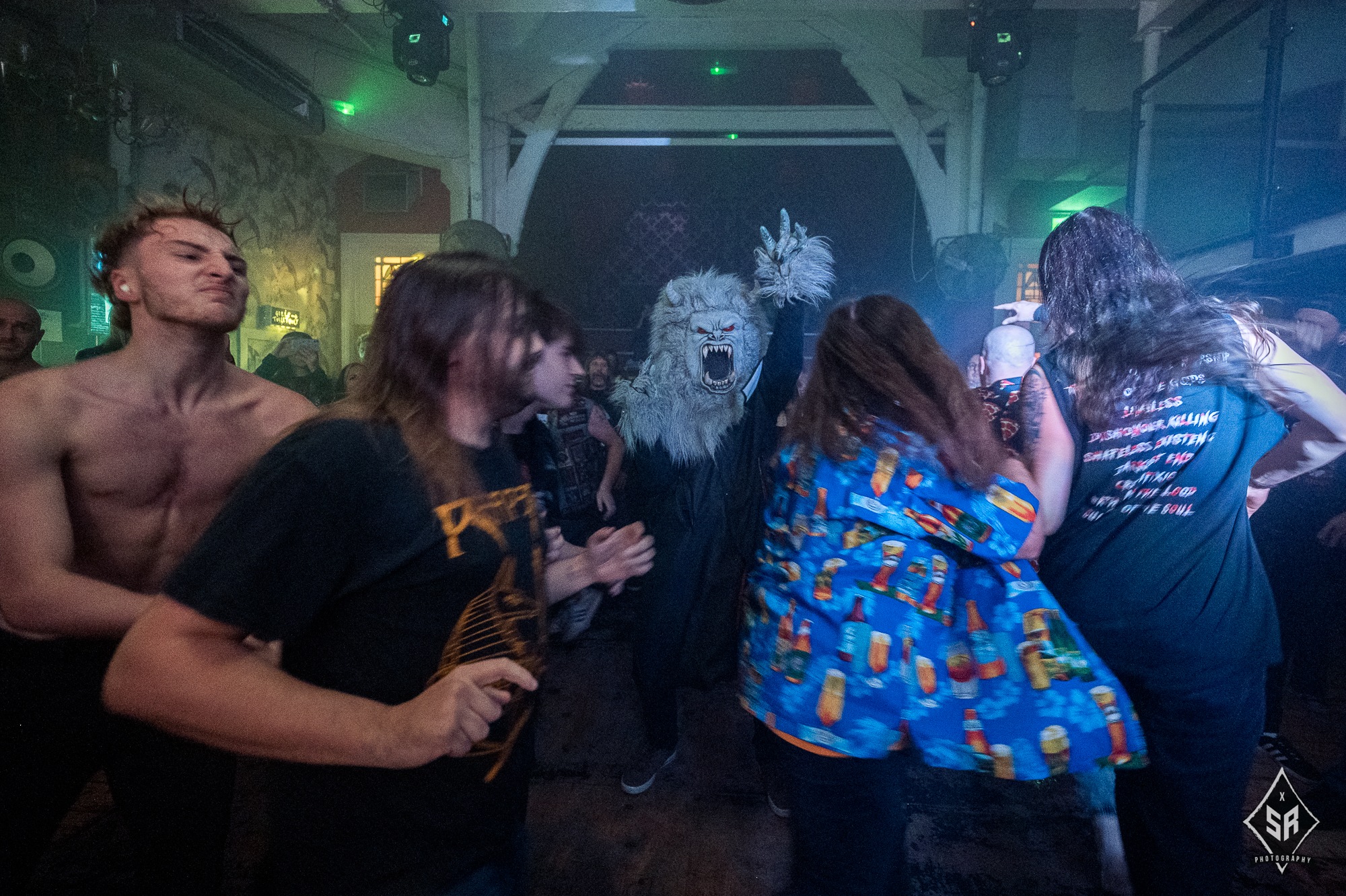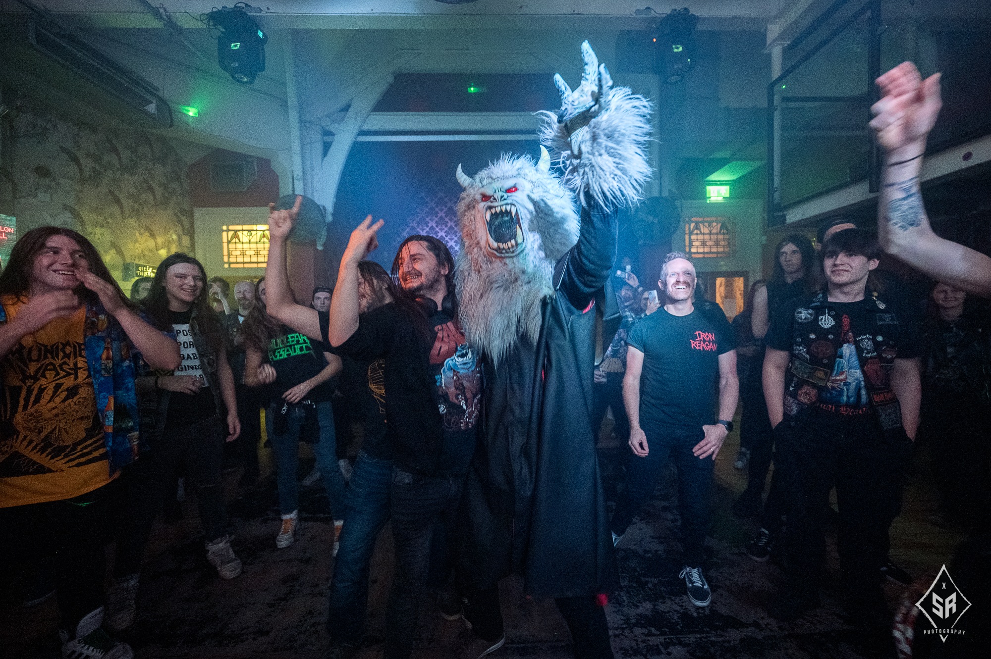 Over the speakers rang their Health and Safety announcement, what followed was the customary appearance of Snowy, their ‘The Gamabominable Snowman’ mascot, that brought the fun more with fans greeting their evening celebrity while the apt Bring Out The Monster boomed through the room. Their mascot disappeared while She’s Not My Mother Todd exploded to even more friendly violence. “There’ll be a few sore heads in the morning”, Byrne exclaimed before launching into She’s Not My Mother, Todd which stagedivers were carried around the room to the edge of the bar and their anti-Tory no-frills anthem Mussloini Mosh increased the speed in the circlepit.