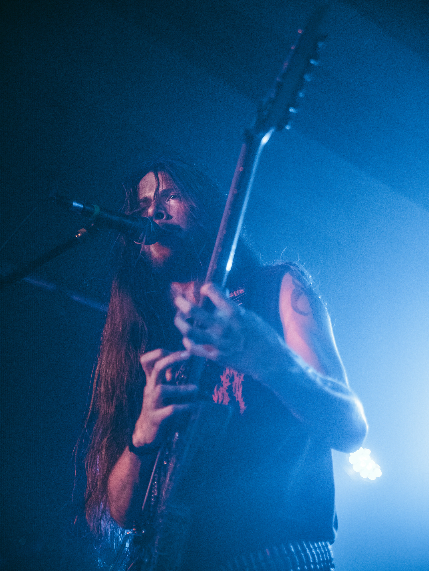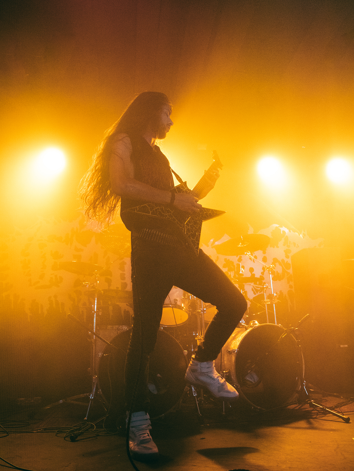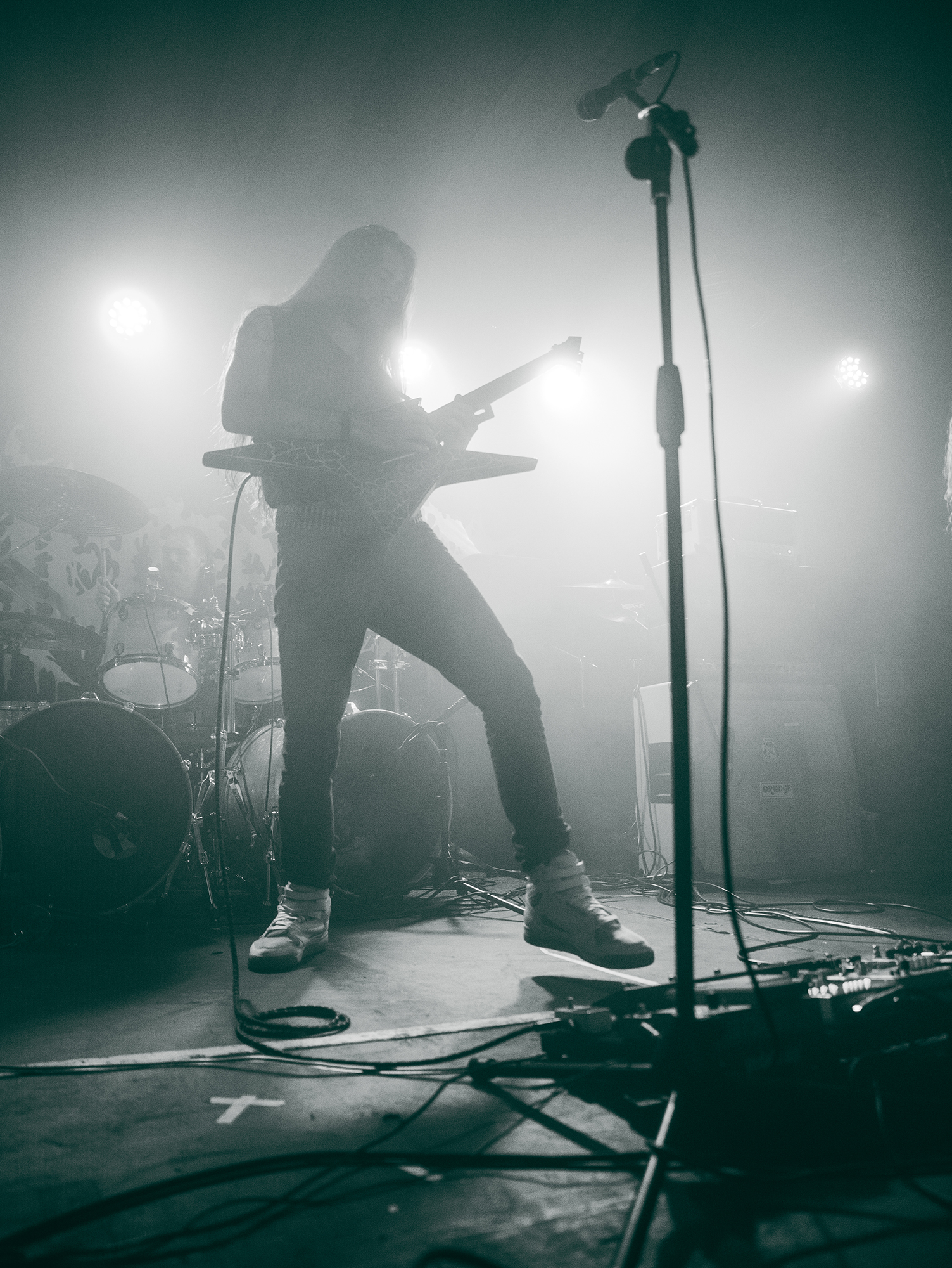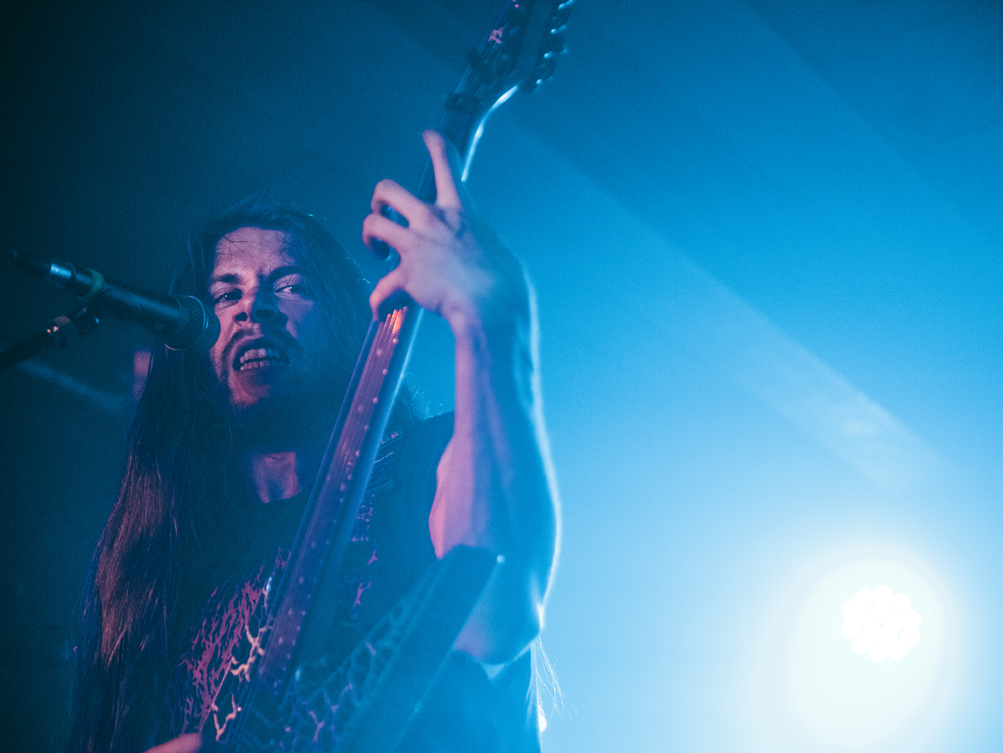With punters filing through the doors of Rebellion in Manchester, it’s down to Cambridge-based death metallers CELESTIAL SANCTUARY to kick off proceedings and the flag-bearers for the new wave of British death metal do not disappoint. Although operating as a three piece tonight, rather than their usual quartet, the band’s tenacity for pulverising death metal is just as ripe and potent as it is when they are operating at full-strength. Thomas Cronin leads the assault in fine-fashion as his riffs combine ever so well with the back percussion and the gutturals snarls cut through the mix ever so effectively. Powering through a heft of material from last year’s stellar Soul Diminished, CELESTIAL SANCTUARY are the real deal and a band that is proudly flying the flag for British death metal.