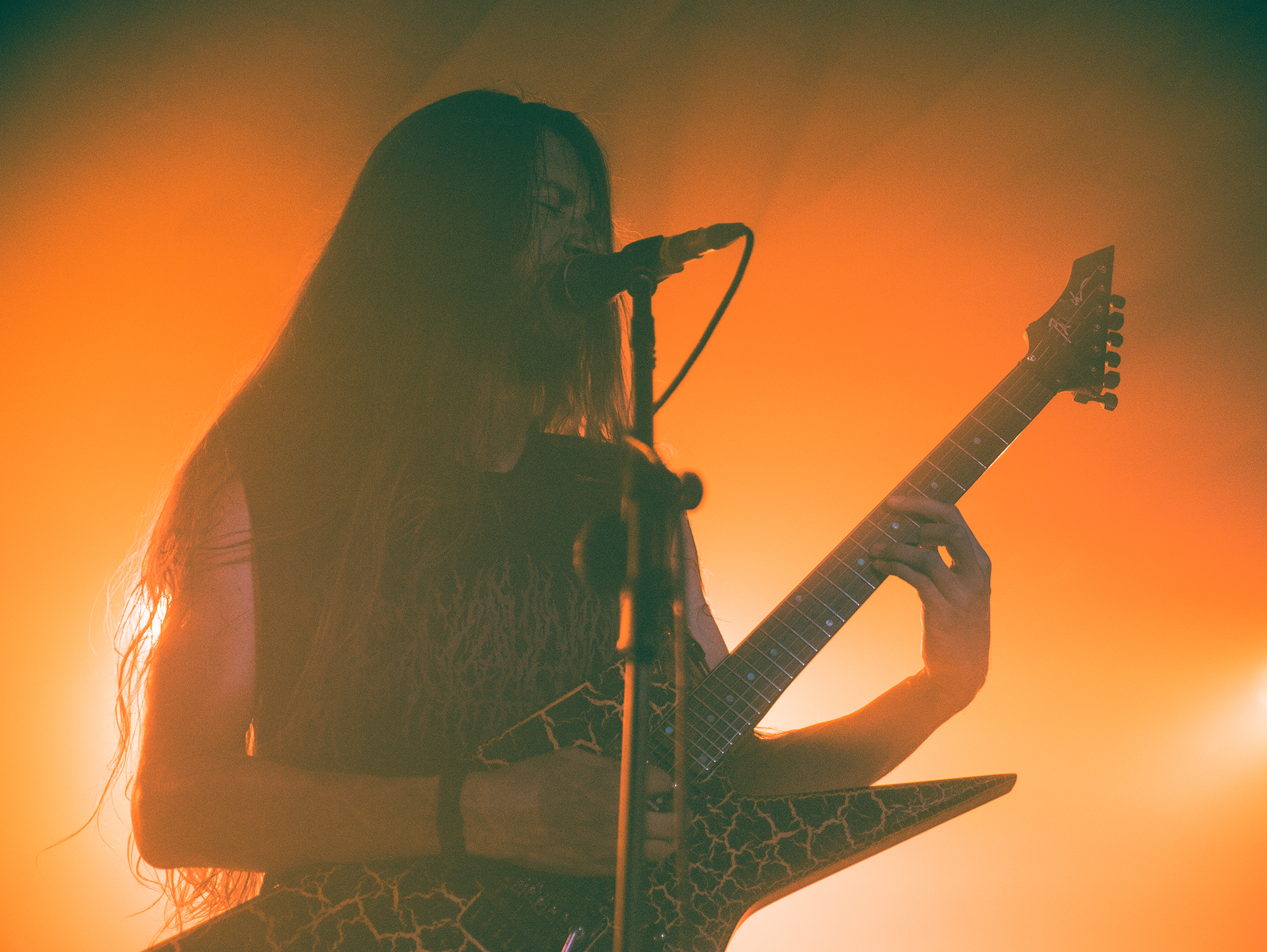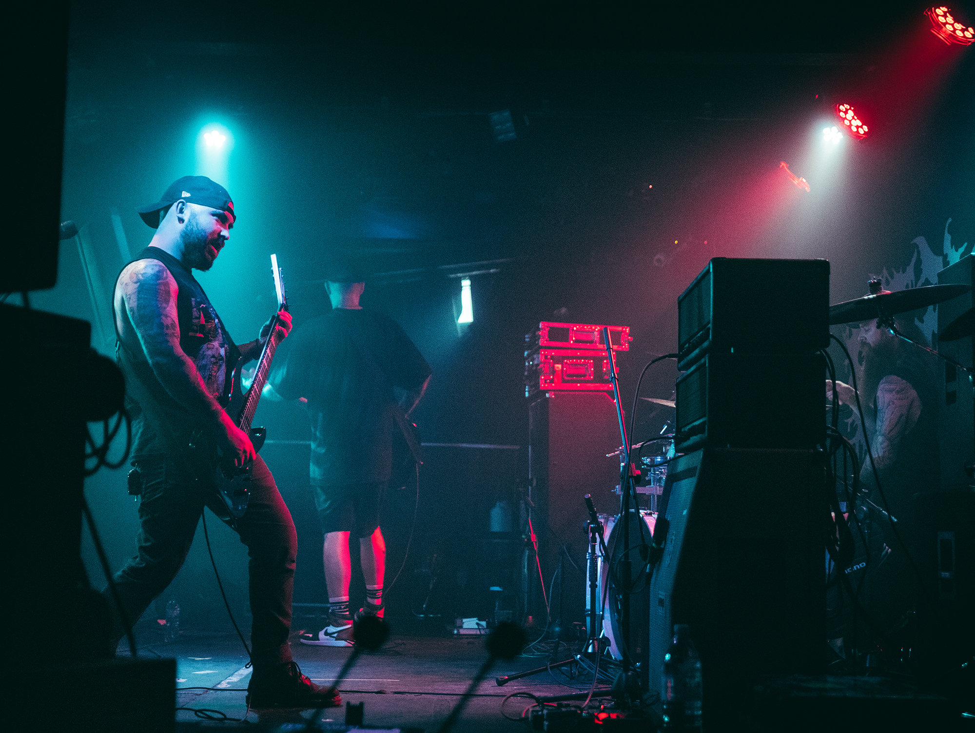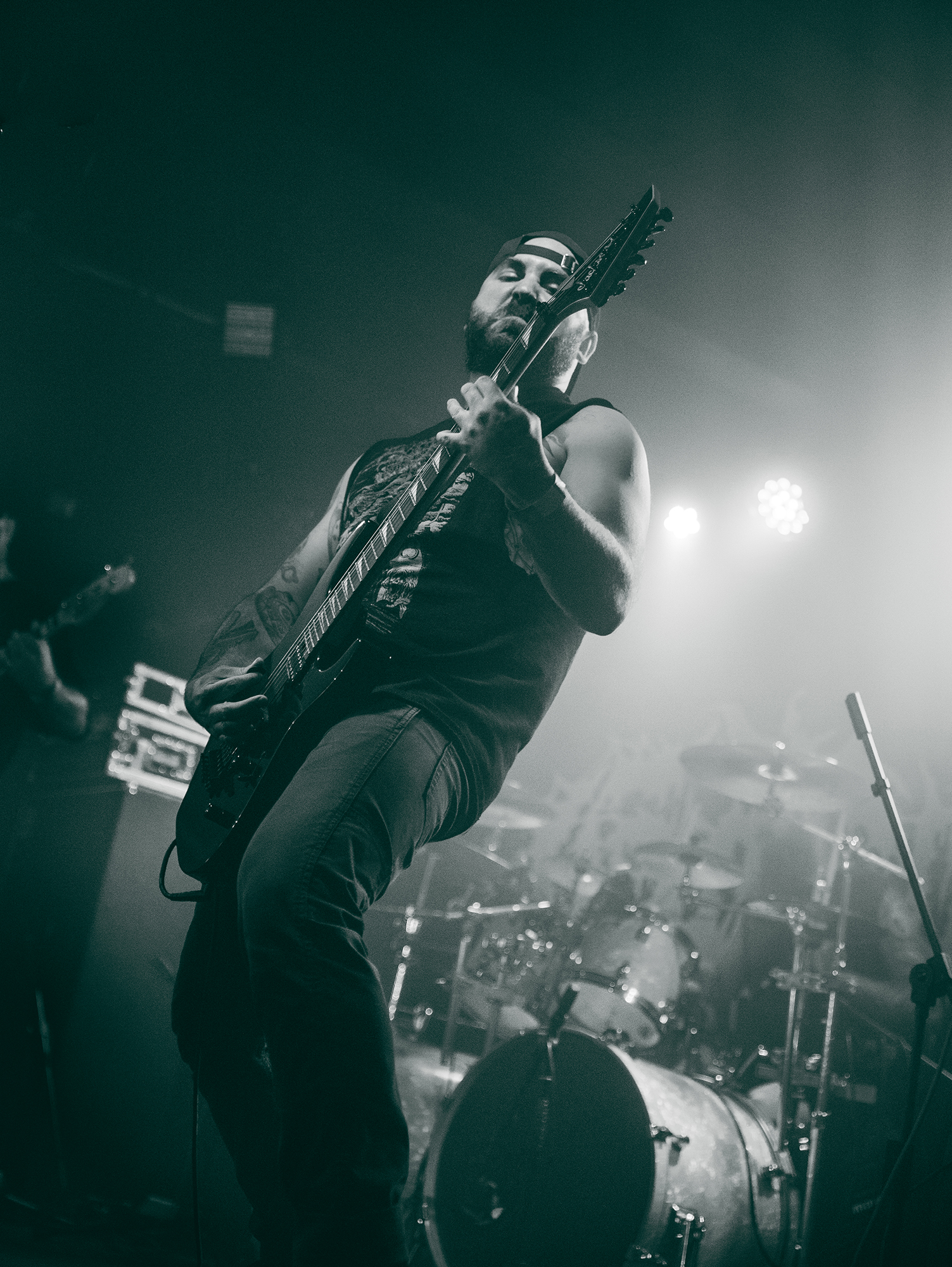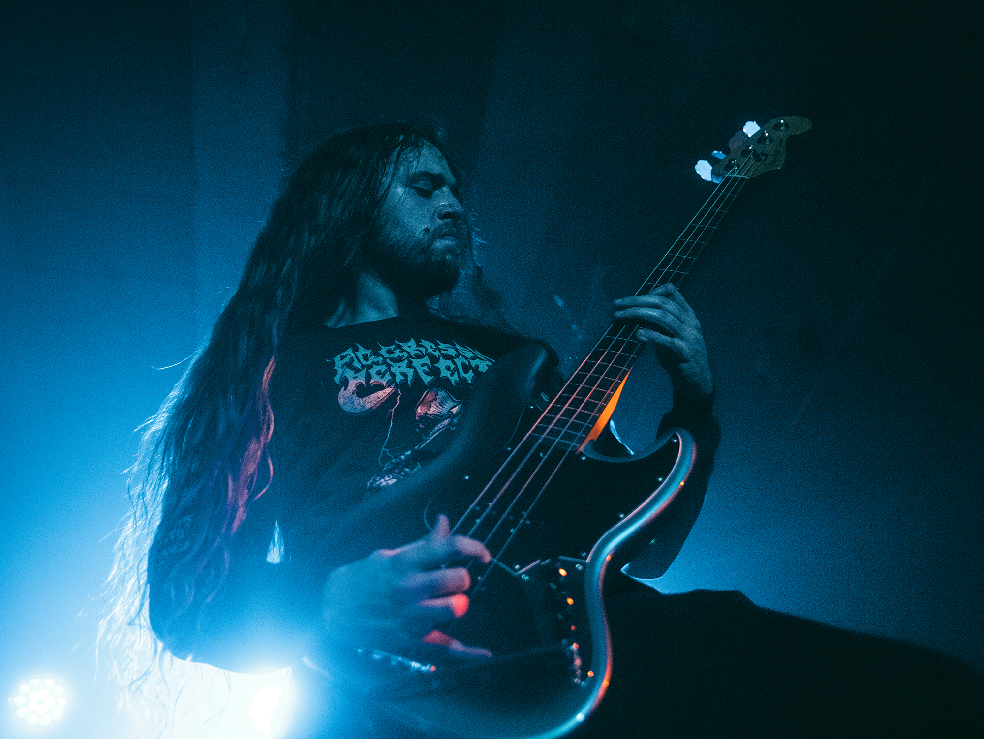 With punters filing through the doors of Rebellion in Manchester, it’s down to Cambridge-based death metallers CELESTIAL SANCTUARY to kick off proceedings and the flag-bearers for the new wave of British death metal do not disappoint. Although operating as a three piece tonight, rather than their usual quartet, the band’s tenacity for pulverising death metal is just as ripe and potent as it is when they are operating at full-strength. Thomas Cronin leads the assault in fine-fashion as his riffs combine ever so well with the back percussion and the gutturals snarls cut through the mix ever so effectively. Powering through a heft of material from last year’s stellar Soul Diminished, CELESTIAL SANCTUARY are the real deal and a band that is proudly flying the flag for British death metal.