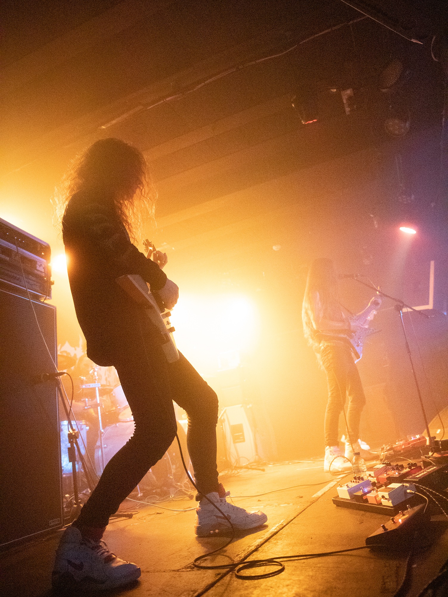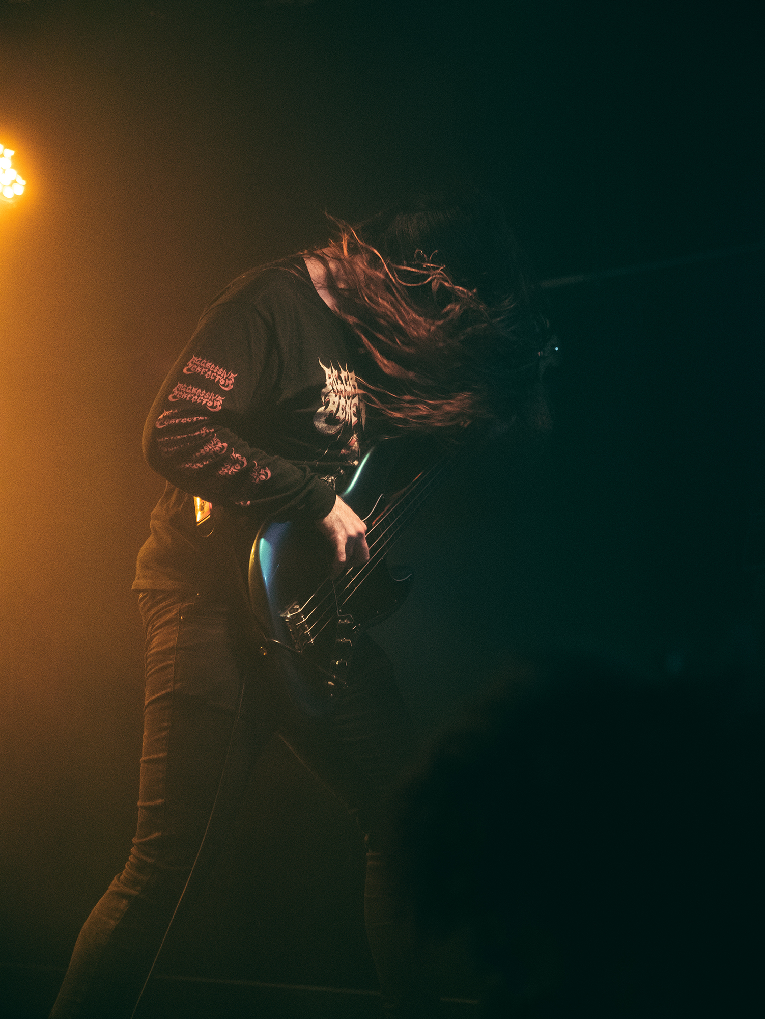 CRYTPIC SHIFT‘s trajectory over the last two years has been as impressive as it is curious. The Leeds-based technical death metal band wowed audiences across the glove with 2020’s Visitations From Enceladus, and now, as COVID restrictions are thankfully a thing of the past, the band are quickly cementing themselves as one of the hot properties in UK metal. Whilst performances last year, including Damnation and their own headline tour, featured the long and ludicrous Moonbelt Immolator, tonight in Manchester, CRYPTIC SHIFT opt for a more refined and precise delivery of their expansive brand of death metal. Opener Cosmic Dreams is a nice throwback to times before they exploded onto the scene and a triple whammy of (Petrified In The) Hypogean Gaol, The Arctic Chasm and Planetary Hypnosis showcases the deeper cuts of quality on their debut and the quartet more than deliver in the live environment. Whilst they don’t demonstrate the same aural blunt force trauma of CELESTIAL SANCTUARY or GATECREEPER, CRYPTIC SHIFT more than delivered, further bolstering their stock as one of the UK’s essential bands within extreme music.