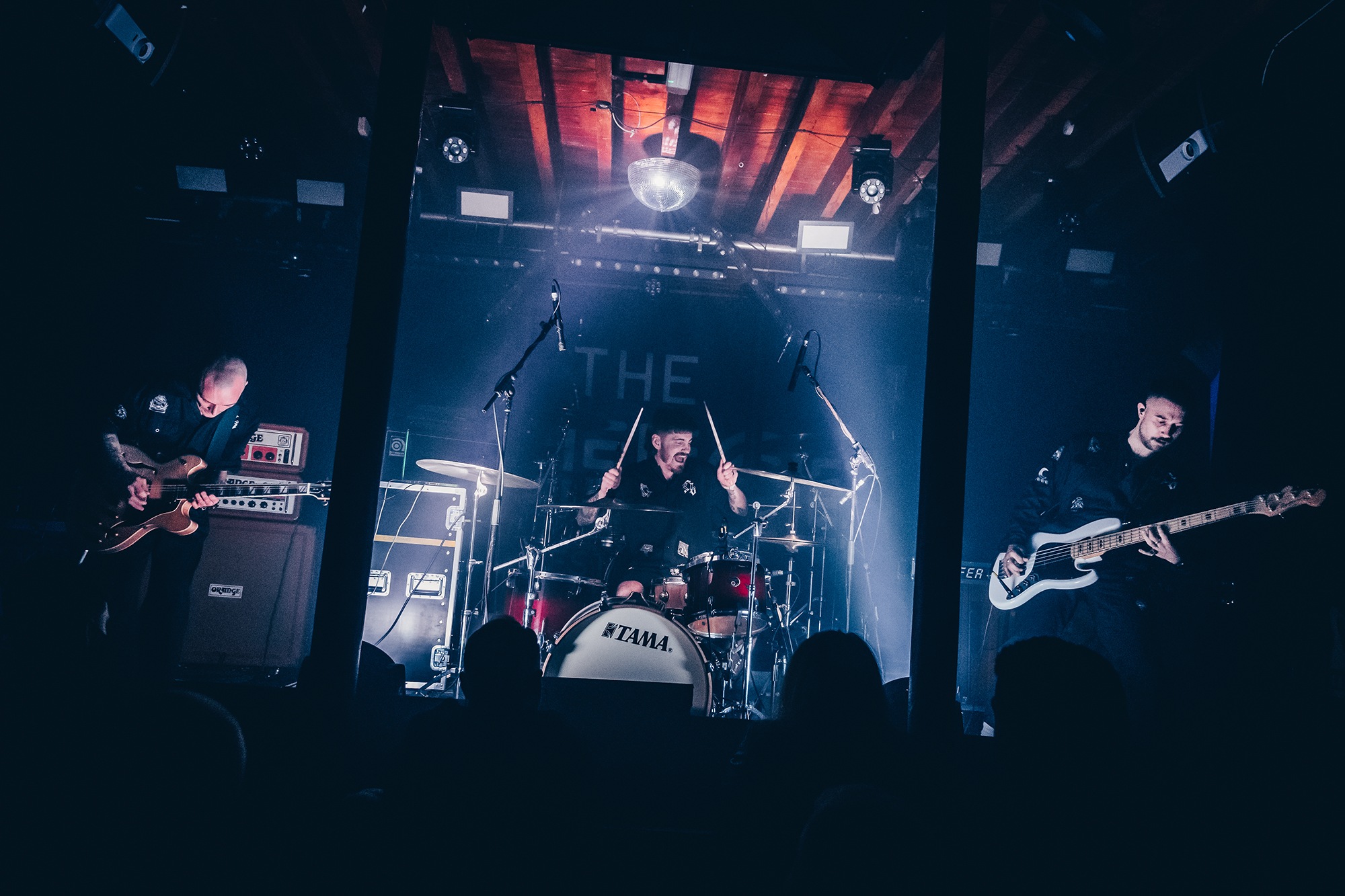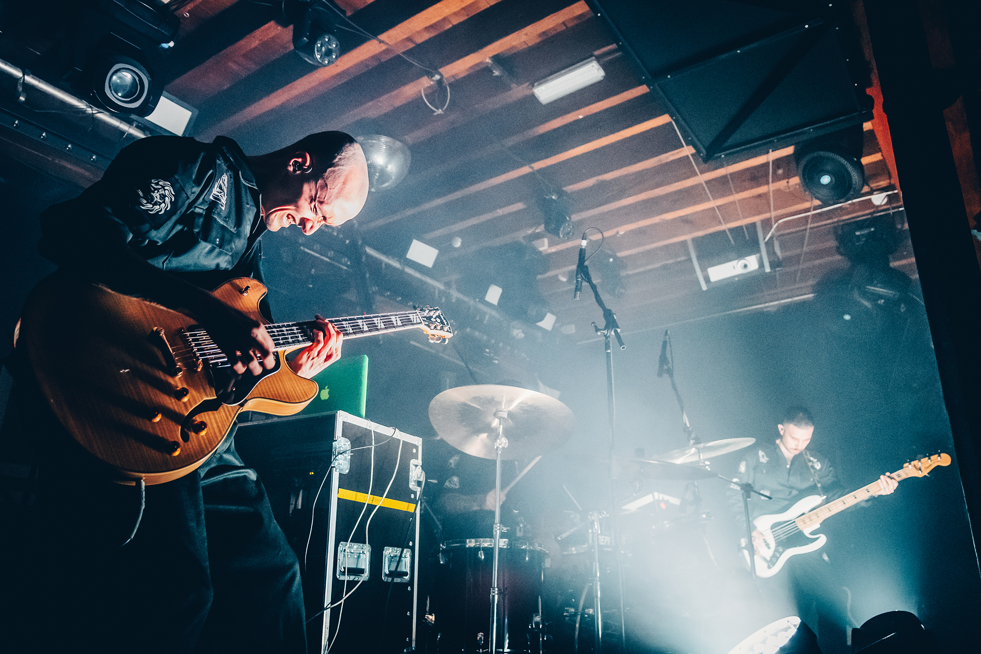 Local act COLDBONES have the honour of taking on tonight’s support slot and the three piece make a significant impact. Decked out in custom coveralls with patches, the trio play a large amount of material from their 2020 release The Cataclysm, which tells the story of the end of the world and it makes for a compelling experience. First and foremost, the light show does plenty to enhance the band’s set: whilst the underfloor strobes are jarring and create large shapes that dart across the room, the softer floods that regularly change hue being out the more expansive, ambient elements that float through the venue. In addition, the peaks and troughs of the songs create the most wonderful juxtaposition, as beauty is found within songs of apocalyptic tragedy, a subject that, especially in today’s social climate, is all too appropriate. Perhaps the masterstroke, however, are the spoken word sections that string the songs together; all of a sudden, the set takes on a War Of The Worlds-like quality for the twenty-five minute duration. Quite frankly, COLDBONES could have played for another hour and nobody would have minded, but the fact they didn’t leaves some already wishing it was ArcTanGent to see them again, others eagerly awaiting their return.