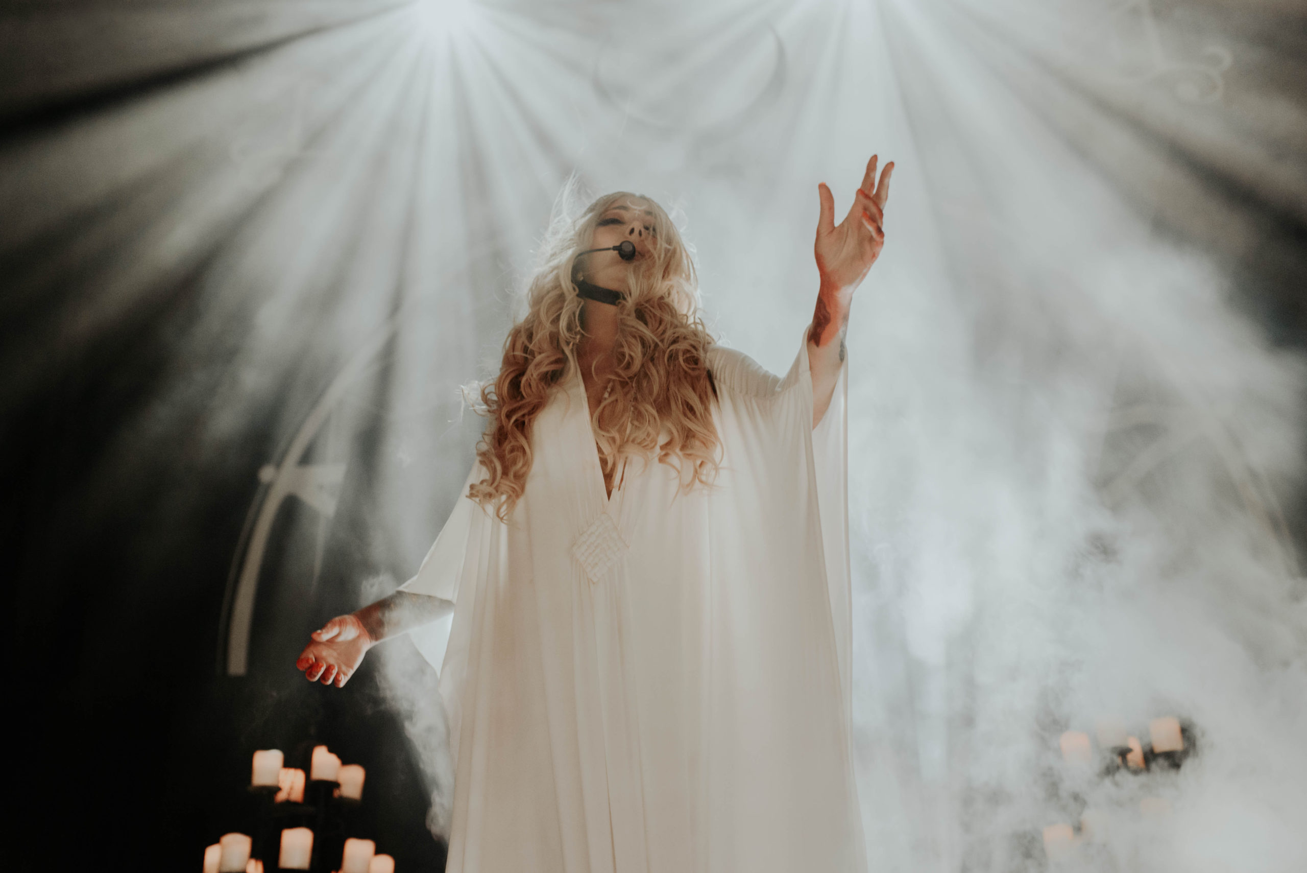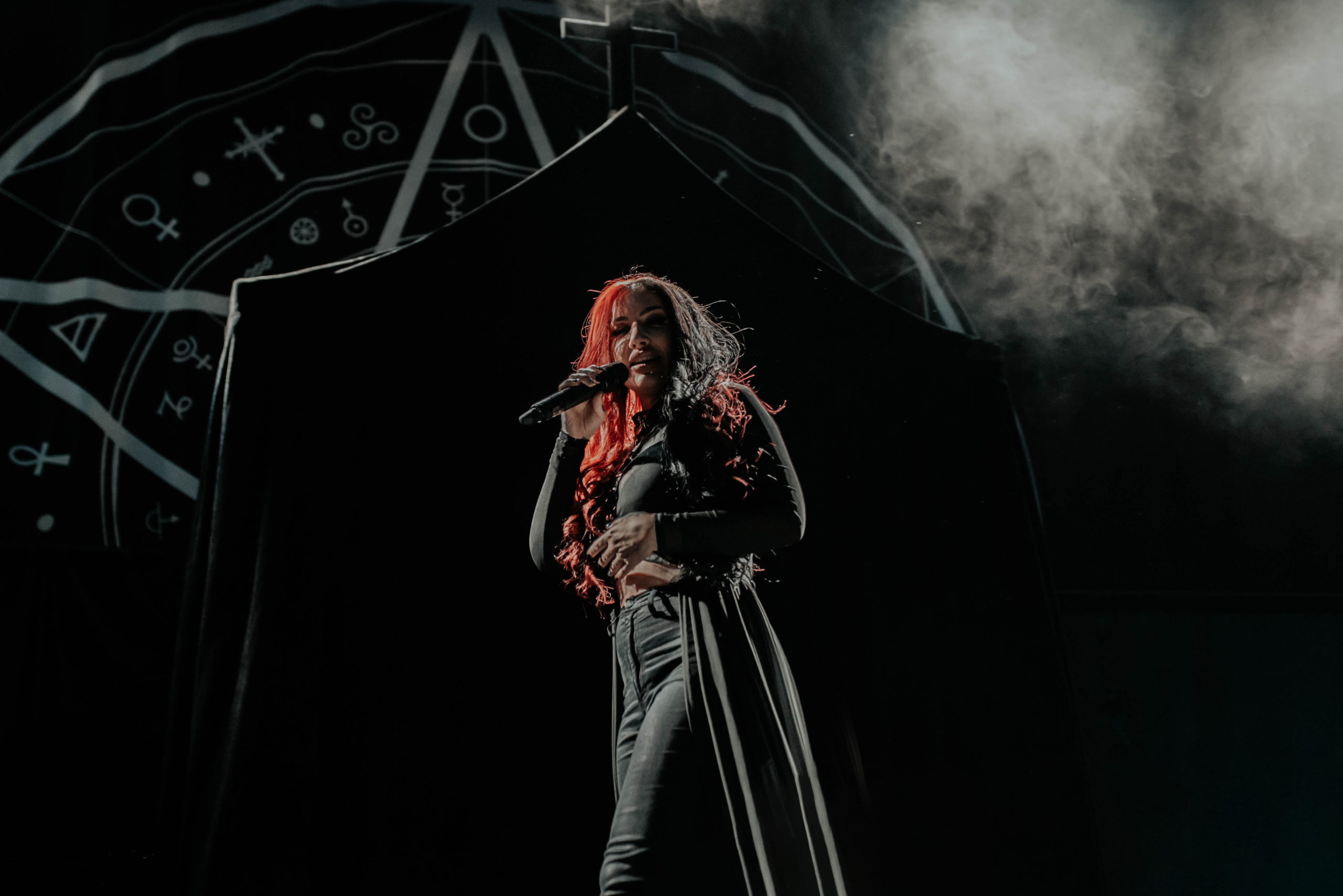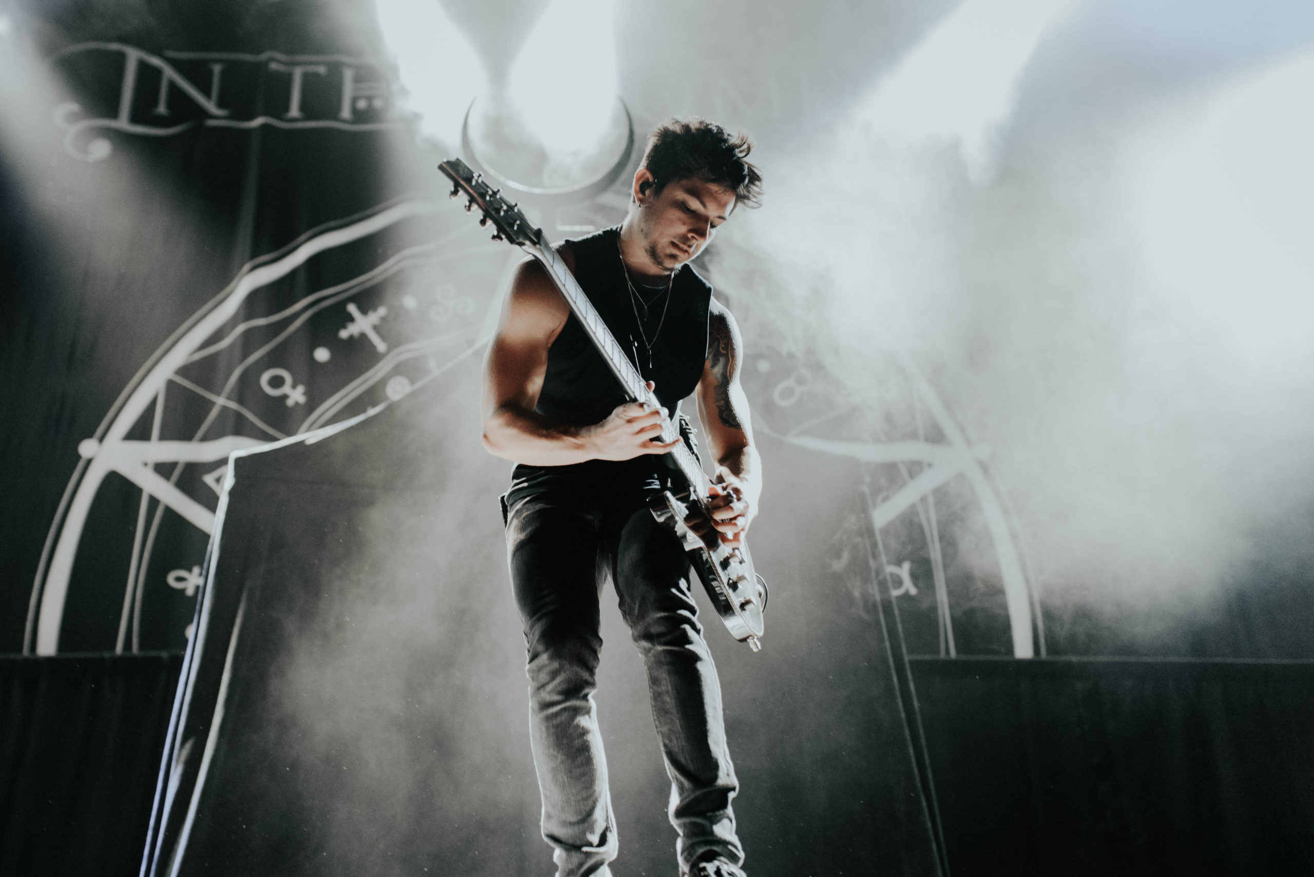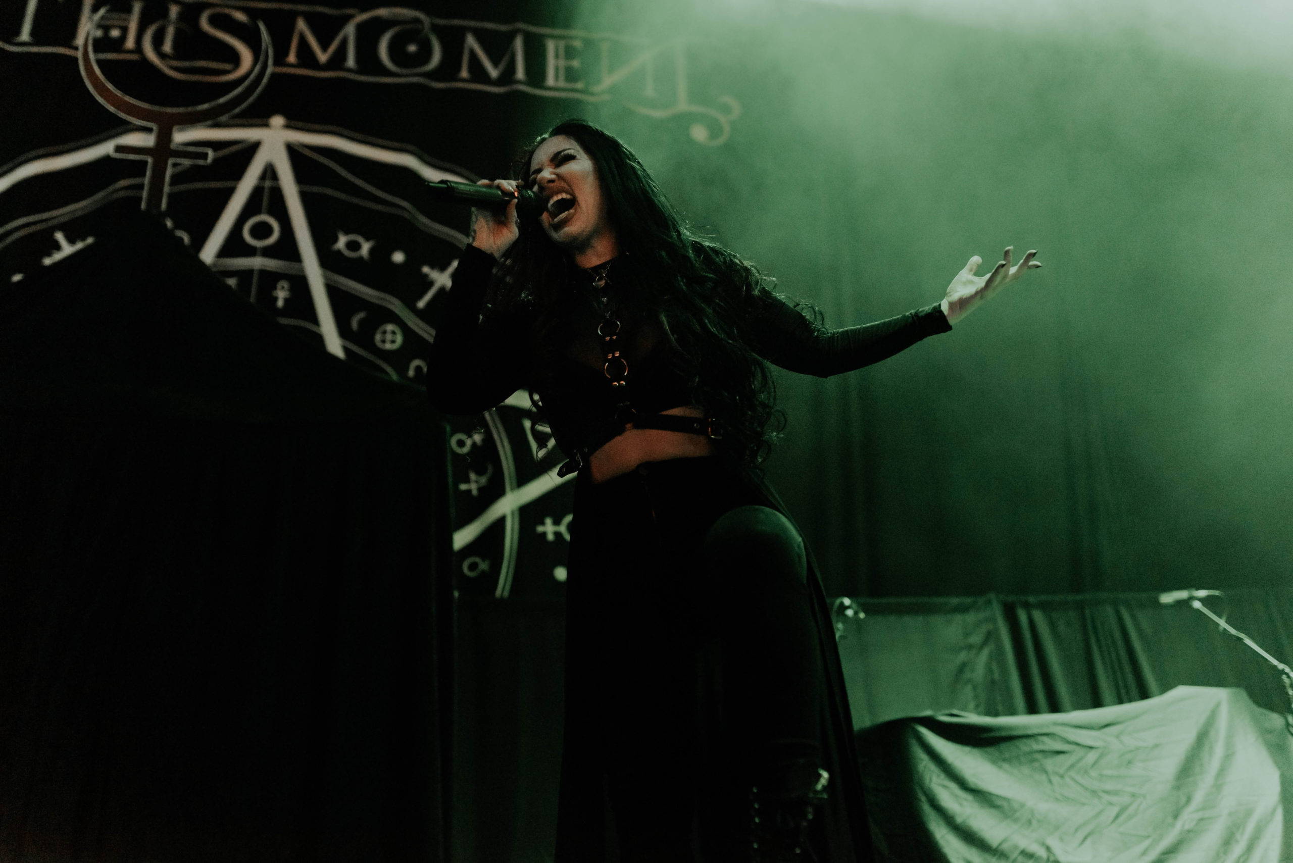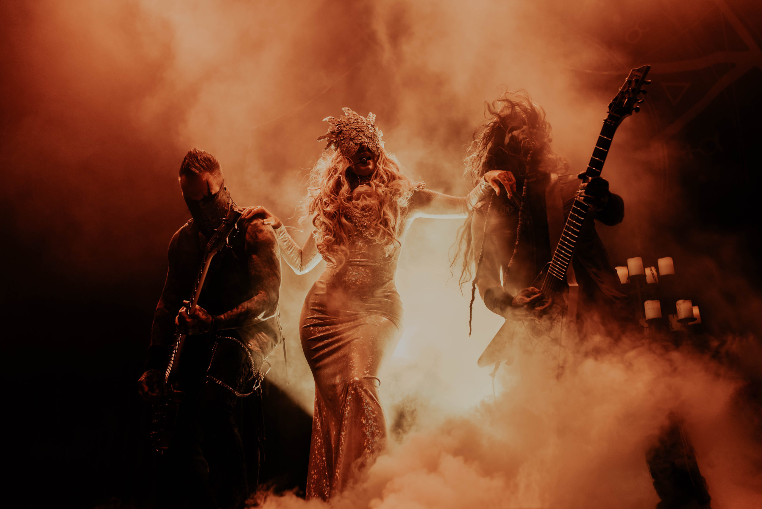 One band who will be looking to heighten their stock are NEW YEARS DAY, playing in support of new album Unbreakable. From the off though, something isn’t quite right. The Motorpoint isn’t always brilliant for sound, but it transpires that Ash Costello has a habit of holding her microphone a bit too far from her mouth, meaning her vocals are often too quiet and get lost in the mix. Furthermore, she seems a little restrained in singing sections of songs that would require her to hit the top end of her range, instead choosing to get the crowd involved instead; the most glaring is the build to the final chorus of opening number Come For Me, a powerful moment but one that is overlooked in favour of having everyone inside raise their hands instead.