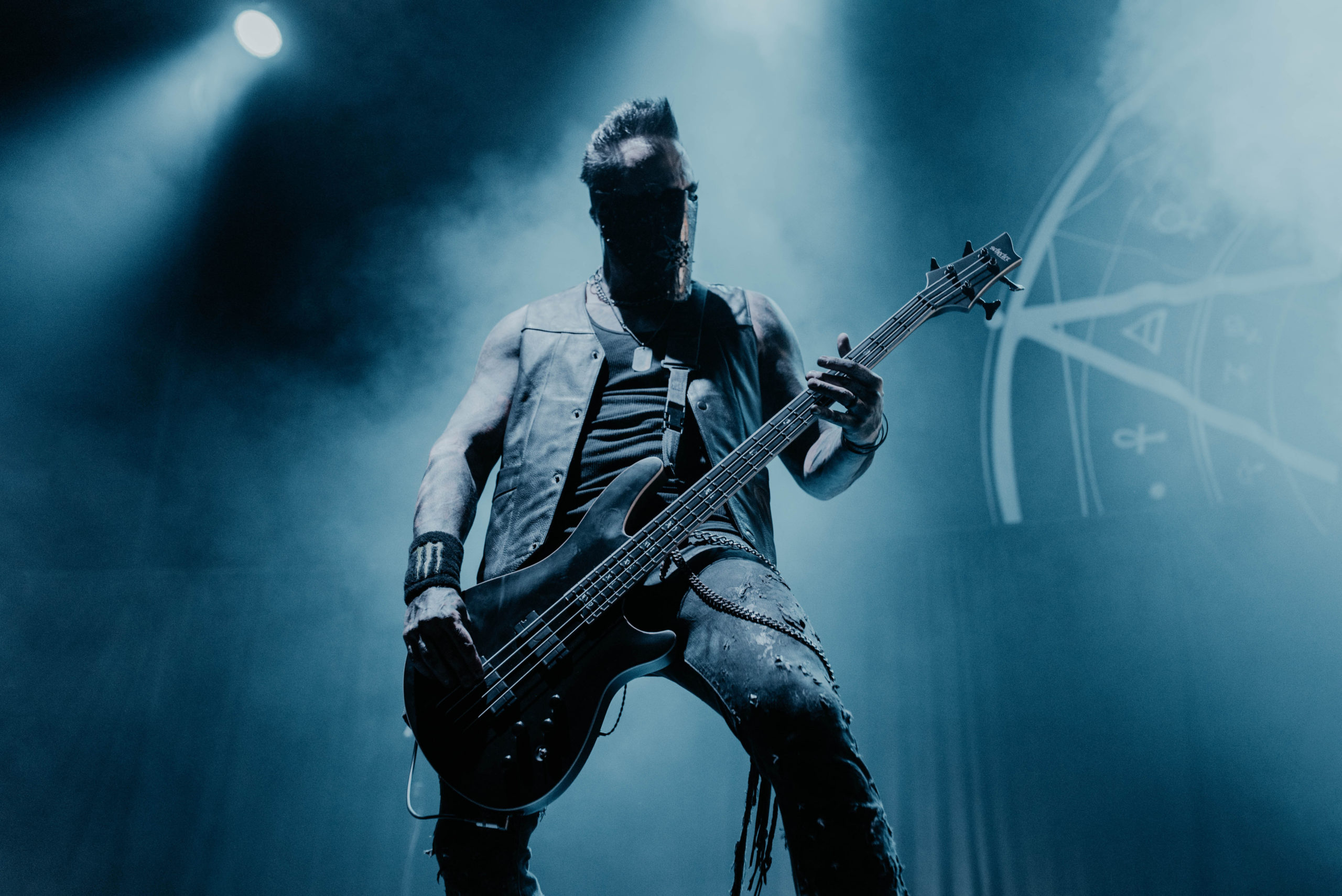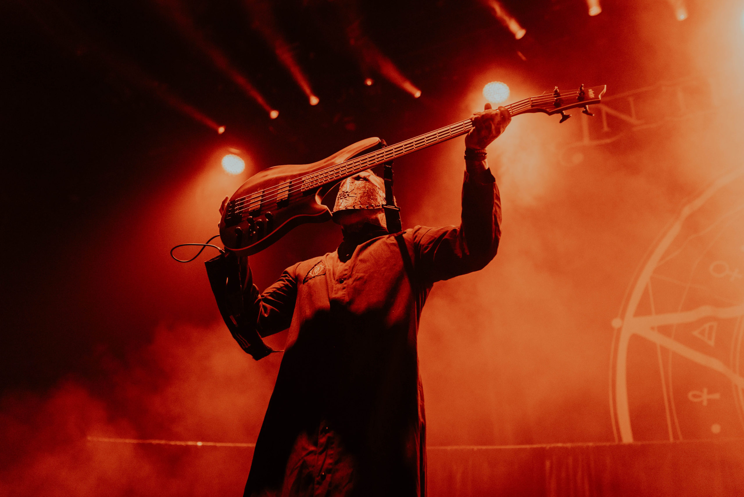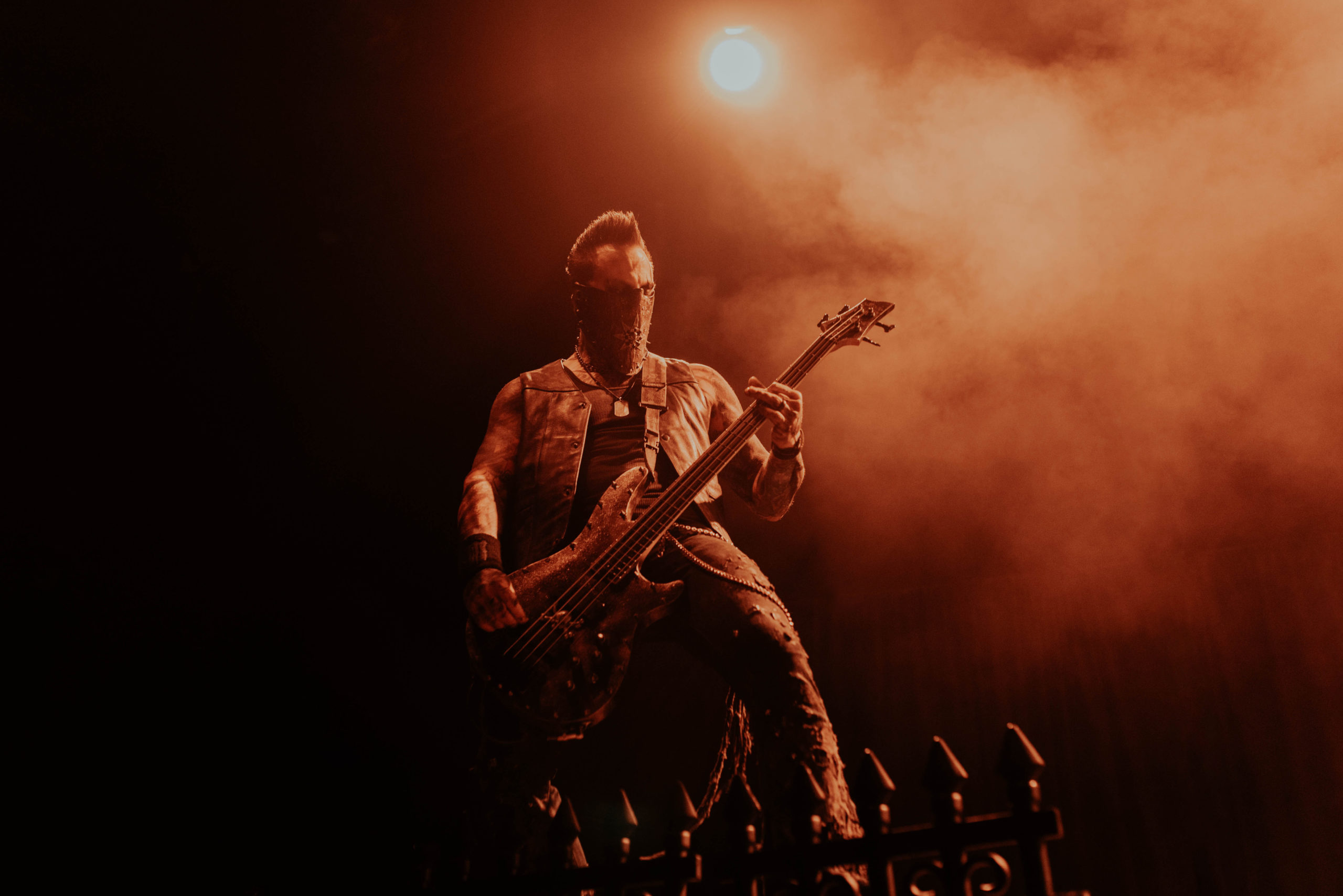 By contrast, IN THIS MOMENT are fast becoming a band who could potentially headline somewhere like this on their own in the next few years. It’s quite a statement for a support band to not only bring more of a stage setup than the headliners but also a blackout curtain to hide the changeover in between sets. Thankfully, the performance matches the ambition. Part rock horror show, part pop stadium extravaganza, the Hollywood quintet are menacing, morbid and deliver a thunderous hour of rock-come-metal that threatens to derail the band on after them. Of course, front and centre is Maria Brink, the perfect fusion of Marilyn Manson and Lady Gaga and immediately captivating. Flanked by two backing dancers and spending a significant amount of time atop a podium, her decision to wear a Britney Spears style radio mic is inspired, as it aids the choreography she performs during the likes of Adrenalize and a thumping rendition of Big Bad Wolf. And her voice is impeccable, soaring through the Motorpoint and adding real gusto to the pounding drums and crushing riffs. Also among the setlist tonight is Natural Born Sinner – mercifully replacing a drum solo – the as-yet unreleased track Legacy written about Maria’s grandfather and a surprisingly good cover of THE STEVE MILLER BAND’s Fly Like an Eagle, which far outstrips NEW YEARS DAY’s mawkish attempt at PANTERA’s Fucking Hostile from earlier in the night. As the hour draws to a close, Maria resumes her position atop the plinth and conducts a now fired-up crowd through Whore as black and white balloons bounce around the venue. Without question, the metal scene has been put on notice tonight.