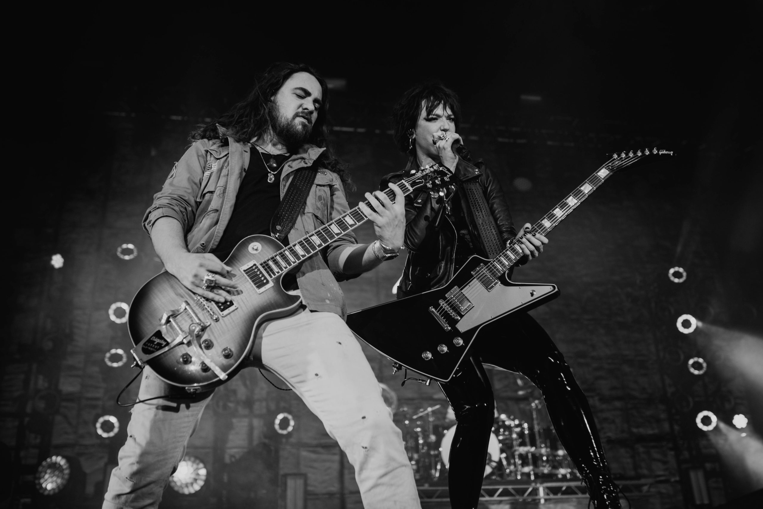 It’s been nearly nine years since HALESTORM first stepped onto a UK arena stage, opening the Taste of Chaos tour alongside BUCKCHERRY, PAPA ROACH and DISTURBED. Now, they’ve made the climb to play those venues under their own steam and it’s an achievement that deserves to be applauded by everyone; whether you’re a fan of the band or not, they’ve worked for this over the last decade and are not about to let it go any time soon. Tonight’s show at Cardiff Motorpoint Arena isn’t quite sold out, but there’s still a large turnout that ensures the Pennsylvania rockers don’t play to a room with large gaps, something that can easily befall an outfit who are making their first forays into the big leagues.