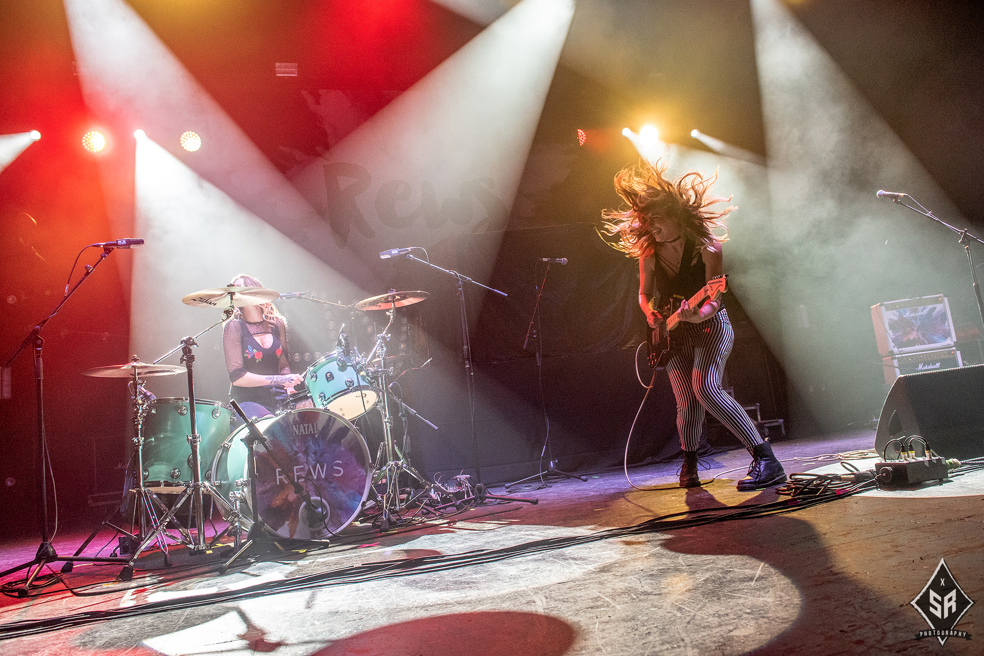 Alt rock duo REWS had the formidable task of opening proceedings to a slowly filling venue and despite a shaky start, the duo rose to the occasion rather well. Initially, nerves rattled the fluidity between ShaunaTohill and ColletteWilliams but, after ironing out the creases, the two showed their worth. The simplicity behind Tohill‘s guitar-work and Williams‘ drumming delivered hooks aplenty as they kept the energy high and the harmonising vocals between the pair was the cherry on the alt rock cake. By the set’s latter stages, REWS were performing with ease with new single Can You Feel It? receiving a rapturous response from the crowd. With a touch of refinement and a build in confidence, the future could be very bright for this band.