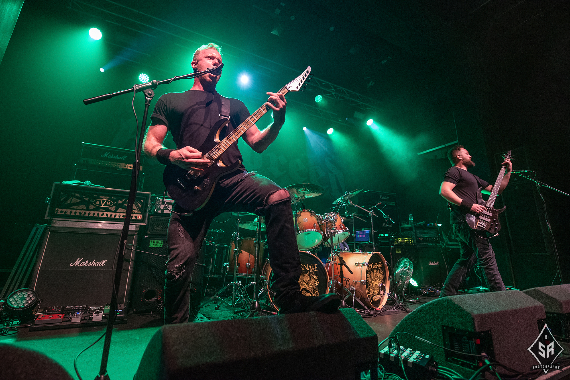 With the room already being flooded with people getting down early, it was time for Horsham boys DYSCARNATE to kick the night off with their explosive brand of death metal. Since appearing on the scene back in 2004, the band have gone on to become synonymous with British death metal – with no conversation about the genre being complete without a mention of their name. Despite the crowd not necessarily being a death metal crowd, right from the off the band went down an absolute storm. Playing a relatively brief set, the band blasted through some of their standouts from their discography and straight away the room was fully behind them. Once the band had finished their set, talk around the room centred on how they didn’t know who the band were before their set, but after witnessing their incredible performance they were now big fans of the band. DYSCARNATE are one of those ever-rarer bands that can play to a cold room of people who may not know who they are, and by the sheer power, intricacy, and veracity of their music, they can convert those people into new fans. DYSCARNATE are one of the true gems of British death metal, and this performance further solidified that fact.