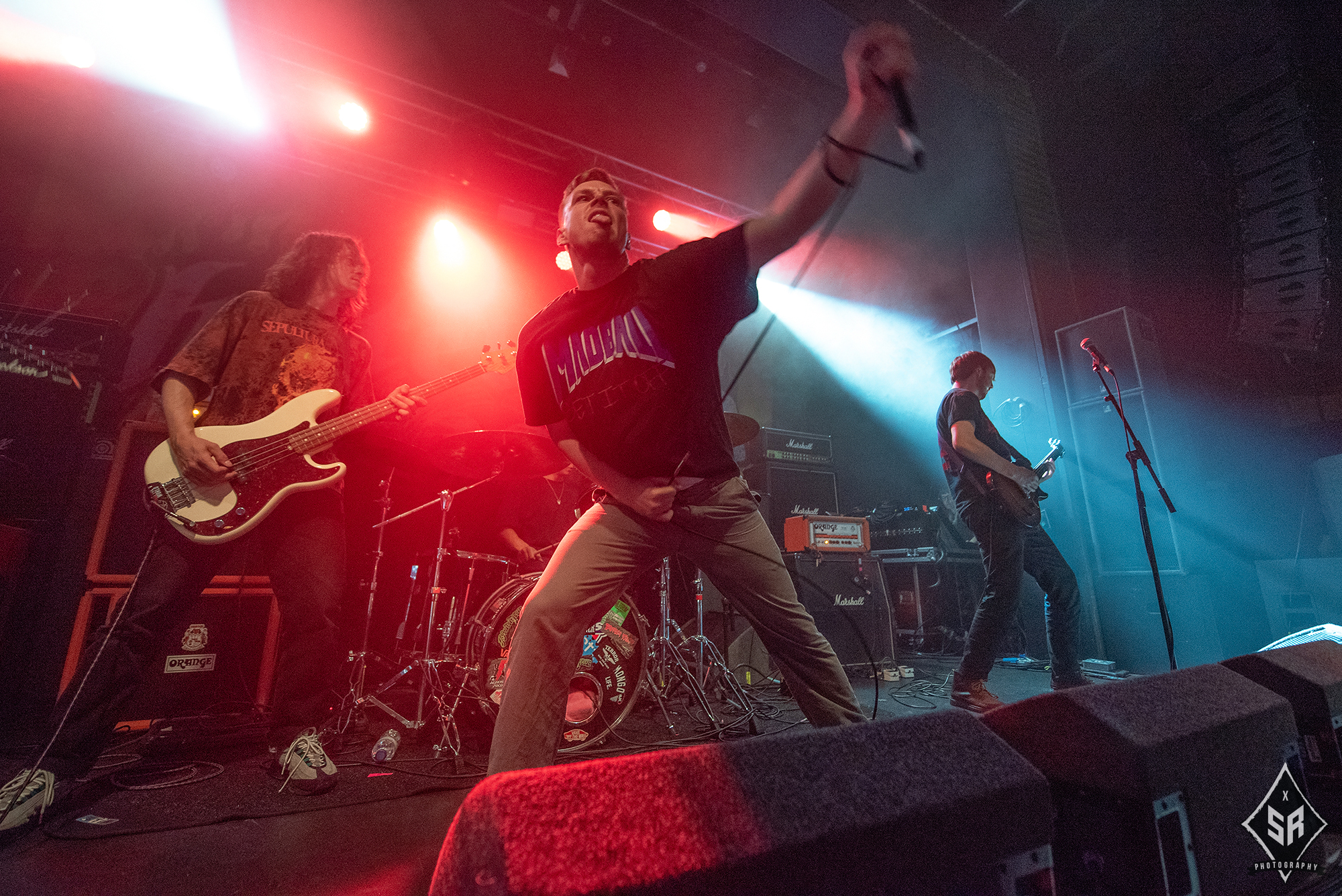 Now the room was rapidly approaching full capacity, it was time for local lads BROKEN TEETH to shift the mood from death metal to hardcore. After bursting onto the scene and becoming a well- respected figure in the underground hardcore scene, the band subsequently signed a worldwide deal with Nuclear Blast Records and released their debut album in 2016. Since then, however, things have been pretty quiet on the BROKEN TEETH front with no news of a new release, and only a handful of tours, it would seem the momentum they had in 2016 is gradually slowing. After DYSCARNATE‘s set blew the room to smithereens and promptly set the bar at an incredible height, it would seem BROKEN TEETH had a mountain to climb. The band took to the stage and right out of the gate kicked the energy up to a 10. This is their home crowd, this is their people, and they are going to show everyone why they are the pride of the Manchester hardcore scene. Their track Nothing Like You absolutely lit the room on fire. The catchy metal guitar riff, punctuated by a heavy, driving beat that hits you in the chest like a punch from a heavyweight boxer, rapidly opened up a pit of flailing arms and spin-kicks as people released all their pent up frustrations to a heavy hardcore soundtrack. With a performance like this, you can only hope they release a new record soon – BROKEN TEETH are too good to just fade away.