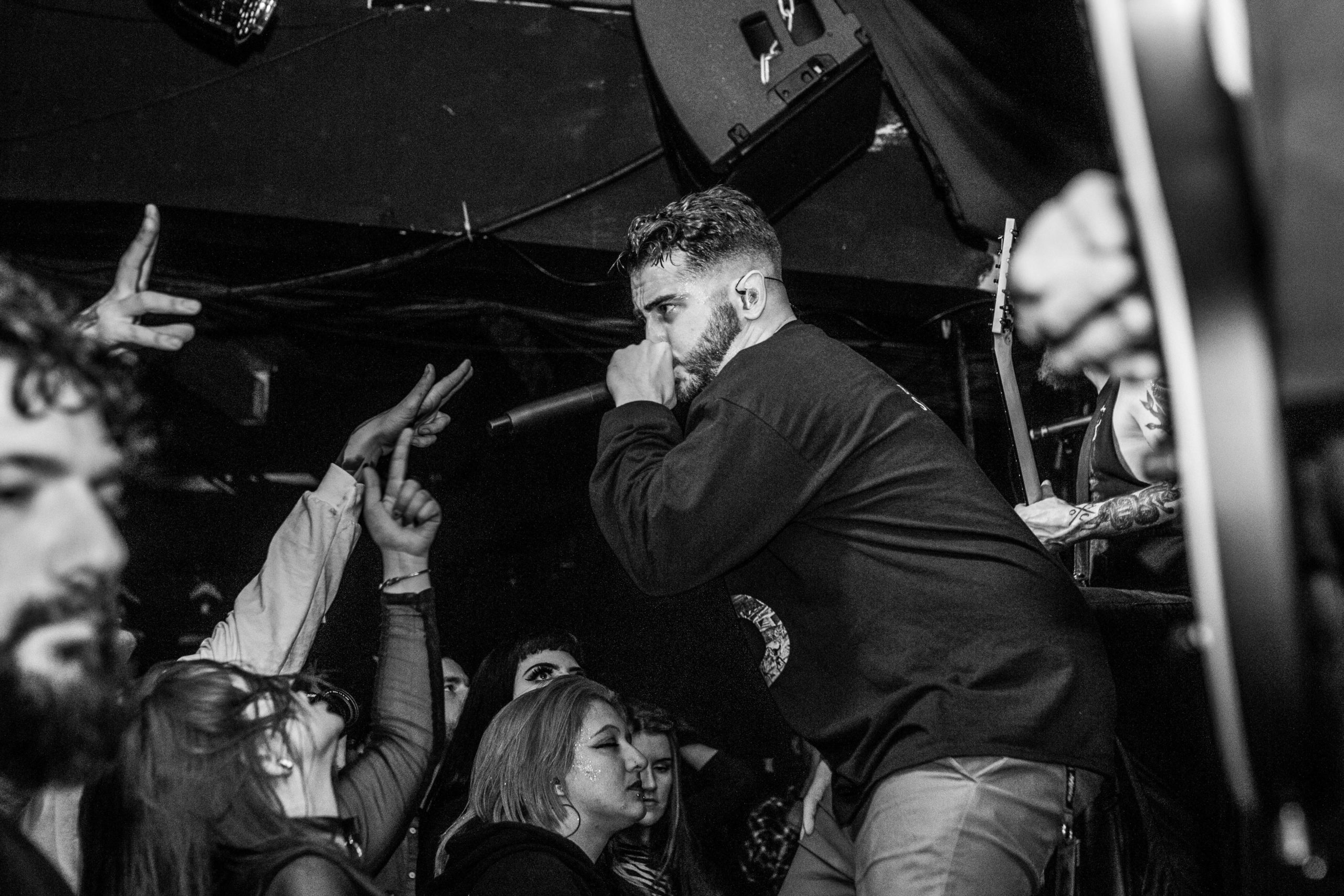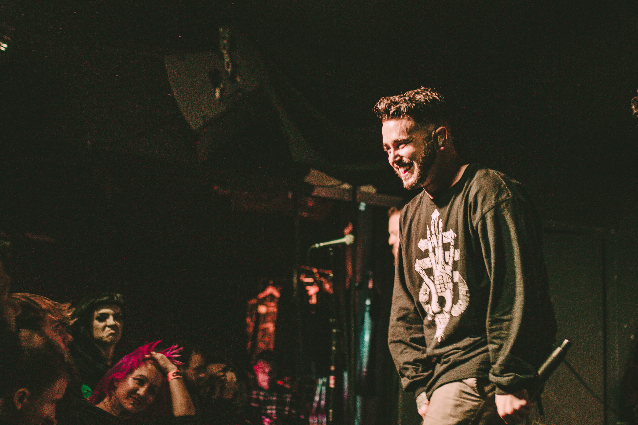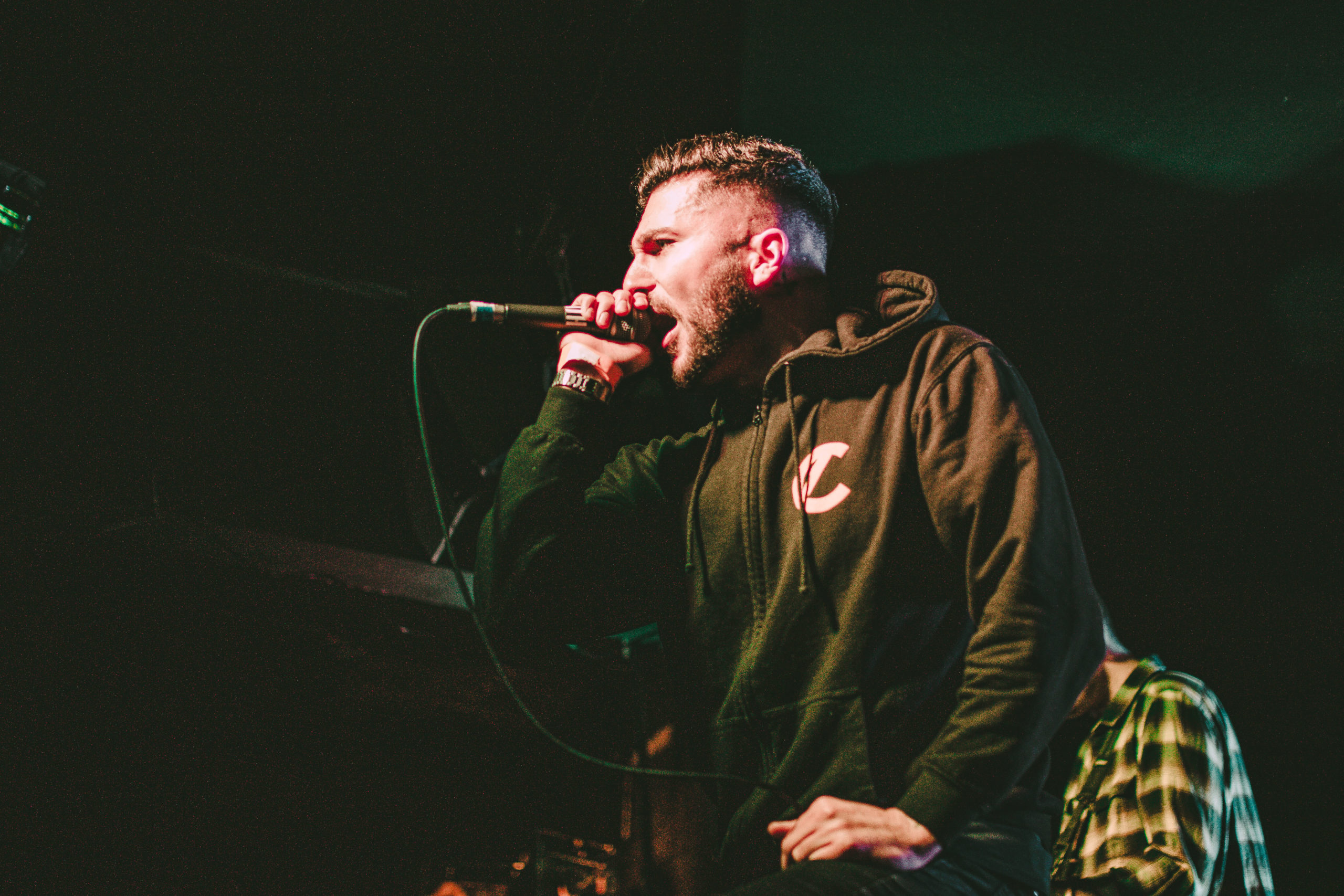 HEART OF A COWARD come through with a surprisingly un-self-indulgent performance, only playing four tracks from their latest release of their 11 song set. Considering current vocalist Kaan Tasan wasn’t present for the majority of the setlist’s inception, he delivers each track with dominance and authority, commanding screams back from the crowd. The Loft is a wide venue, short in depth with a long bar running across the back of the room. It helps tonight, that when the pits open up, the room looks more energetic; half the crowd are stood crossed-armed hanging back, only really letting loose with a head bob to the older material, while a few energetic crowd members hurl themselves to the front, pointing their fingers back at Tasan as he rips through old and new material.