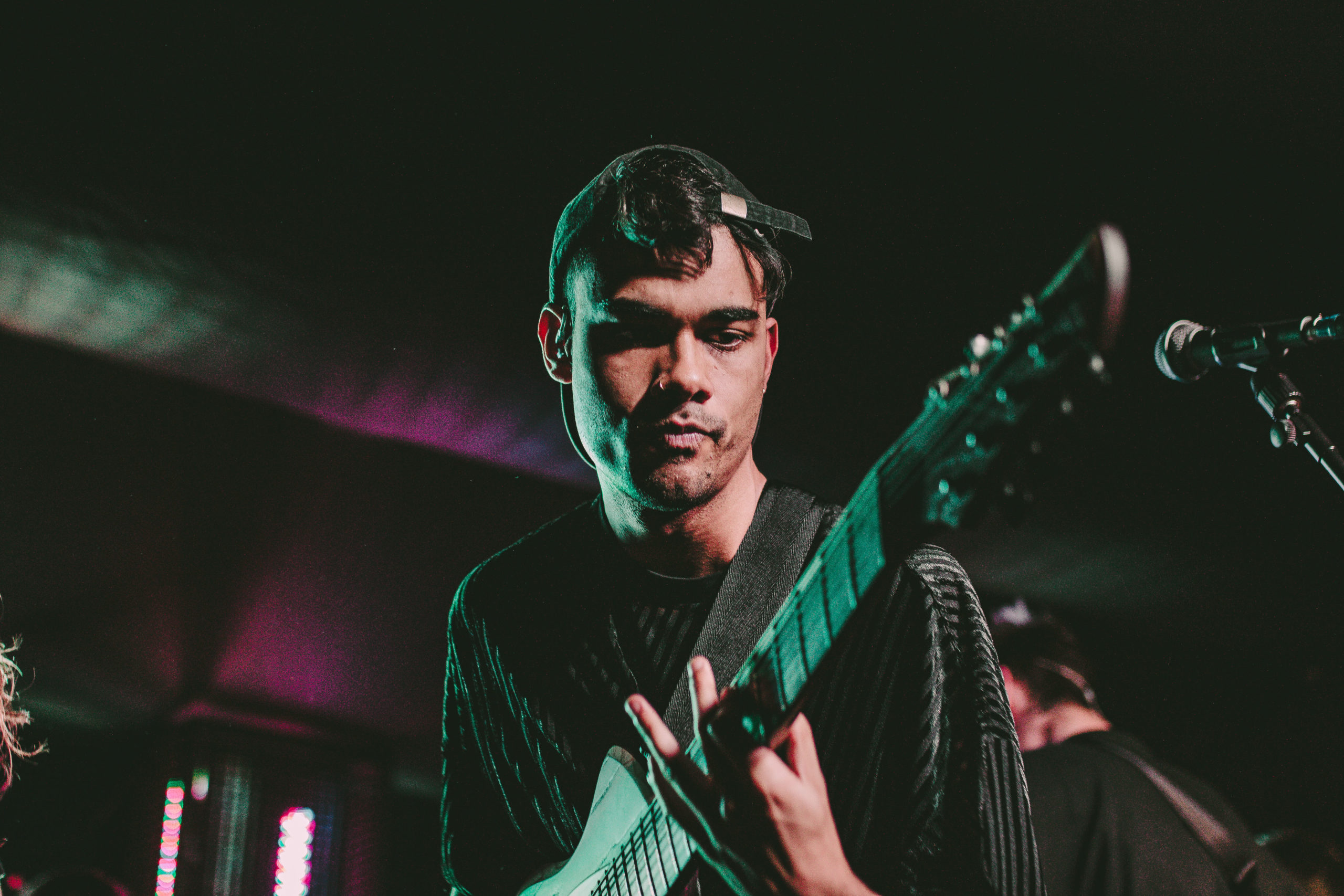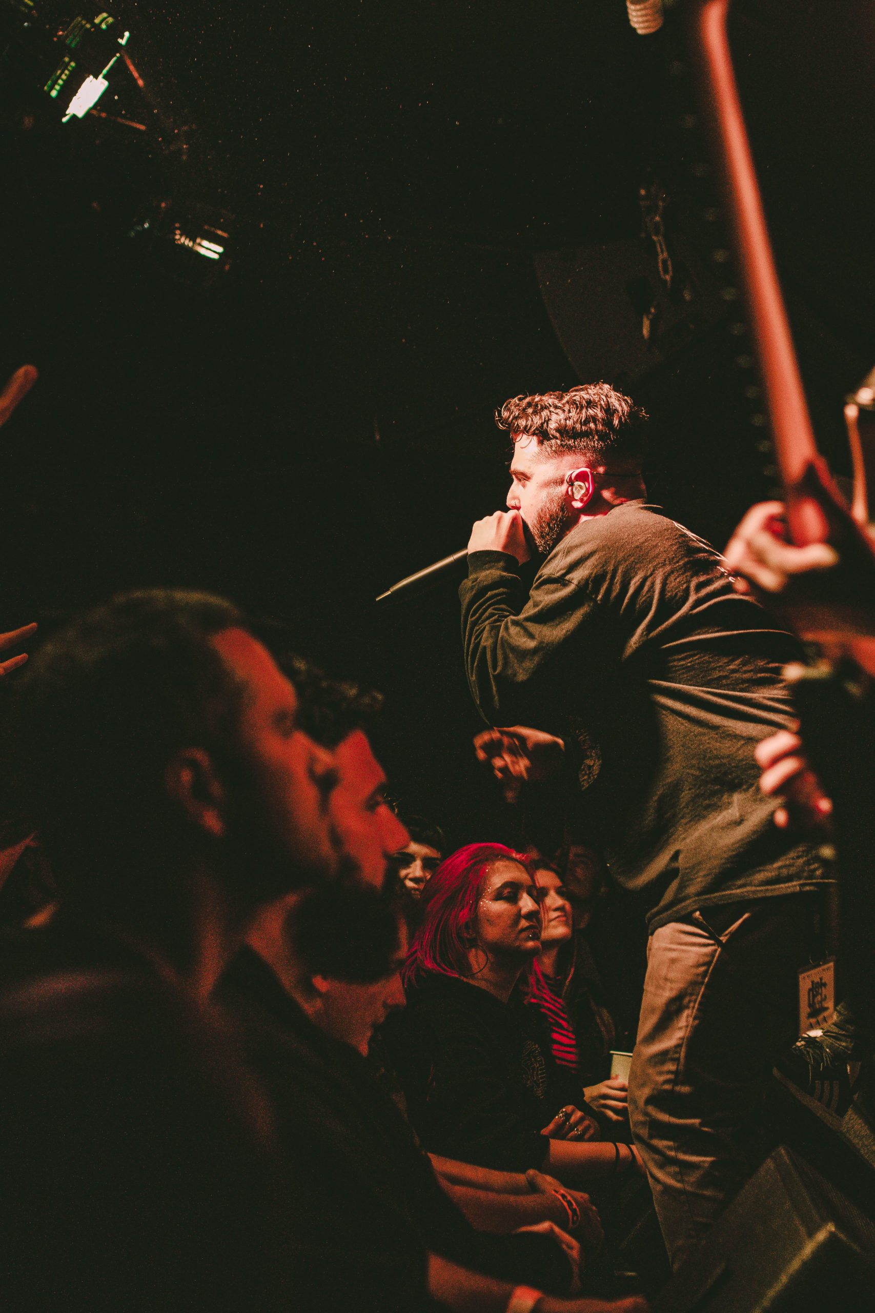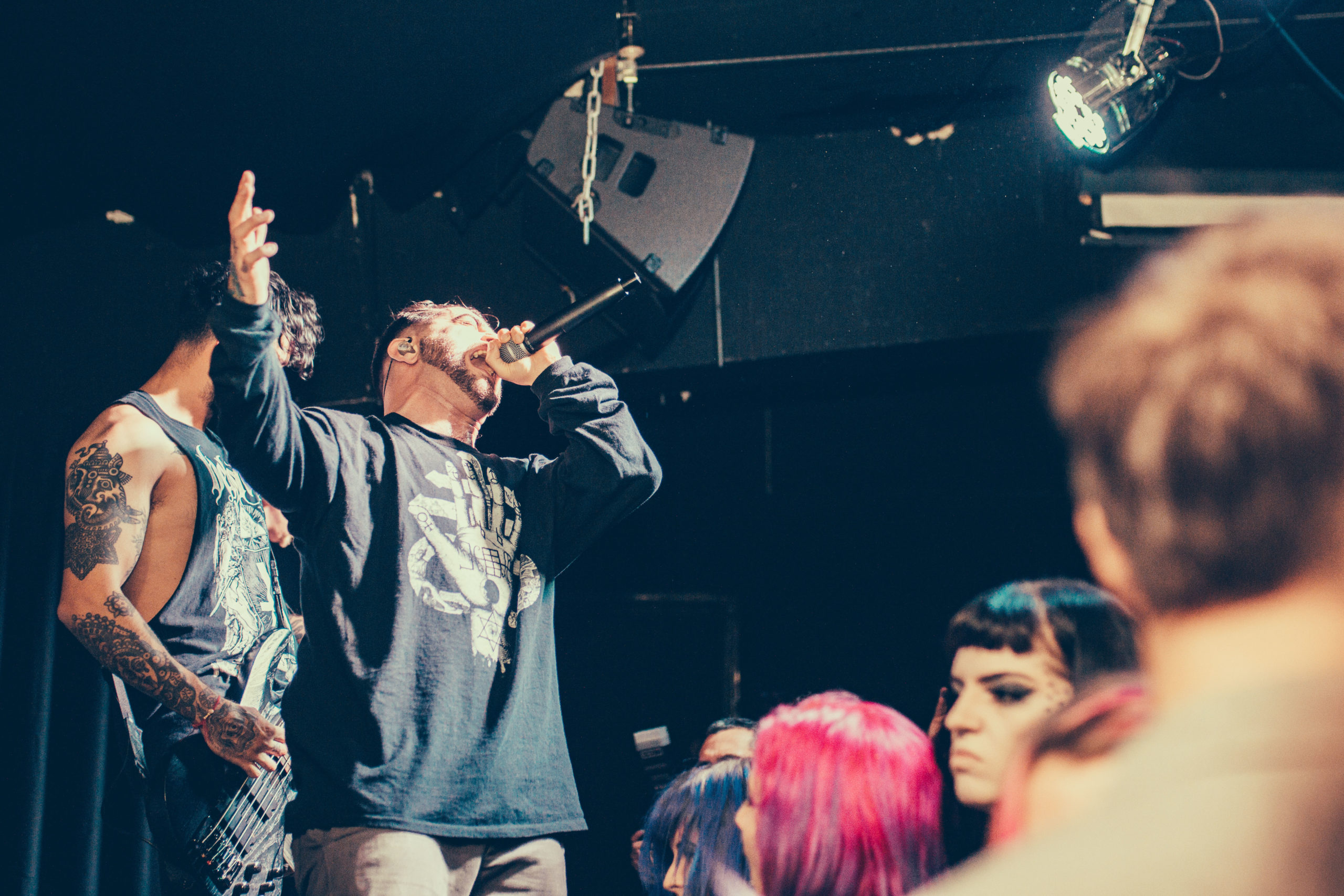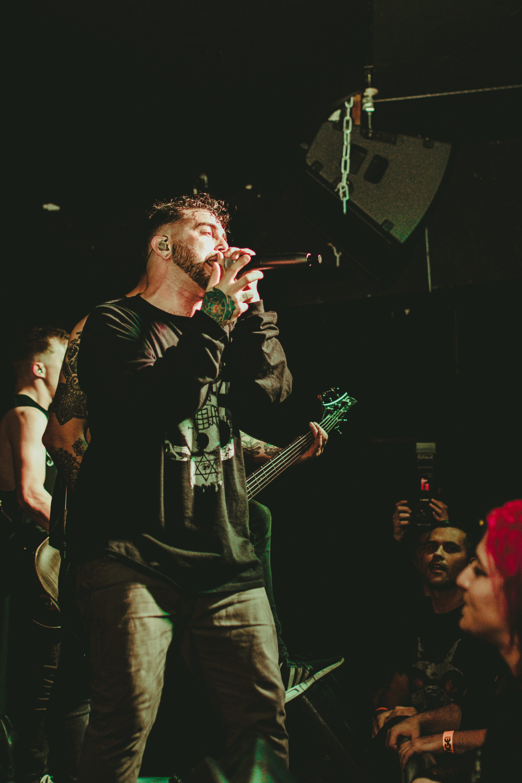 HEART OF A COWARD come through with a surprisingly un-self-indulgent performance, only playing four tracks from their latest release of their 11 song set. Considering current vocalist Kaan Tasan wasn’t present for the majority of the setlist’s inception, he delivers each track with dominance and authority, commanding screams back from the crowd. The Loft is a wide venue, short in depth with a long bar running across the back of the room. It helps tonight, that when the pits open up, the room looks more energetic; half the crowd are stood crossed-armed hanging back, only really letting loose with a head bob to the older material, while a few energetic crowd members hurl themselves to the front, pointing their fingers back at Tasan as he rips through old and new material.