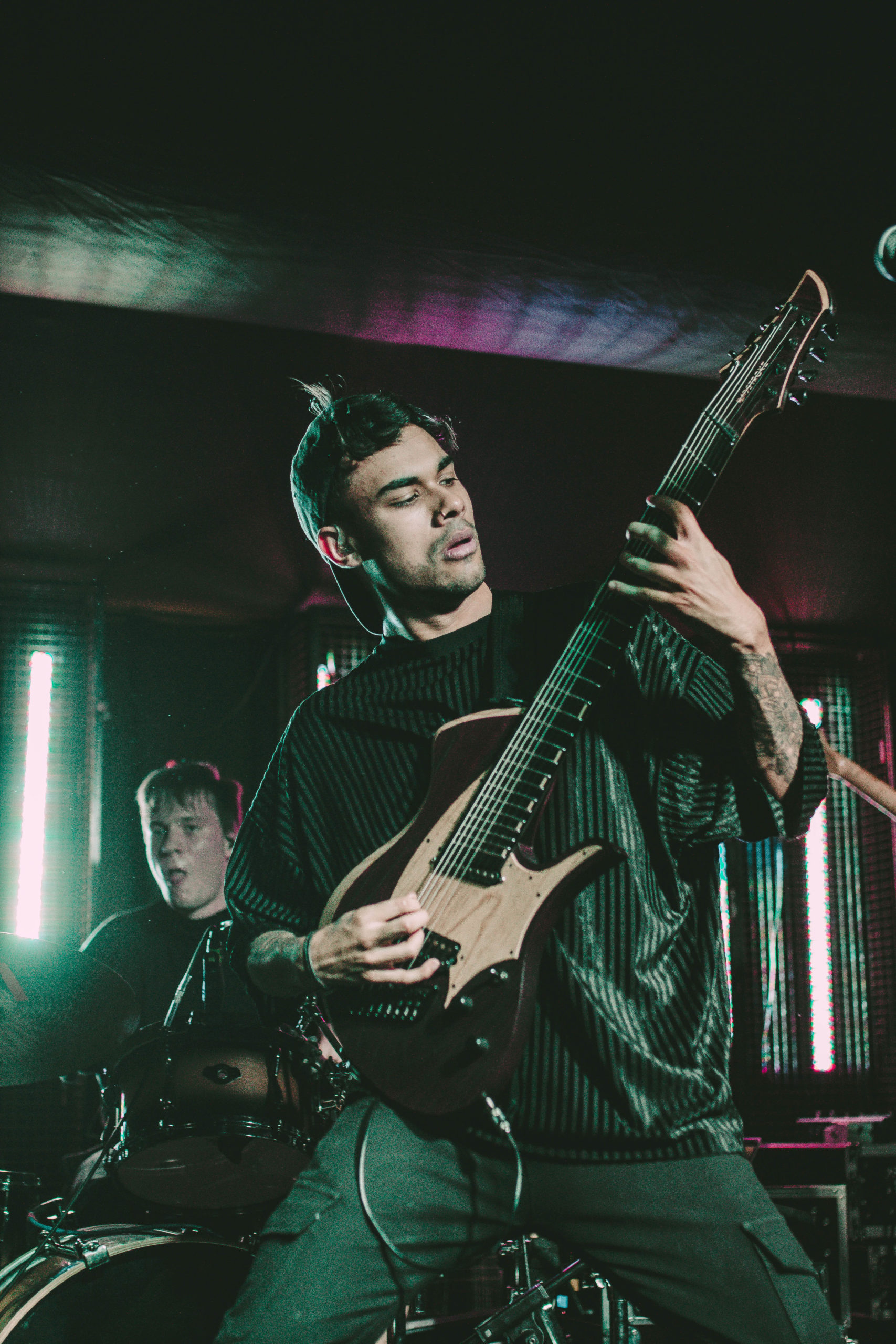 German progressive metal band UNPROCESSED are a belter of a main support with their technically sophisticated take on djent melodic metalcore. They’ve got that awe-inducing, palm-muted, low guitar sound mixed with intricate riffs and contrasting more formulaic breakdowns. The band’s set is confident and performed with ease through their blend of clean and screamed vocals, filthy bass lines and mathcore-leaning complexities. It a treat of a variation on the lineup, and a sure pledge to expectancies of more appearances from UNPROCESSED come next year.