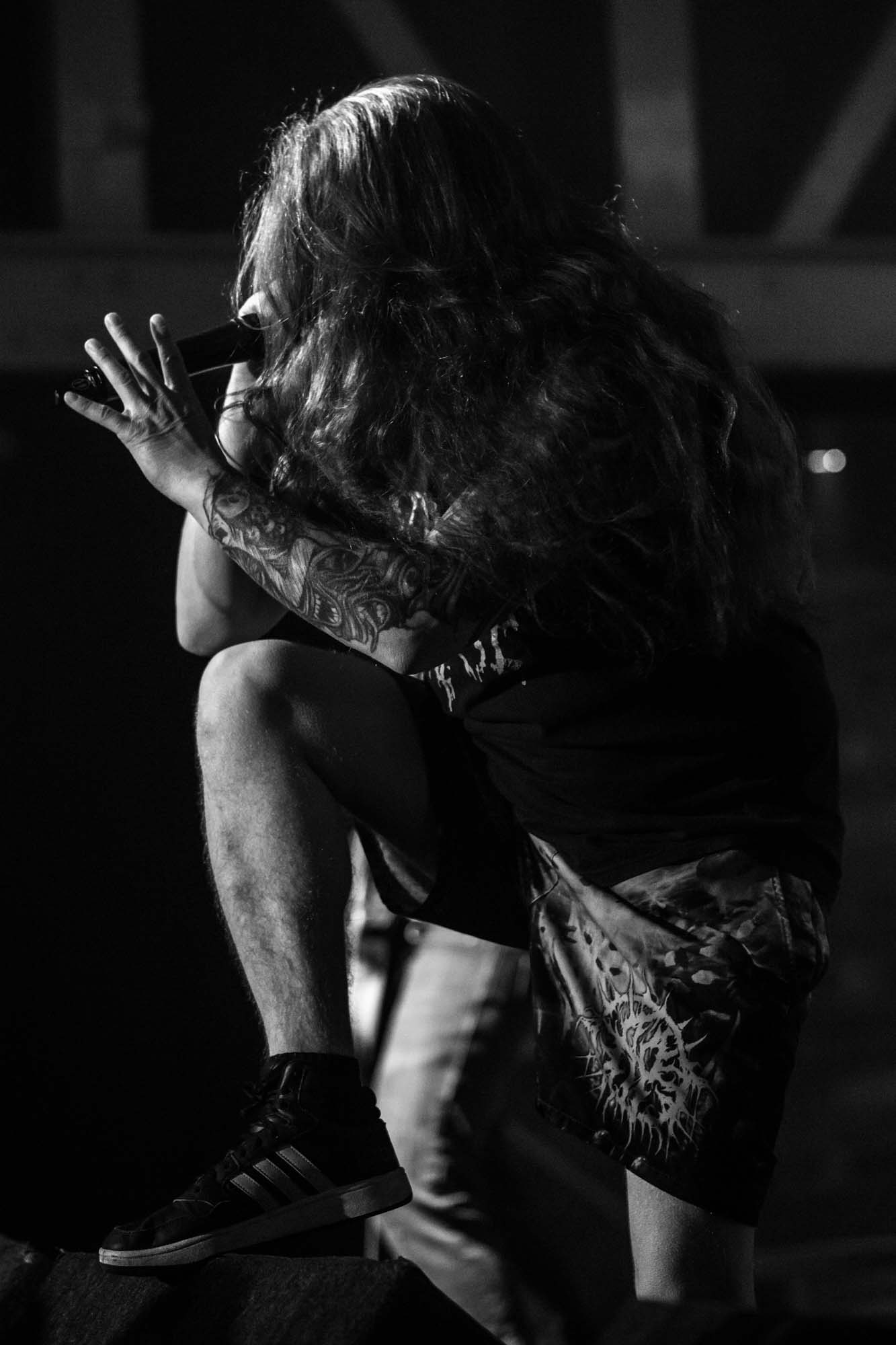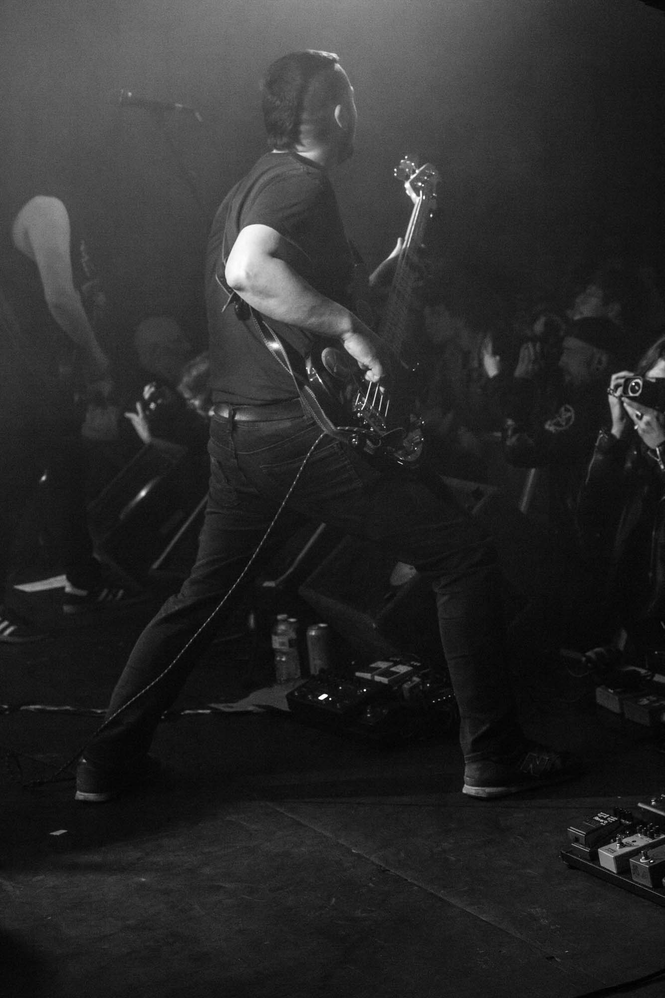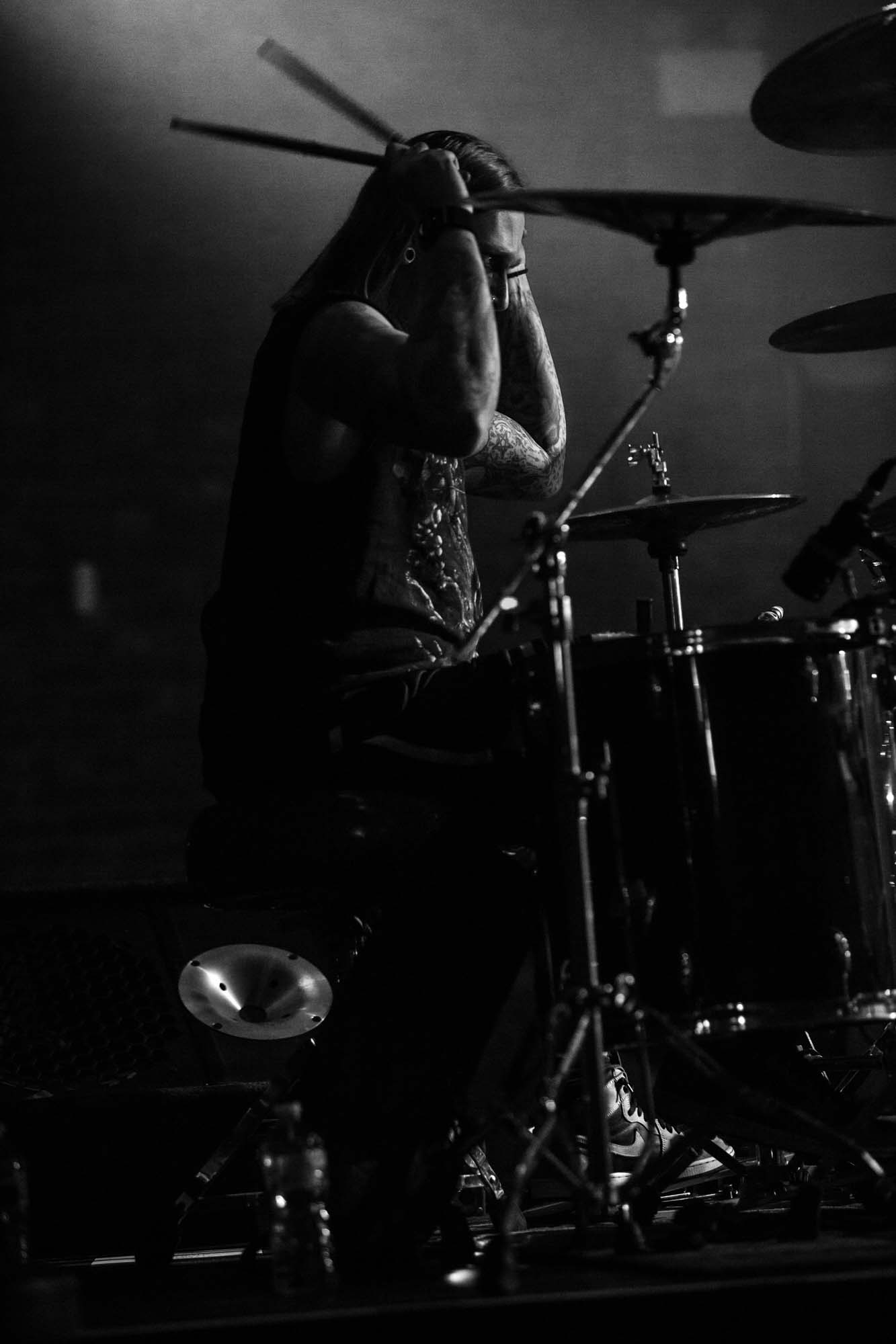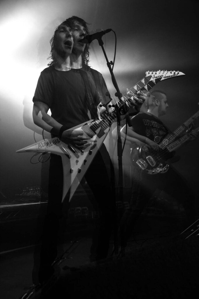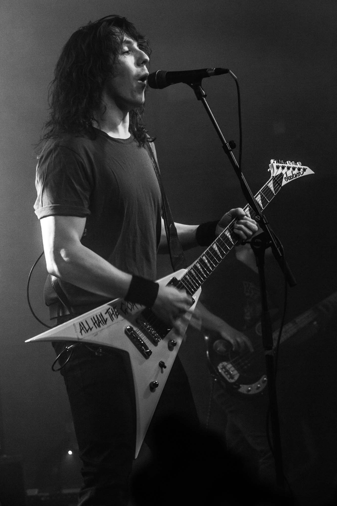 Their tunes are a coupling of AURA NOIR and DESTRUCTION, oscillating the needle closer to thrash or black metal in a song’s progression. Their sound is liberated by borrowing from contemporary metal, setting them apart from the slavish ’80s worship common in this subgenre. This also arms them with an abundance of variety, maintaining The Garage’s collective attention. Songs like the calmer, heavy metal-inspired Grave Maggot Future, the punk-smeared Perdition’s Hand and the longer, slower The Long Lost show off a band with lots to say. A cover of their compatriot crust punk ANTI CIMEX‘s Dogfight goes down with the audience like a banquet to a beggar. All of these aural assaults are accompanied by crystal sound. This is a paradigm performance of what young bands can hope to replicate in the live theatre.