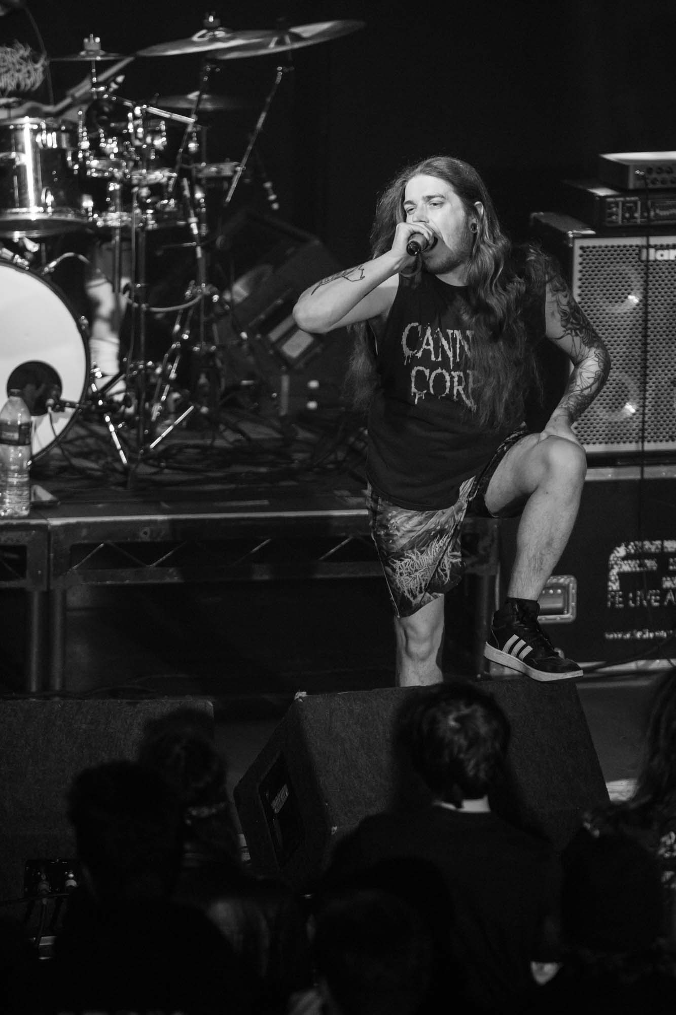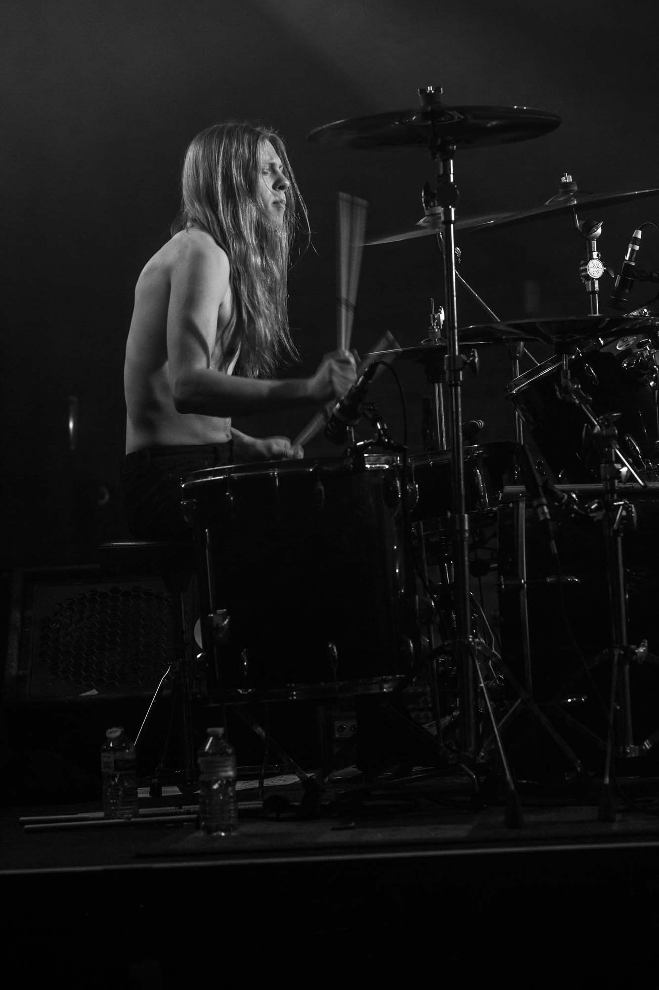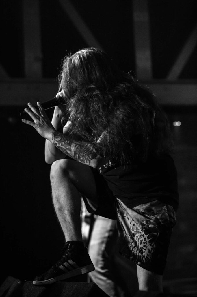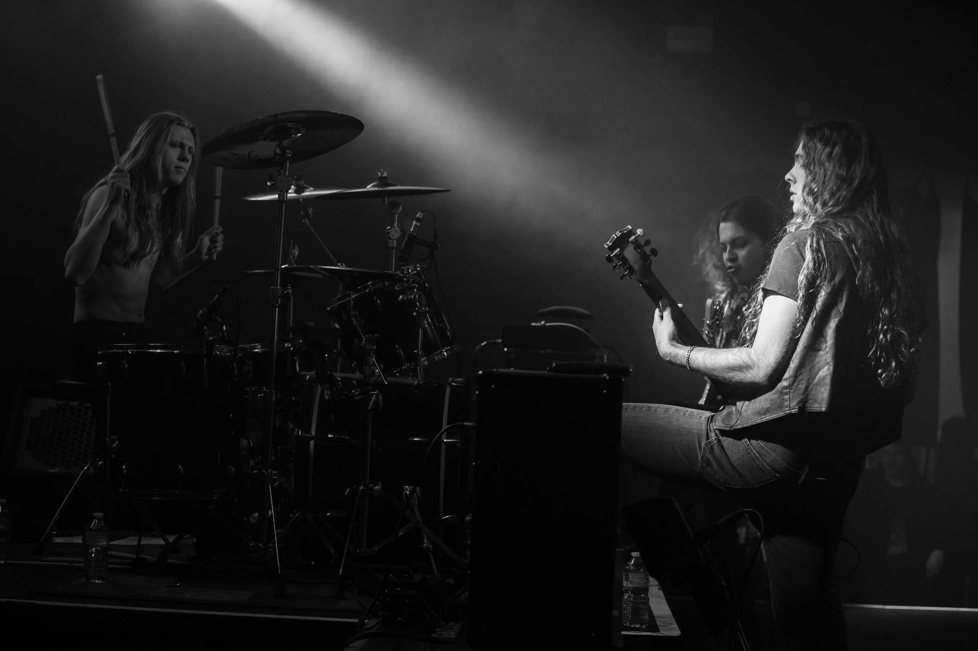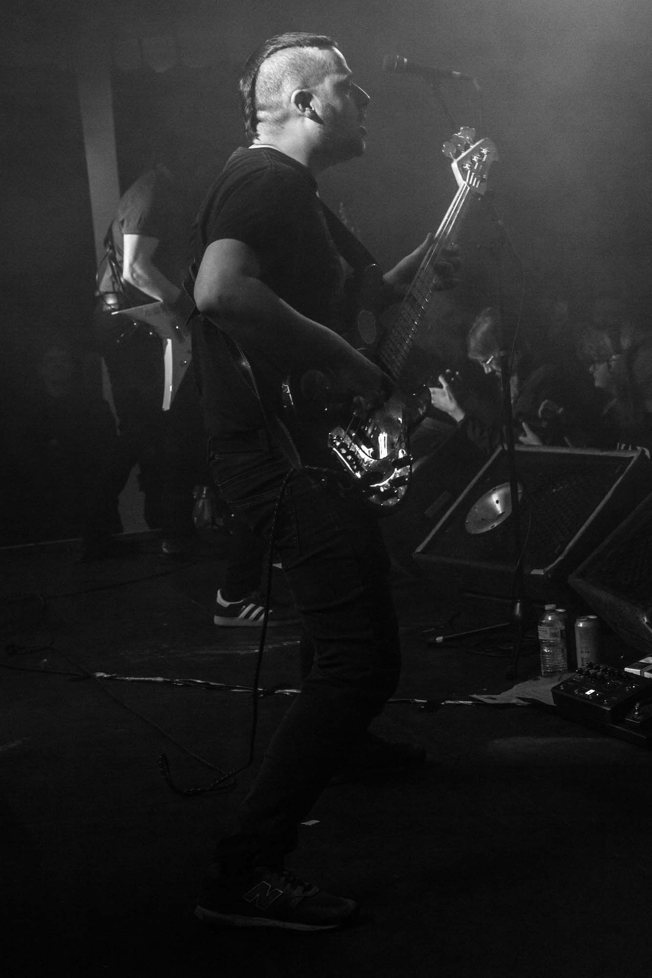 Their tunes are a coupling of AURA NOIR and DESTRUCTION, oscillating the needle closer to thrash or black metal in a song’s progression. Their sound is liberated by borrowing from contemporary metal, setting them apart from the slavish ’80s worship common in this subgenre. This also arms them with an abundance of variety, maintaining The Garage’s collective attention. Songs like the calmer, heavy metal-inspired Grave Maggot Future, the punk-smeared Perdition’s Hand and the longer, slower The Long Lost show off a band with lots to say. A cover of their compatriot crust punk ANTI CIMEX‘s Dogfight goes down with the audience like a banquet to a beggar. All of these aural assaults are accompanied by crystal sound. This is a paradigm performance of what young bands can hope to replicate in the live theatre.