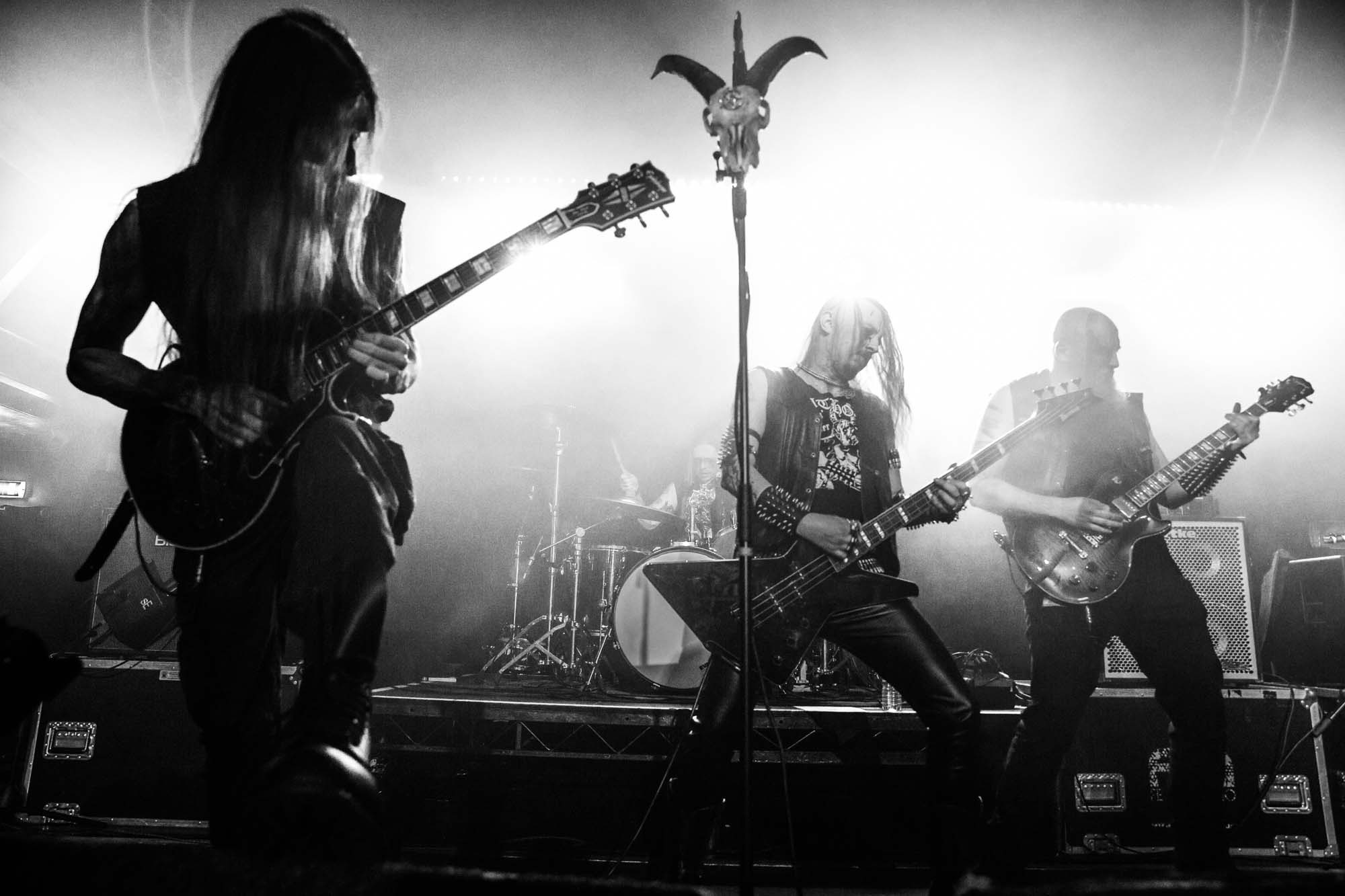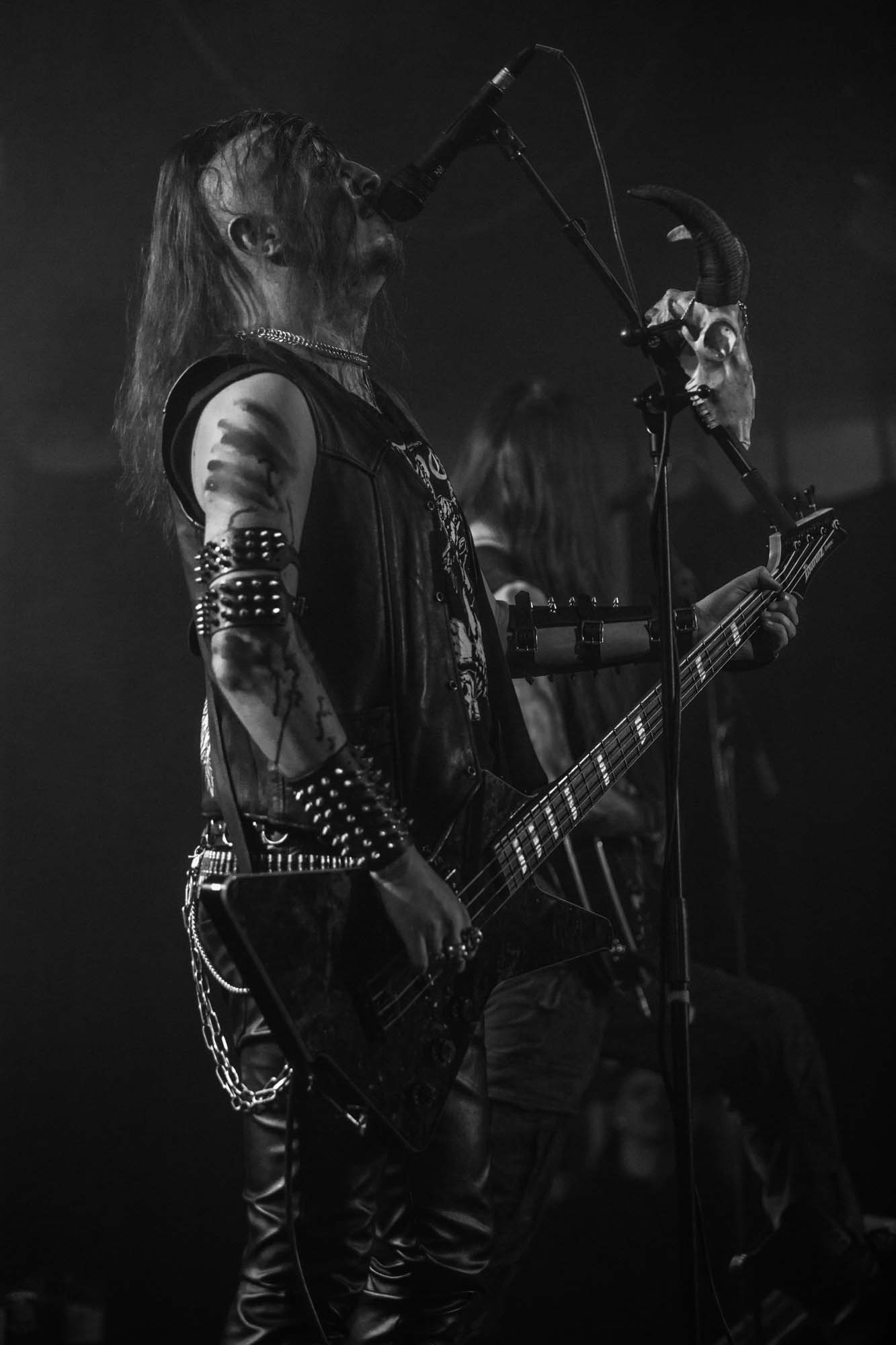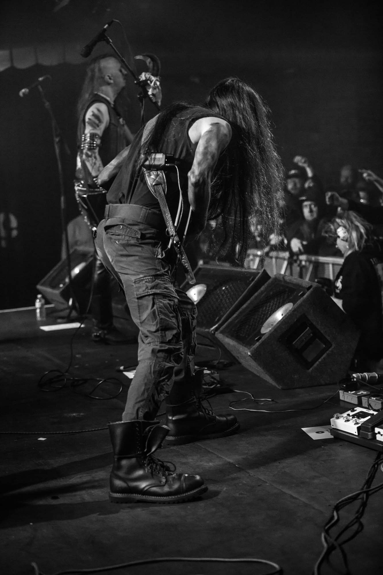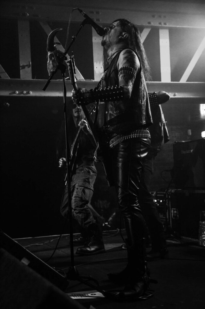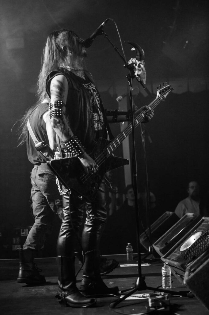 This crowded room of metalheads is appropriately sauced by the time Aberdeen’s greatest metal export, HELLRIPPER, lines up on stage. Instantly, James McBain and his hired guns kick things up to eleven by opening with the MIDNIGHT-worship of All Hail the Goat. Sordid riffs, fire-starting solos and accelerated drums formulate one of the headliner’s finest anthems. The results spark a rapacious pit and audacious crowd surfers. Another ode to MIDNIGHT follows with Hell’s Rock ‘n’ Roll, perfectly crafted for the devilish concert experience. As today marks the release of HELLRIPPER‘s fourth album, Kinchyle (Goatkraft and Granite) is the first new song they air. Named after a historic clan’s war cry, this track builds on the MIDNIGHT, VENOM and SABBAT foundation but with refreshing, introspective heavy metal influence, culminating in a catchy chorus.