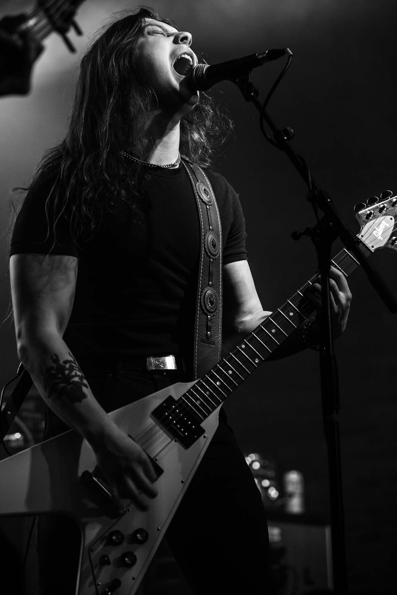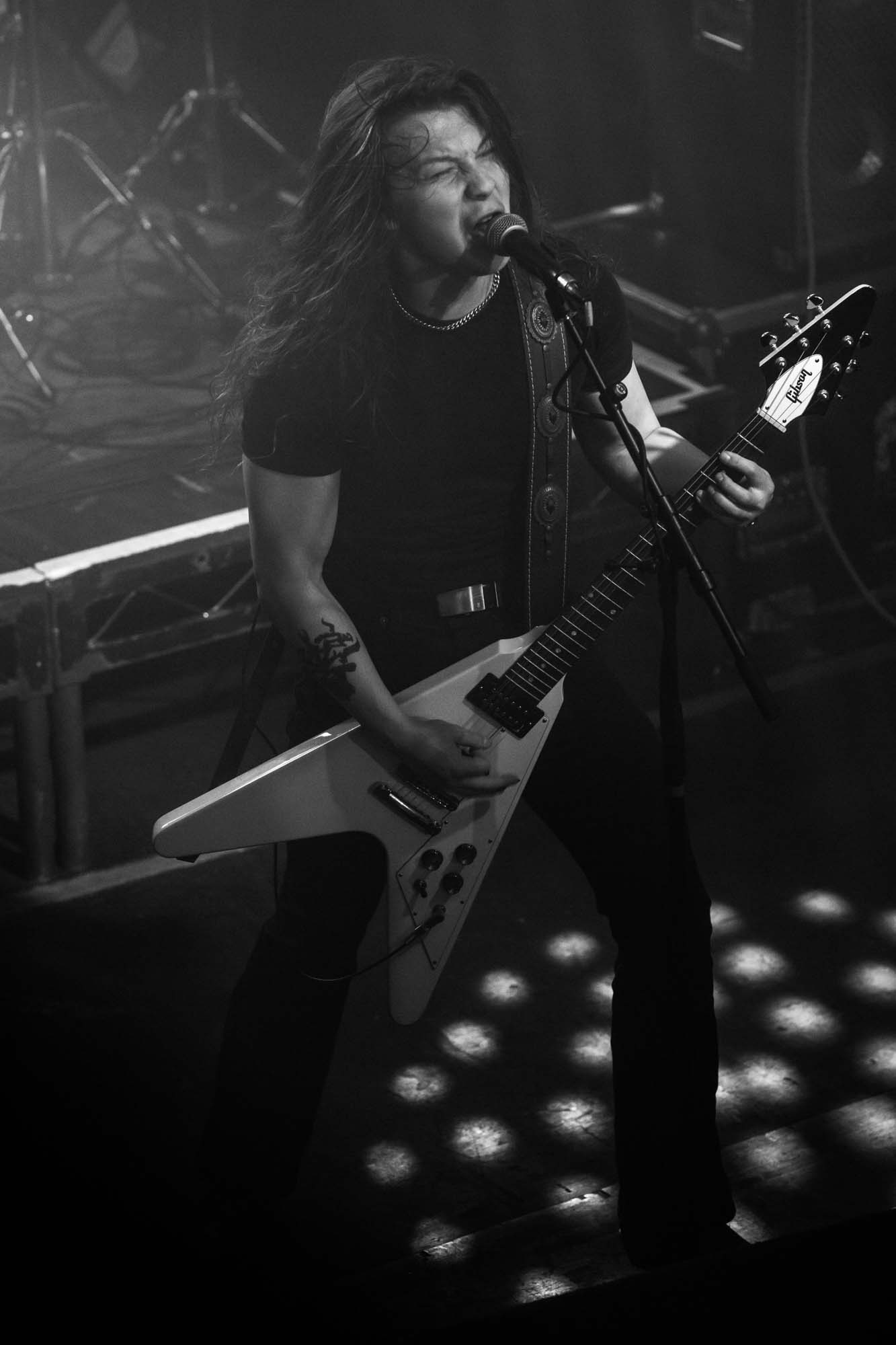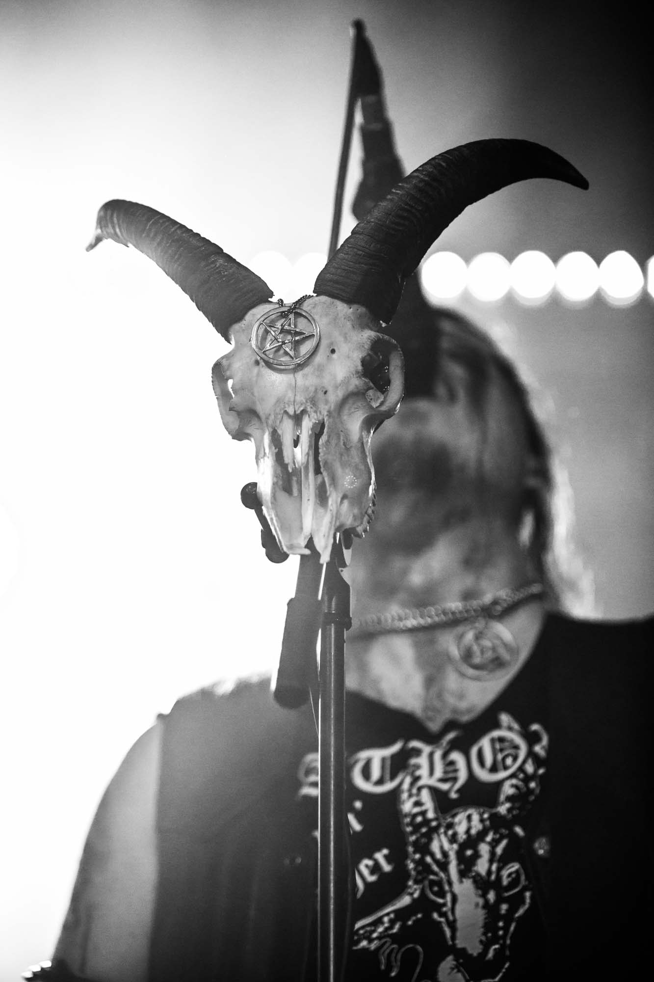 This crowded room of metalheads is appropriately sauced by the time Aberdeen’s greatest metal export, HELLRIPPER, lines up on stage. Instantly, James McBain and his hired guns kick things up to eleven by opening with the MIDNIGHT-worship of All Hail the Goat. Sordid riffs, fire-starting solos and accelerated drums formulate one of the headliner’s finest anthems. The results spark a rapacious pit and audacious crowd surfers. Another ode to MIDNIGHT follows with Hell’s Rock ‘n’ Roll, perfectly crafted for the devilish concert experience. As today marks the release of HELLRIPPER‘s fourth album, Kinchyle (Goatkraft and Granite) is the first new song they air. Named after a historic clan’s war cry, this track builds on the MIDNIGHT, VENOM and SABBAT foundation but with refreshing, introspective heavy metal influence, culminating in a catchy chorus.